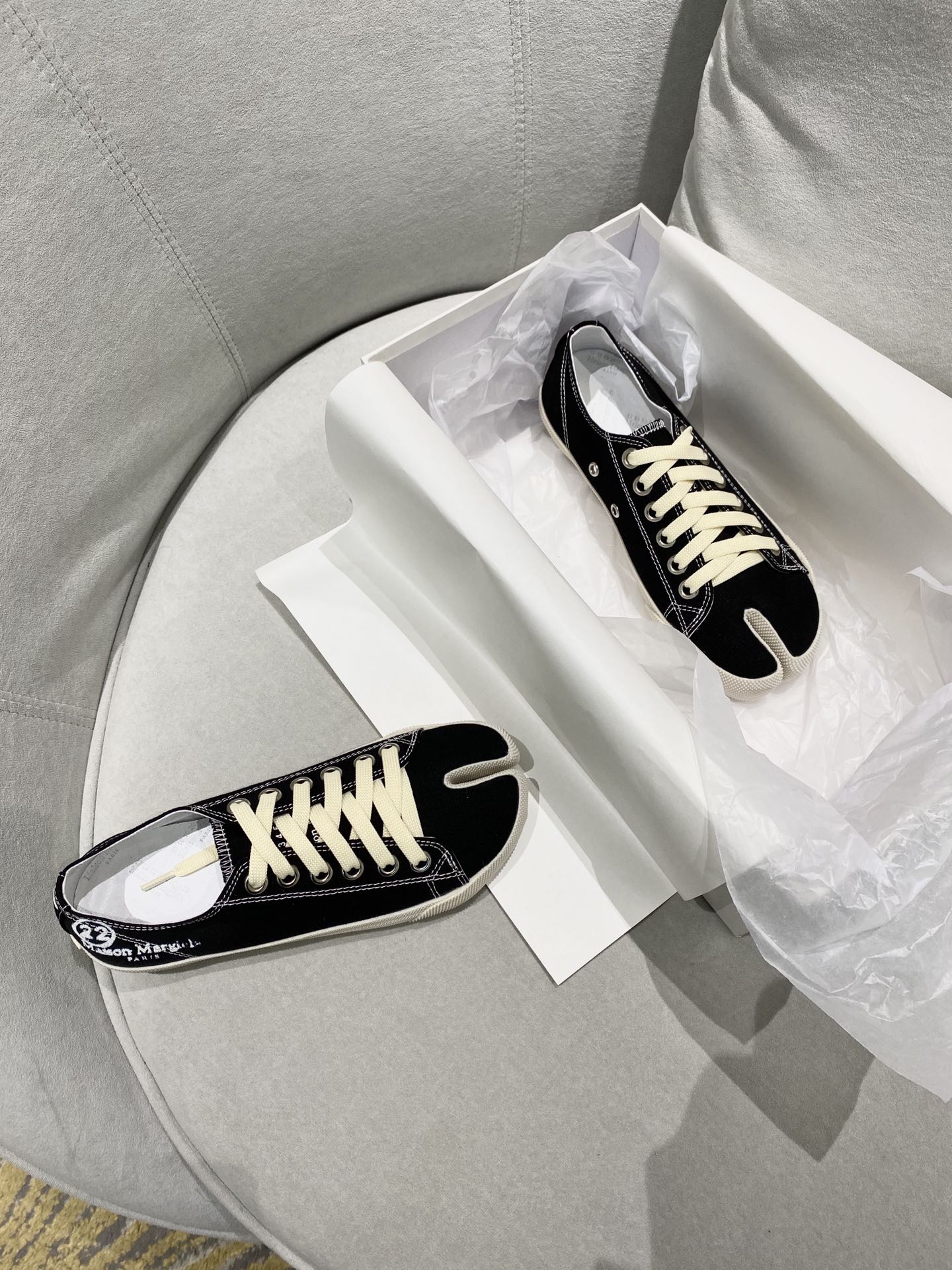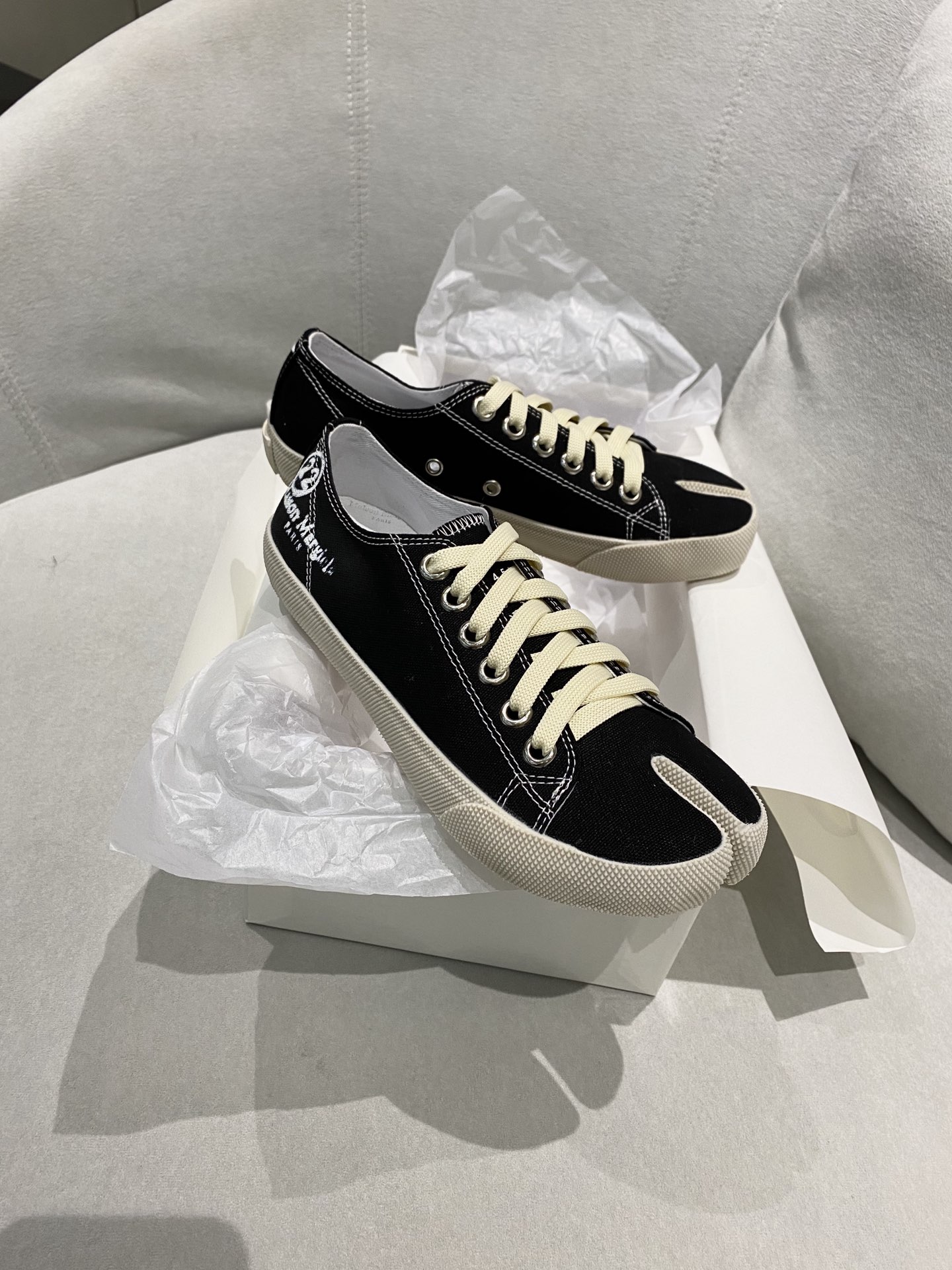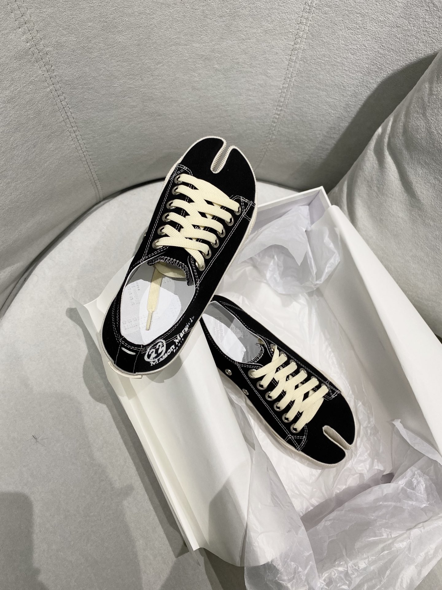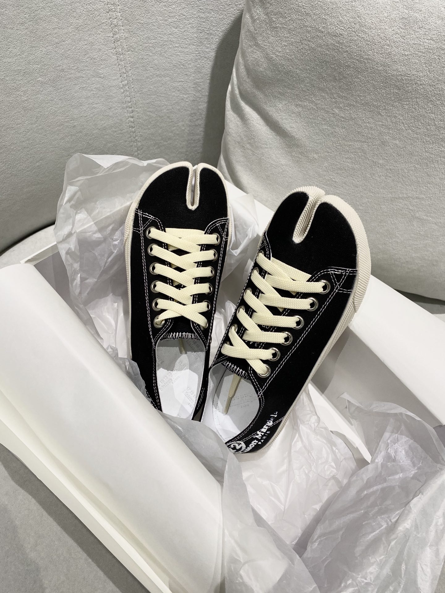 这款鞋子是AAAAA 1:1 质量 (非常棒). 使用了和原版一模一样的材料. 商标部分也保持了和Maison Margiela一样. 图片拍摄是实物鞋子拍摄, 您所收到的实物保证和我们图片一模一样.