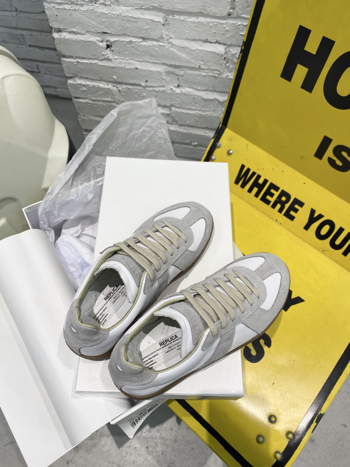 这款鞋子是AAAAA 1:1 质量 (非常棒). 使用了和原版一模一样的材料. 商标部分也保持了和Maison Margiela一样. 图片拍摄是实物鞋子拍摄, 您所收到的实物保证和我们图片一模一样.