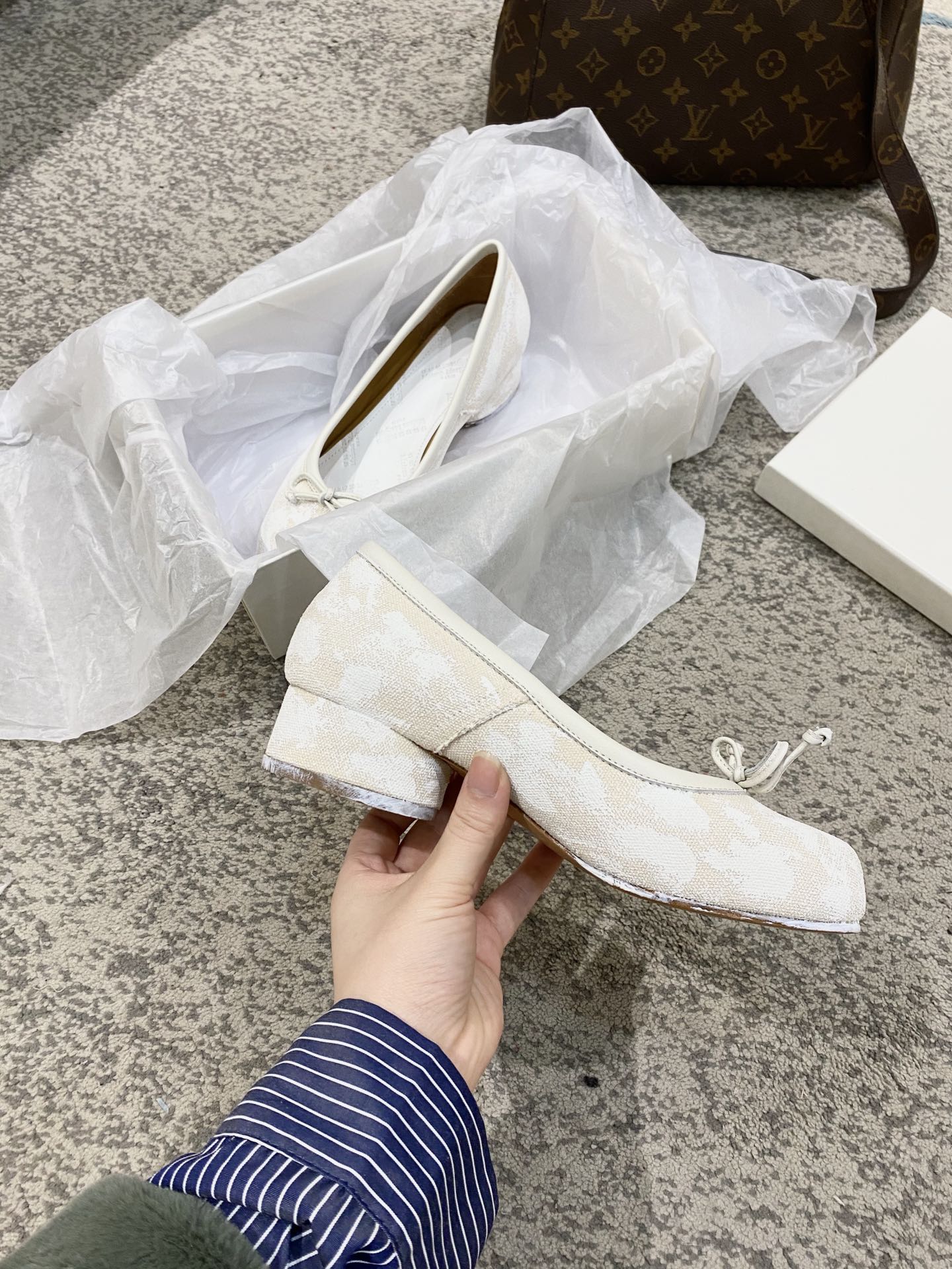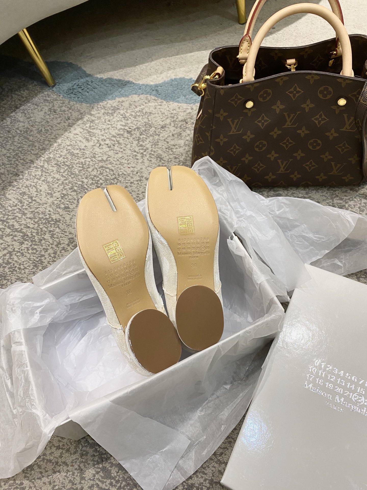 这款鞋子是AAAAA 1:1 质量 (非常棒). 使用了和原版一模一样的材料. 商标部分也保持了和Maison Margiela一样. 图片拍摄是实物鞋子拍摄, 您所收到的实物保证和我们图片一模一样.