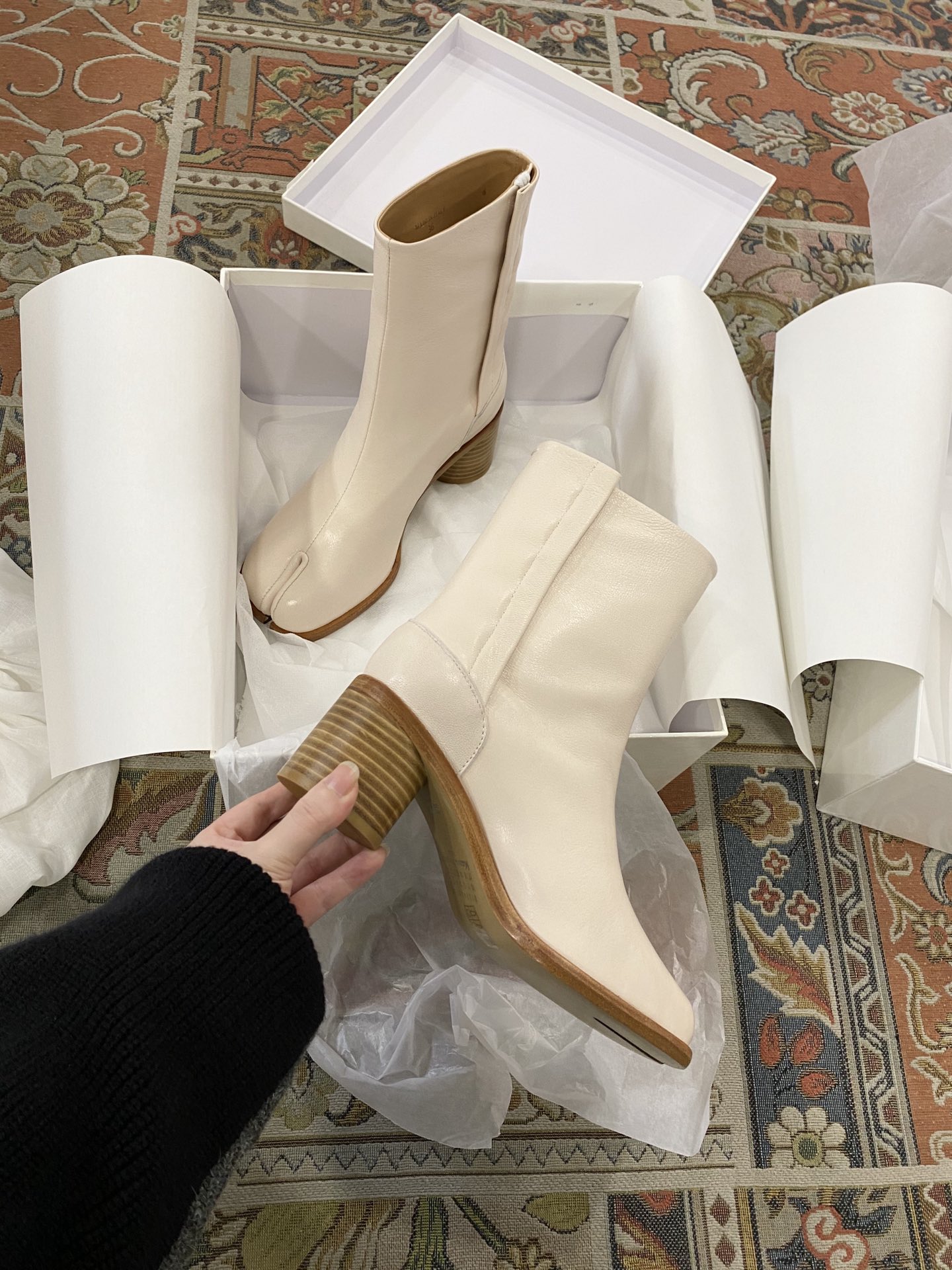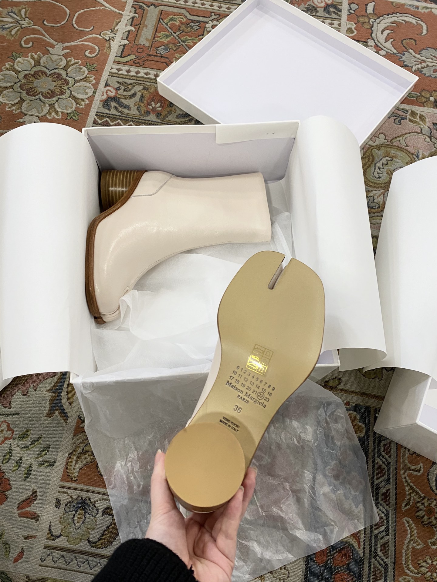 这款鞋子是AAAAA 1:1 质量 (非常棒). 使用了和原版一模一样的材料. 商标部分也保持了和Maison Margiela一样. 图片拍摄是实物鞋子拍摄, 您所收到的实物保证和我们图片一模一样.