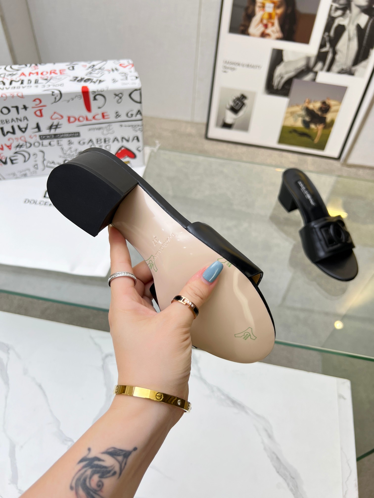 这款鞋子是AAAAA 1:1 质量 (非常棒). 使用了和原版一模一样的材料. 商标部分也保持了和杜嘉班纳/Dolce&Gabbana一样. 图片拍摄是实物鞋子拍摄, 您所收到的实物保证和我们图片一模一样.