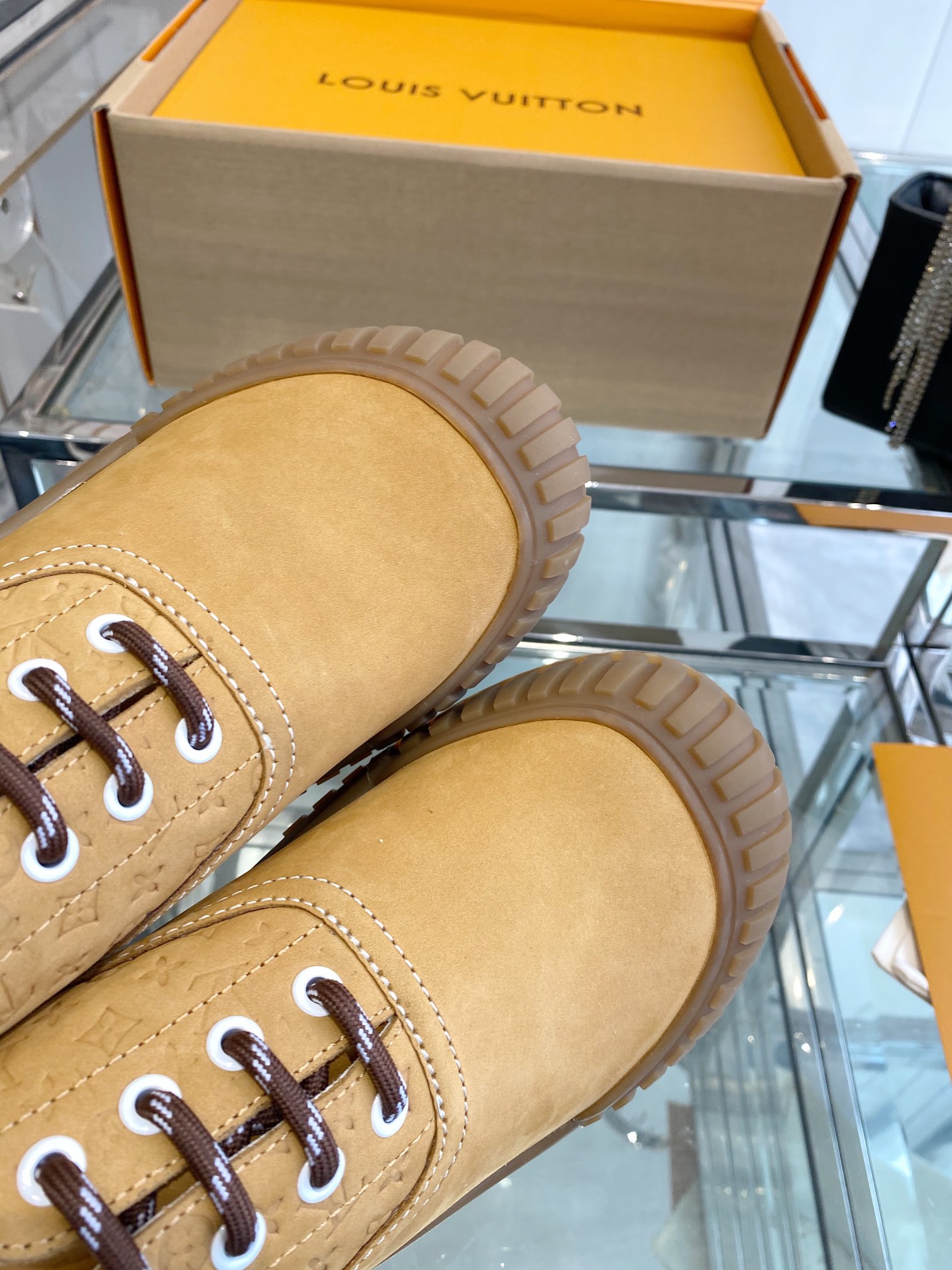 这款鞋子是AAAAA 1:1 质量 (非常棒). 使用了和原版一模一样的材料. 商标部分也保持了和路易威登/Louis Vuitton一样. 图片拍摄是实物鞋子拍摄, 您所收到的实物保证和我们图片一模一样.