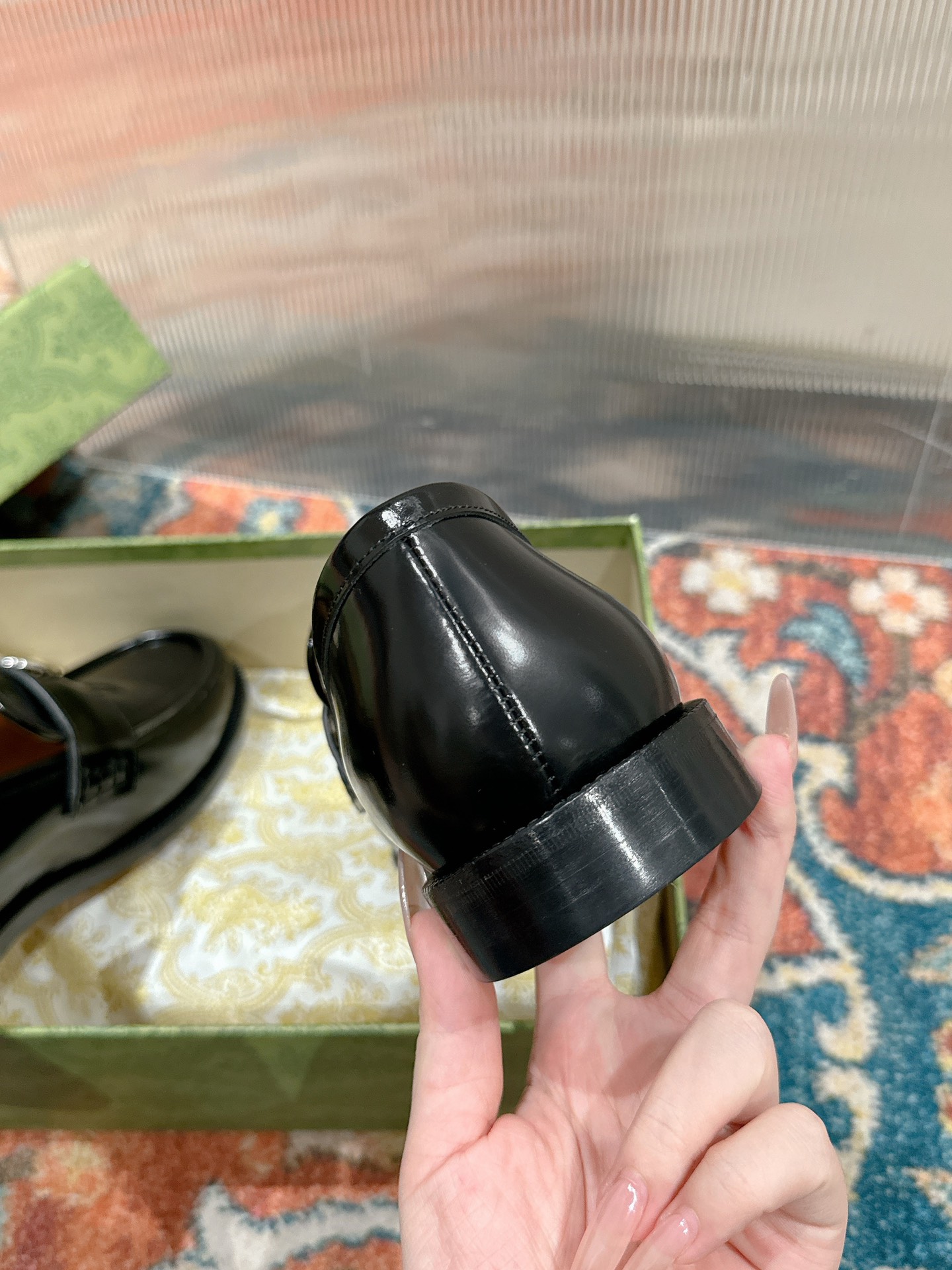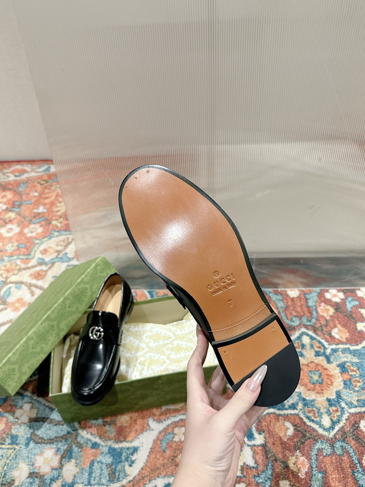这款鞋子是AAAAA 1:1 质量 (非常棒). 使用了和原版一模一样的材料. 商标部分也保持了和古奇/Gucci一样. 图片拍摄是实物鞋子拍摄, 您所收到的实物保证和我们图片一模一样.