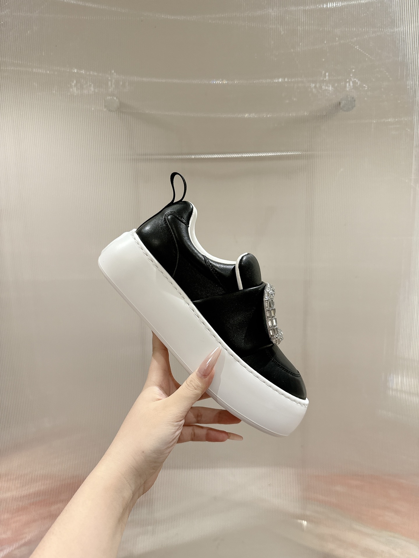 这款鞋子是AAAAA 1:1 质量 (非常棒). 使用了和原版一模一样的材料. 商标部分也保持了和琳达·法罗/Linda Farrow一样. 图片拍摄是实物鞋子拍摄, 您所收到的实物保证和我们图片一模一样.