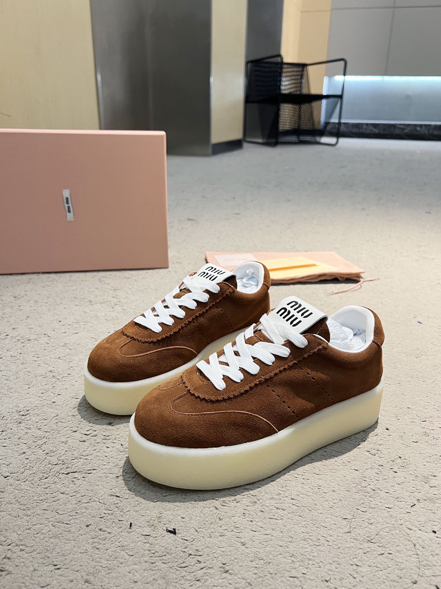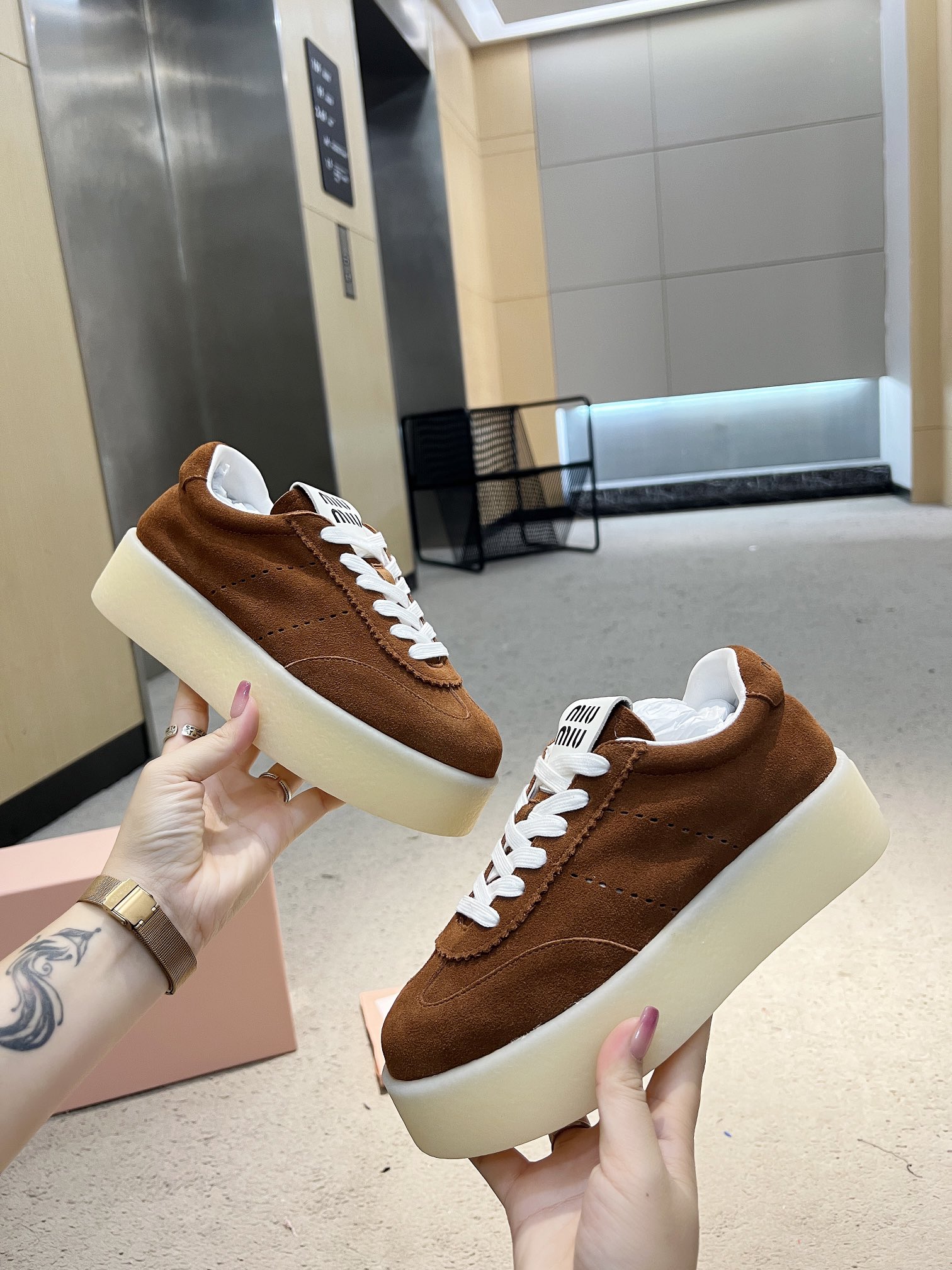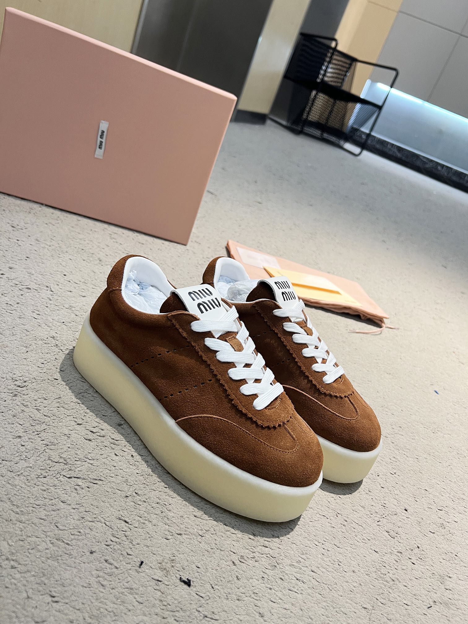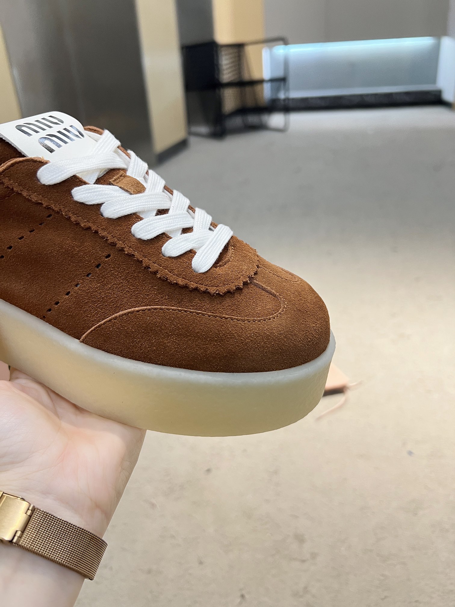 这款鞋子是AAAAA 1:1 质量 (非常棒). 使用了和原版一模一样的材料. 商标部分也保持了和缪缪/Miu Miu一样. 图片拍摄是实物鞋子拍摄, 您所收到的实物保证和我们图片一模一样.
