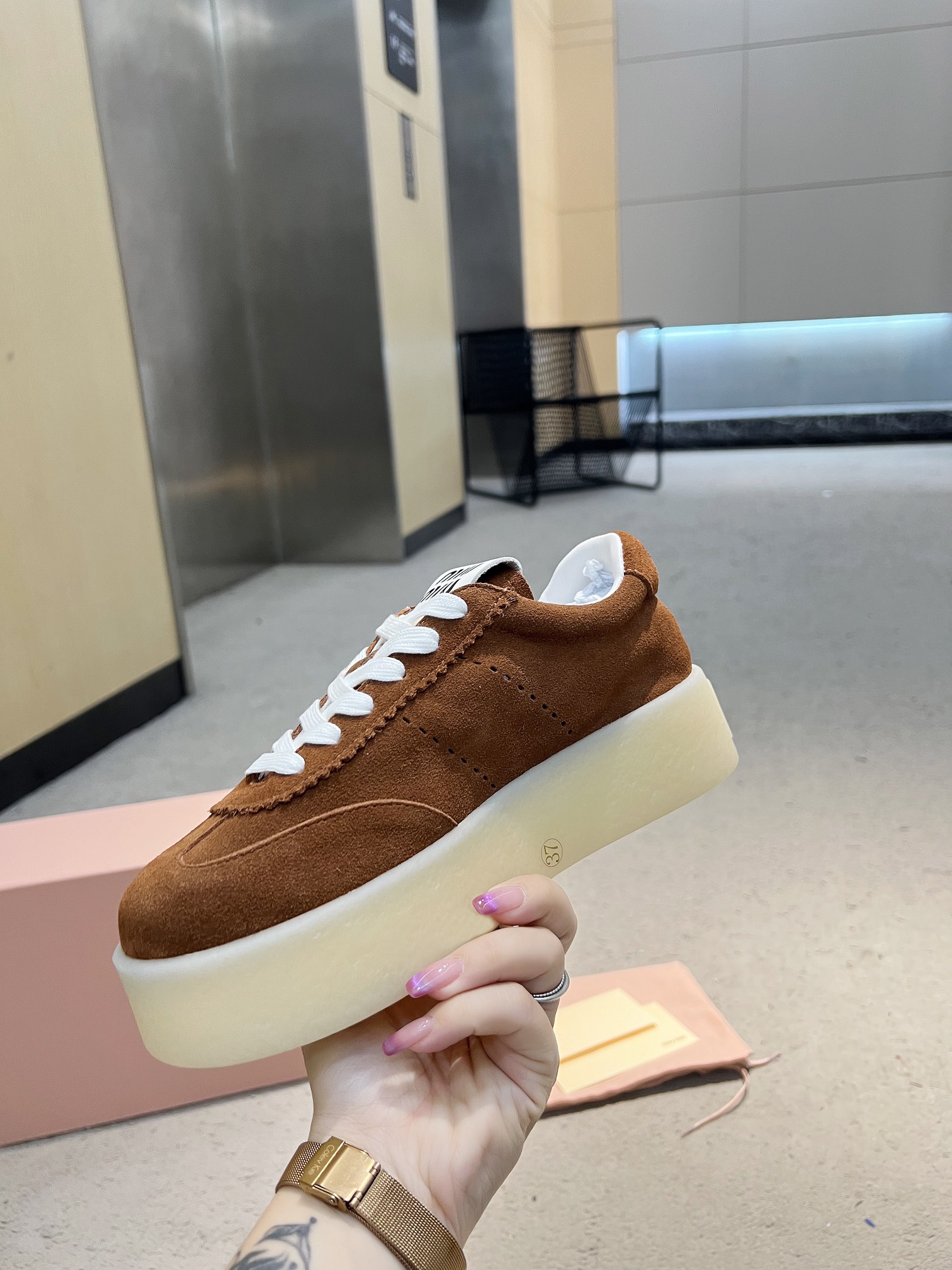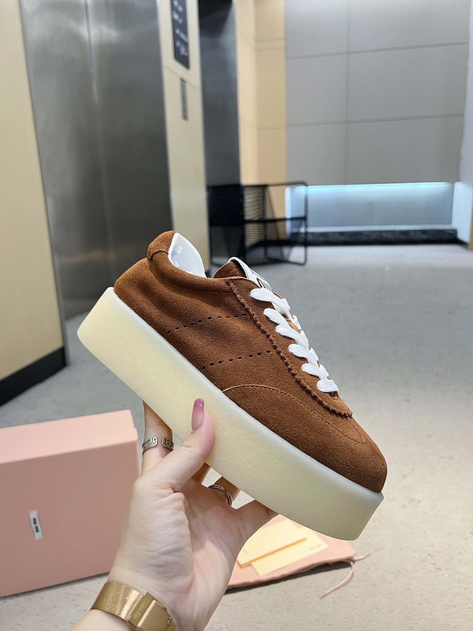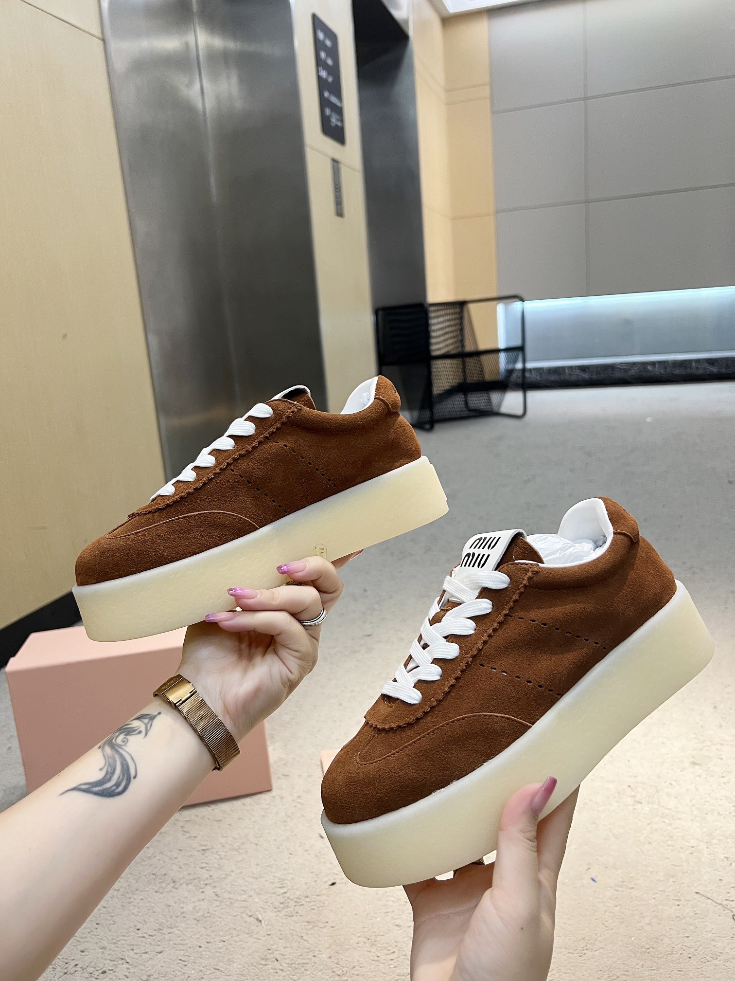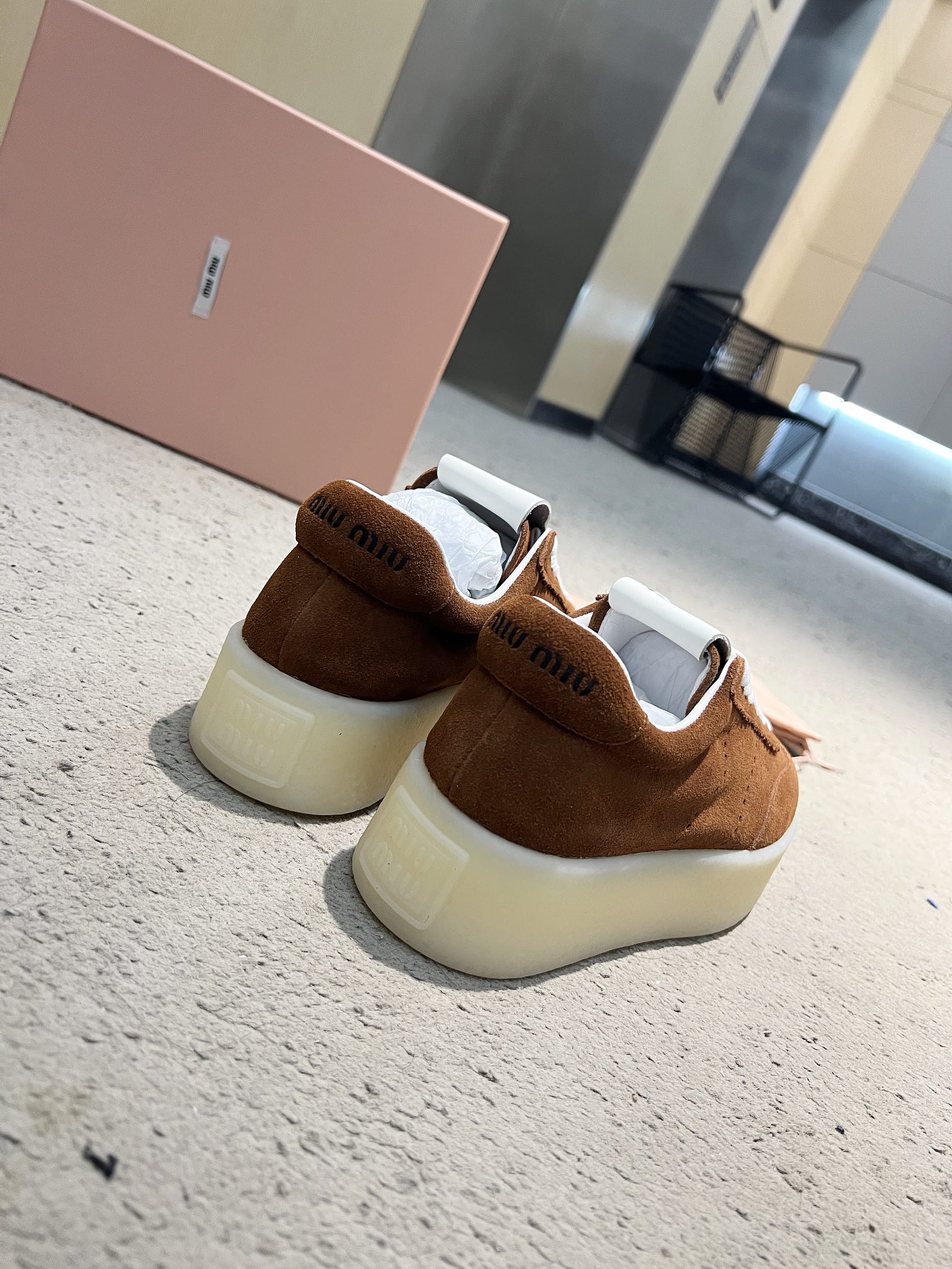 这款鞋子是AAAAA 1:1 质量 (非常棒). 使用了和原版一模一样的材料. 商标部分也保持了和缪缪/Miu Miu一样. 图片拍摄是实物鞋子拍摄, 您所收到的实物保证和我们图片一模一样.