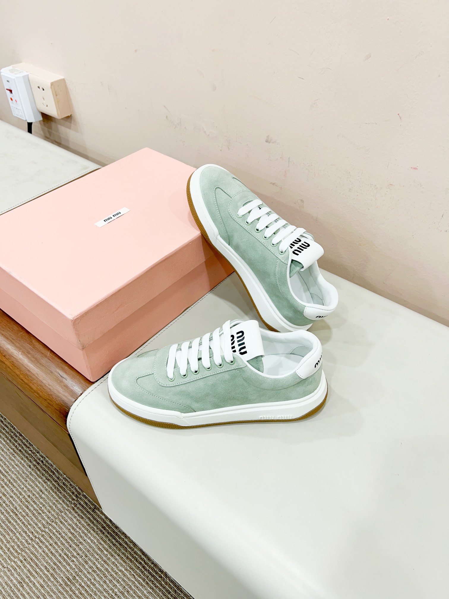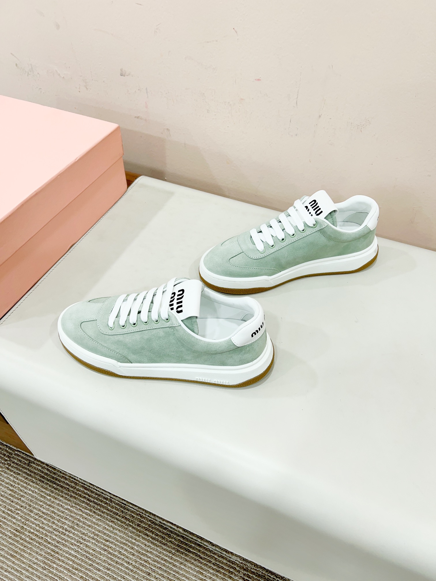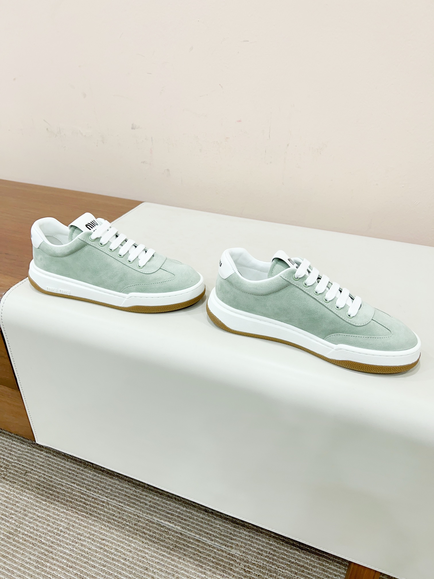 这款鞋子是AAAAA 1:1 质量 (非常棒). 使用了和原版一模一样的材料. 商标部分也保持了和缪缪/Miu Miu一样. 图片拍摄是实物鞋子拍摄, 您所收到的实物保证和我们图片一模一样.