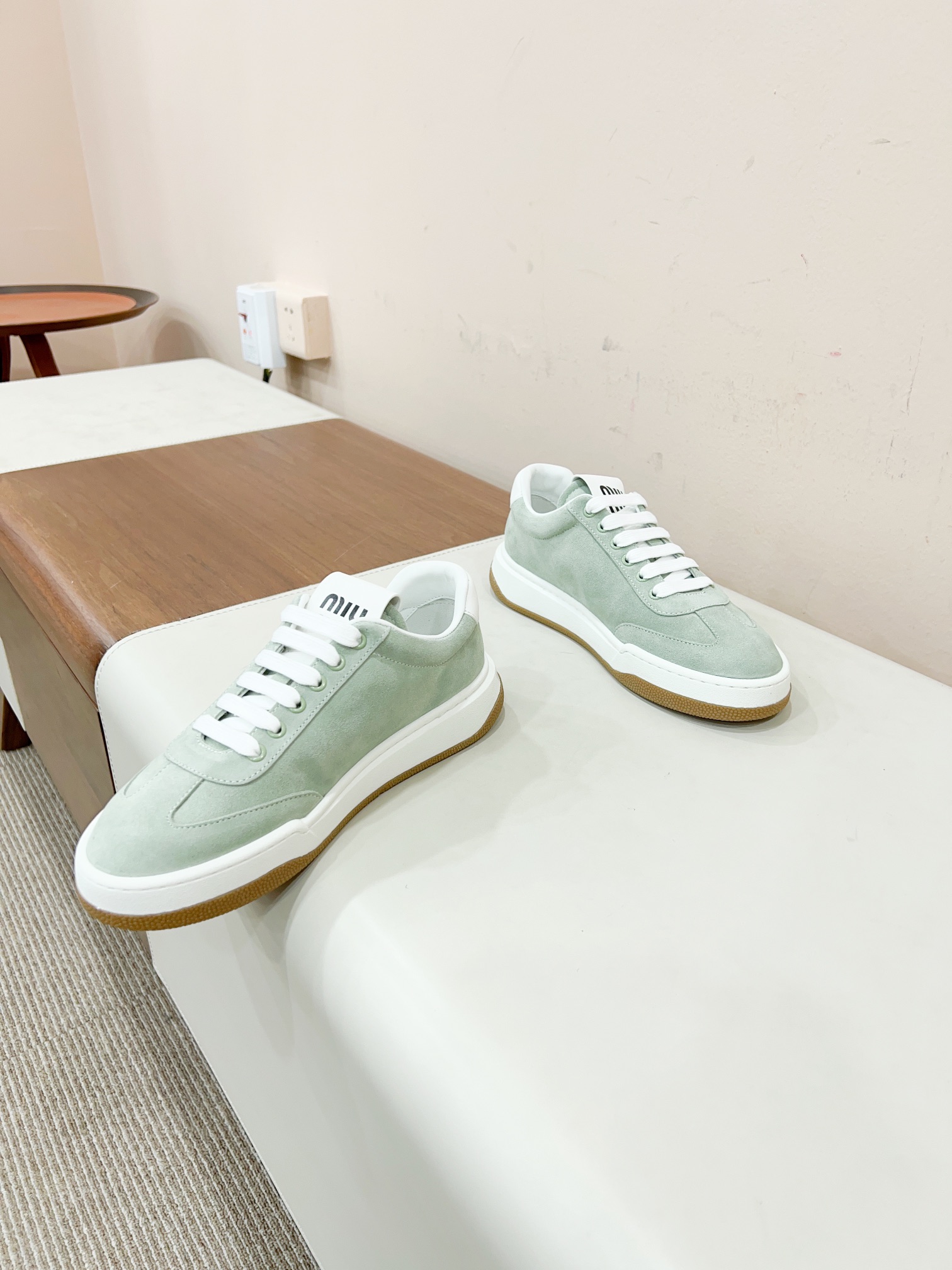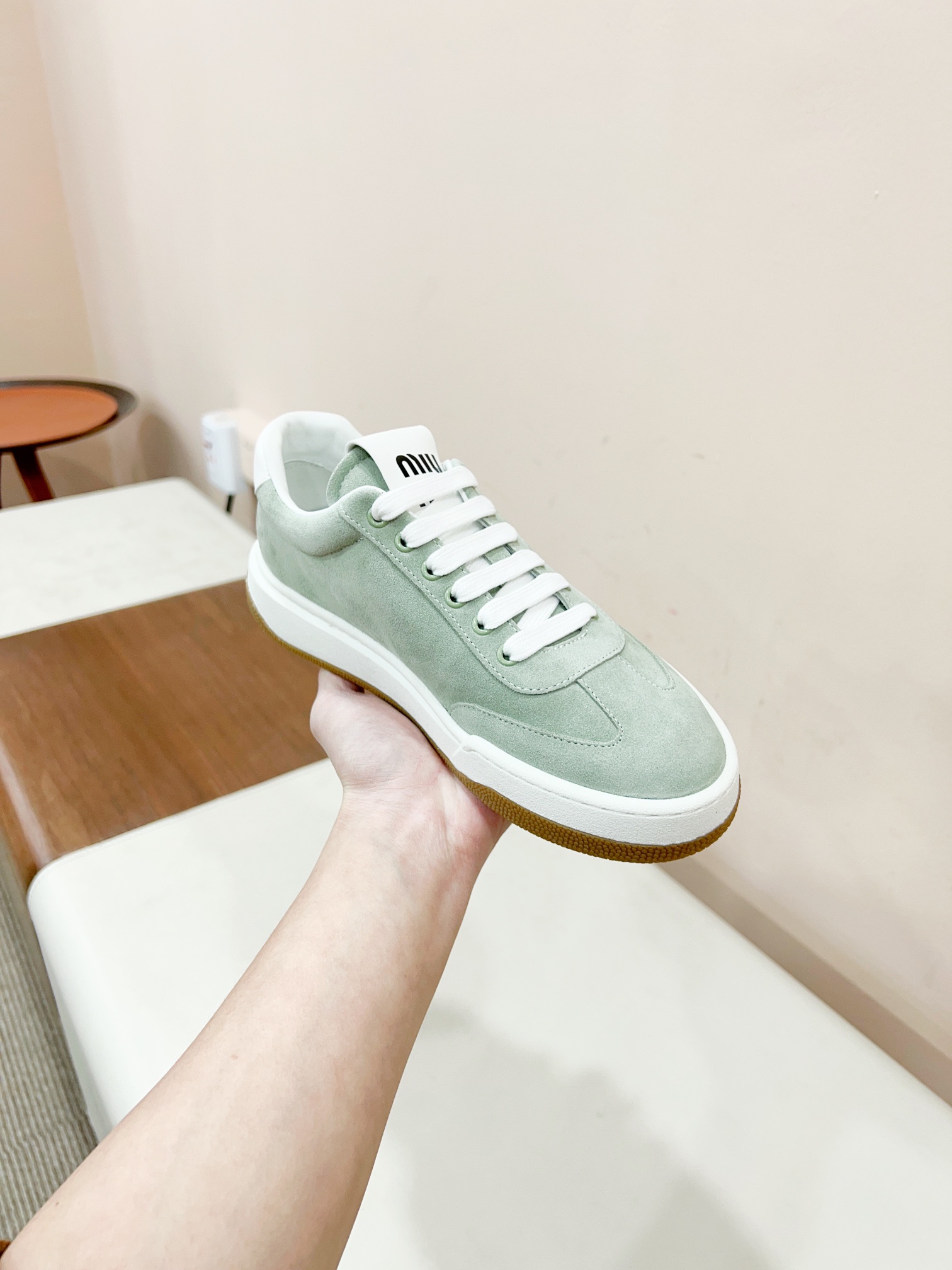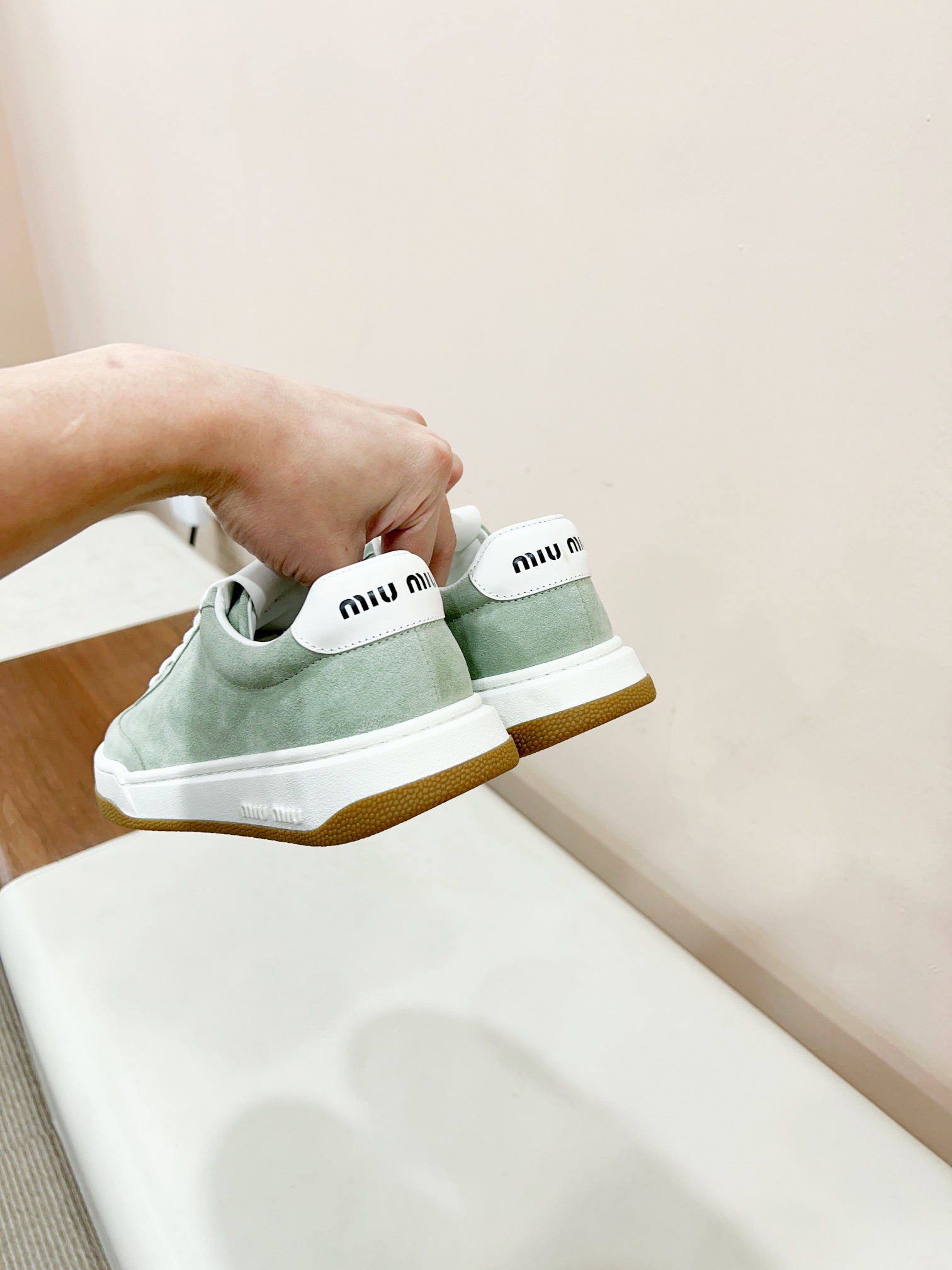 这款鞋子是AAAAA 1:1 质量 (非常棒). 使用了和原版一模一样的材料. 商标部分也保持了和缪缪/Miu Miu一样. 图片拍摄是实物鞋子拍摄, 您所收到的实物保证和我们图片一模一样.