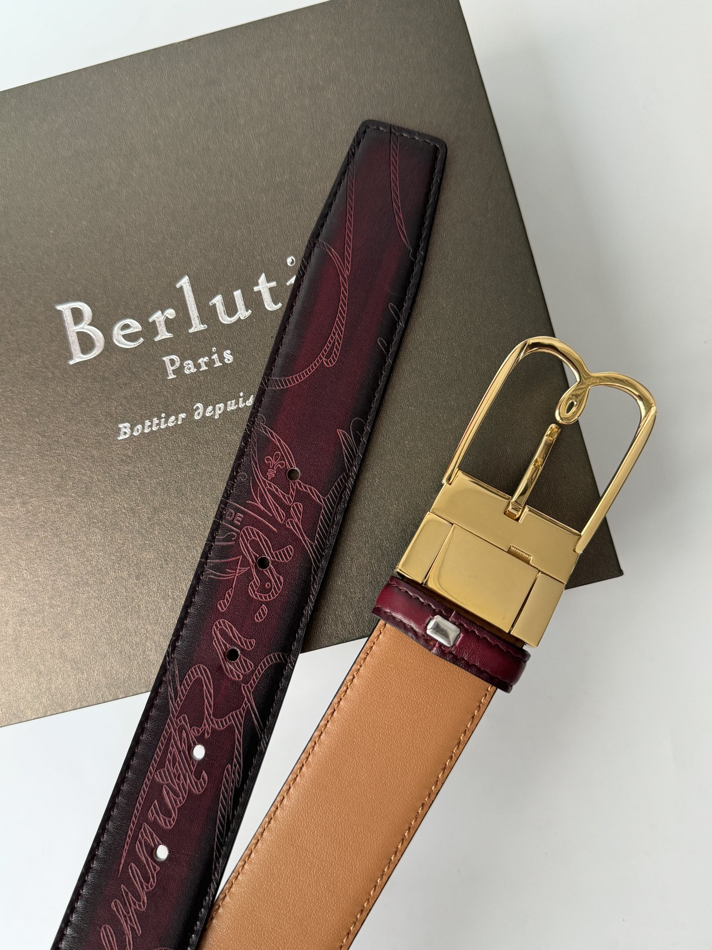 这款皮带是AAAAA 1:1 质量 (非常棒). 使用了和原版一模一样的材料. 商标部分也保持了和Berluti一样. 图片拍摄是实物皮带拍摄, 您所收到的实物保证和我们图片一模一样.