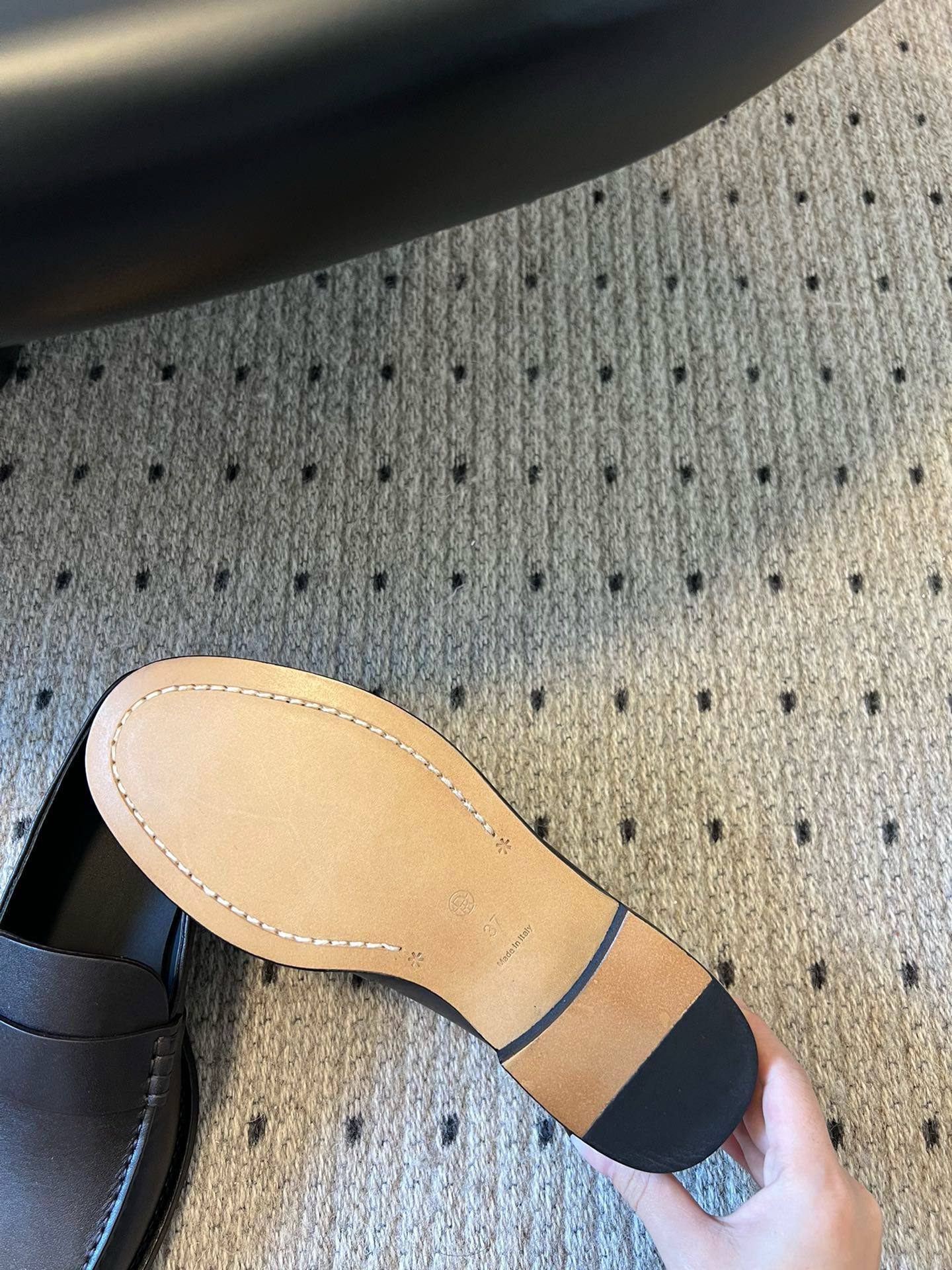 这款鞋子是AAAAA 1:1 质量 (非常棒). 使用了和原版一模一样的材料. 商标部分也保持了和The Row一样. 图片拍摄是实物鞋子拍摄, 您所收到的实物保证和我们图片一模一样.