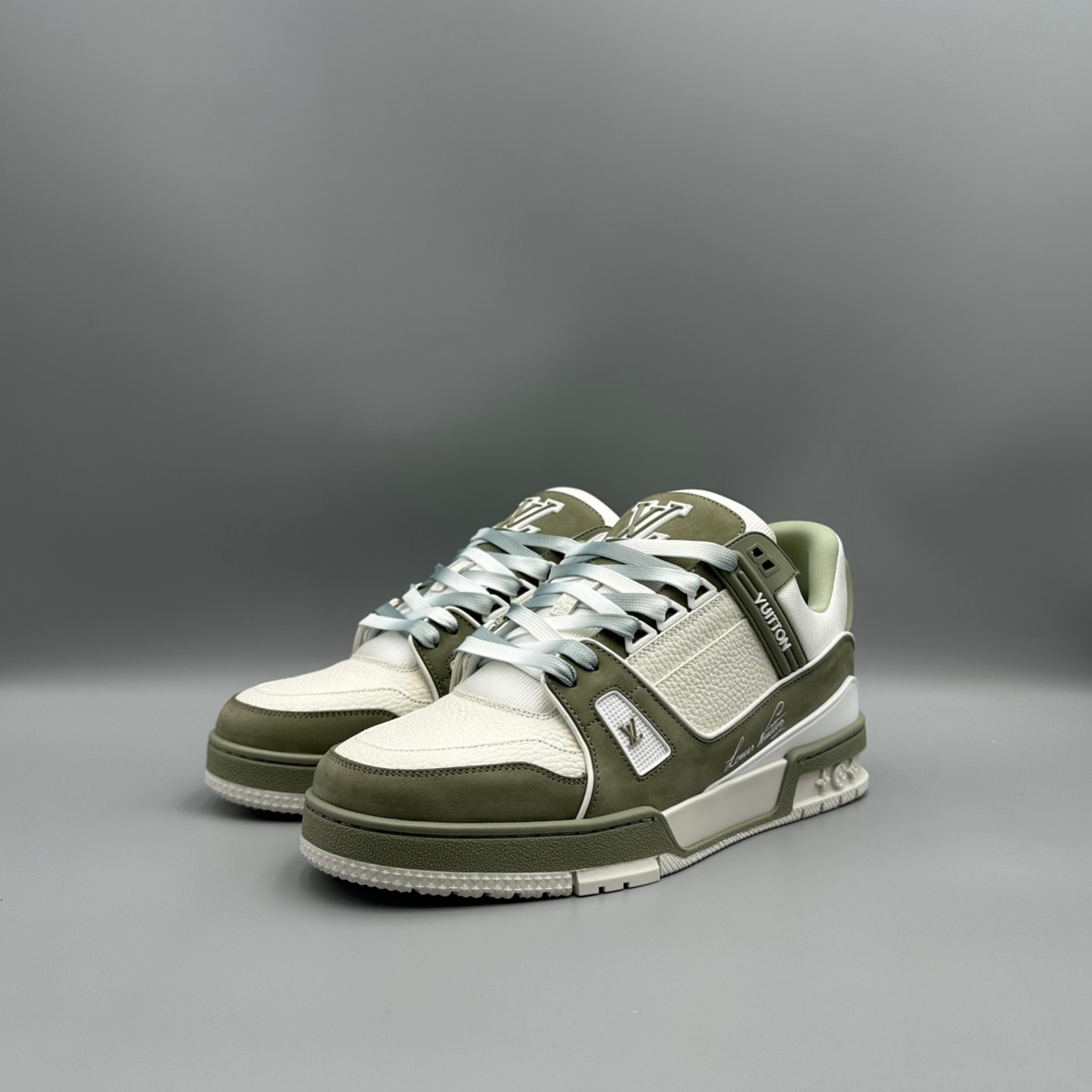 这款鞋子是AAAAA 1:1 质量 (非常棒). 使用了和原版一模一样的材料. 商标部分也保持了和路易威登/Louis Vuitton一样. 图片拍摄是实物鞋子拍摄, 您所收到的实物保证和我们图片一模一样.