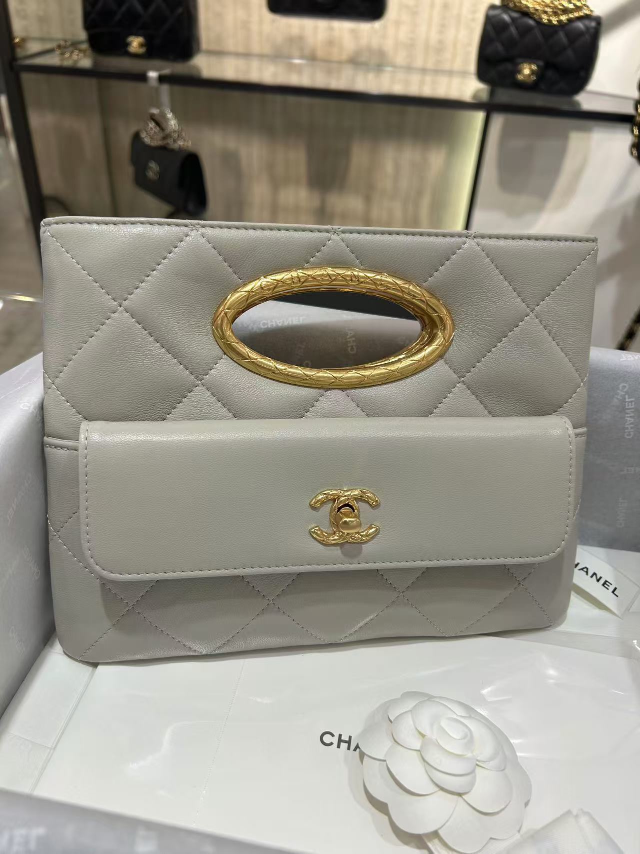 这款包包是AAAAA 1:1 质量 (非常棒). 使用了和原版一模一样的材料. 商标部分也保持了和香奈儿/Chanel一样. 图片拍摄是实物包包拍摄, 您所收到的实物保证和我们图片一模一样.