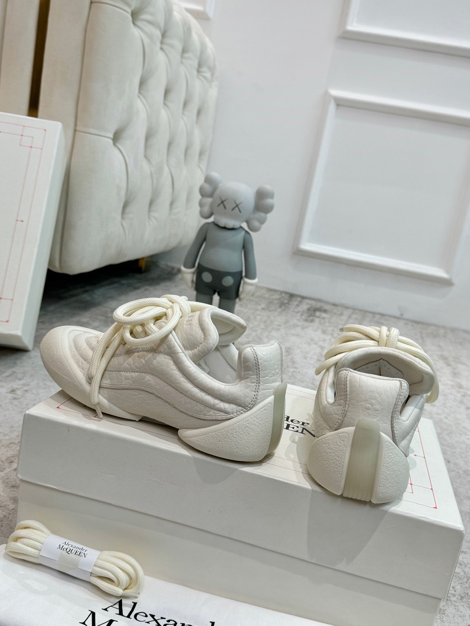 这款鞋子是AAAAA 1:1 质量 (非常棒). 使用了和原版一模一样的材料. 商标部分也保持了和亚历山大·麦昆/McQueen一样. 图片拍摄是实物鞋子拍摄, 您所收到的实物保证和我们图片一模一样.