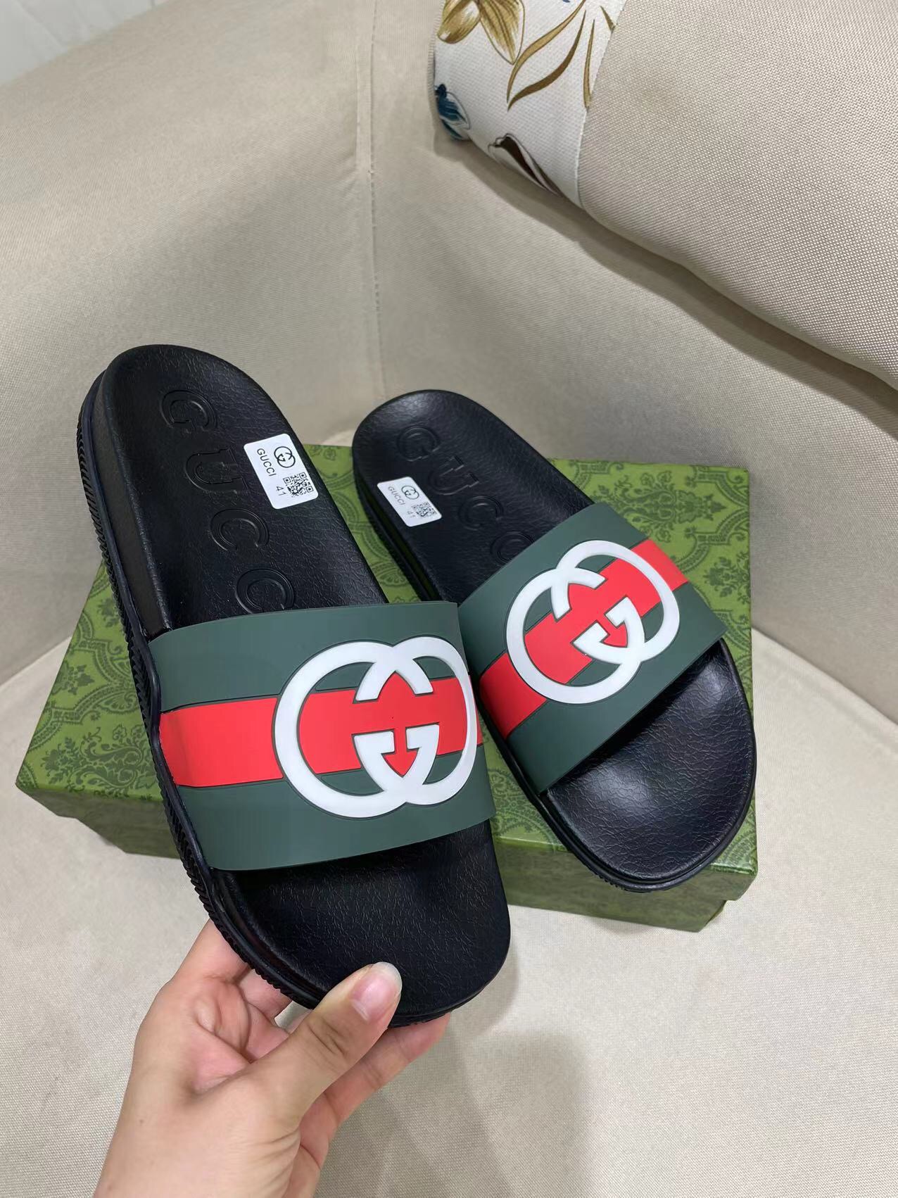 这款鞋子是AAAAA 1:1 质量 (非常棒). 使用了和原版一模一样的材料. 商标部分也保持了和古奇/Gucci一样. 图片拍摄是实物鞋子拍摄, 您所收到的实物保证和我们图片一模一样.