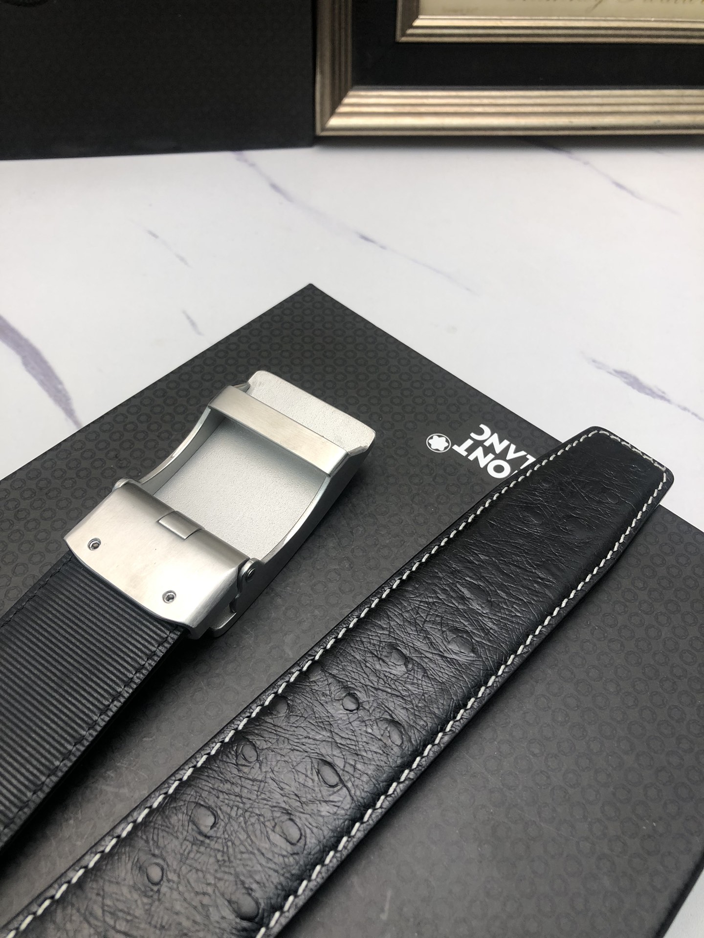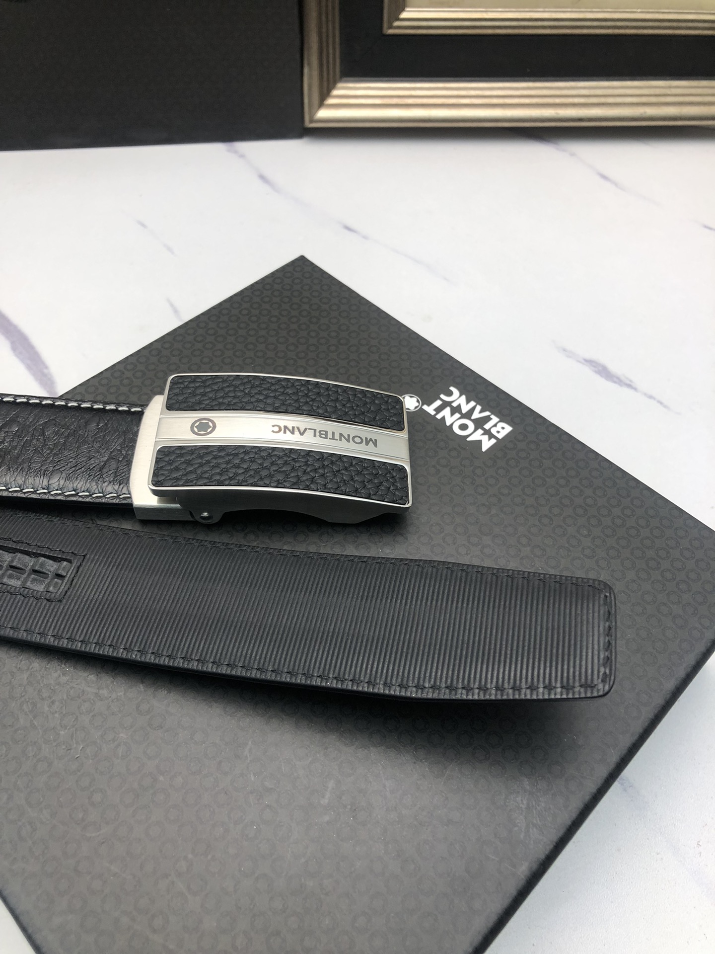 这款皮带是AAAAA 1:1 质量 (非常棒). 使用了和原版一模一样的材料. 商标部分也保持了和万宝龙/Montblanc一样. 图片拍摄是实物皮带拍摄, 您所收到的实物保证和我们图片一模一样.