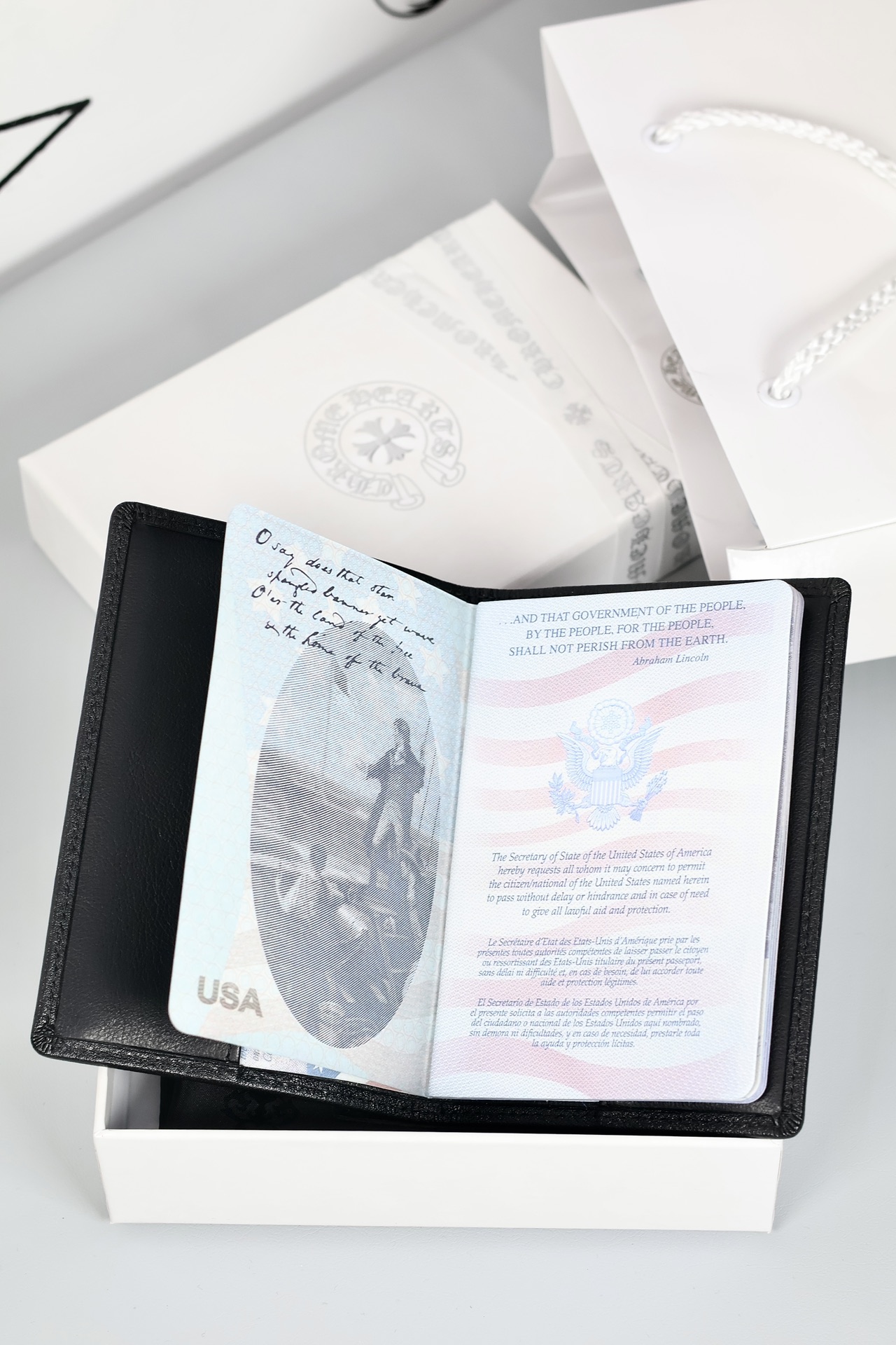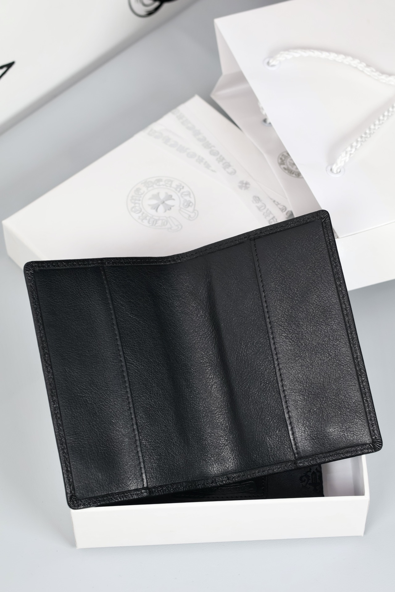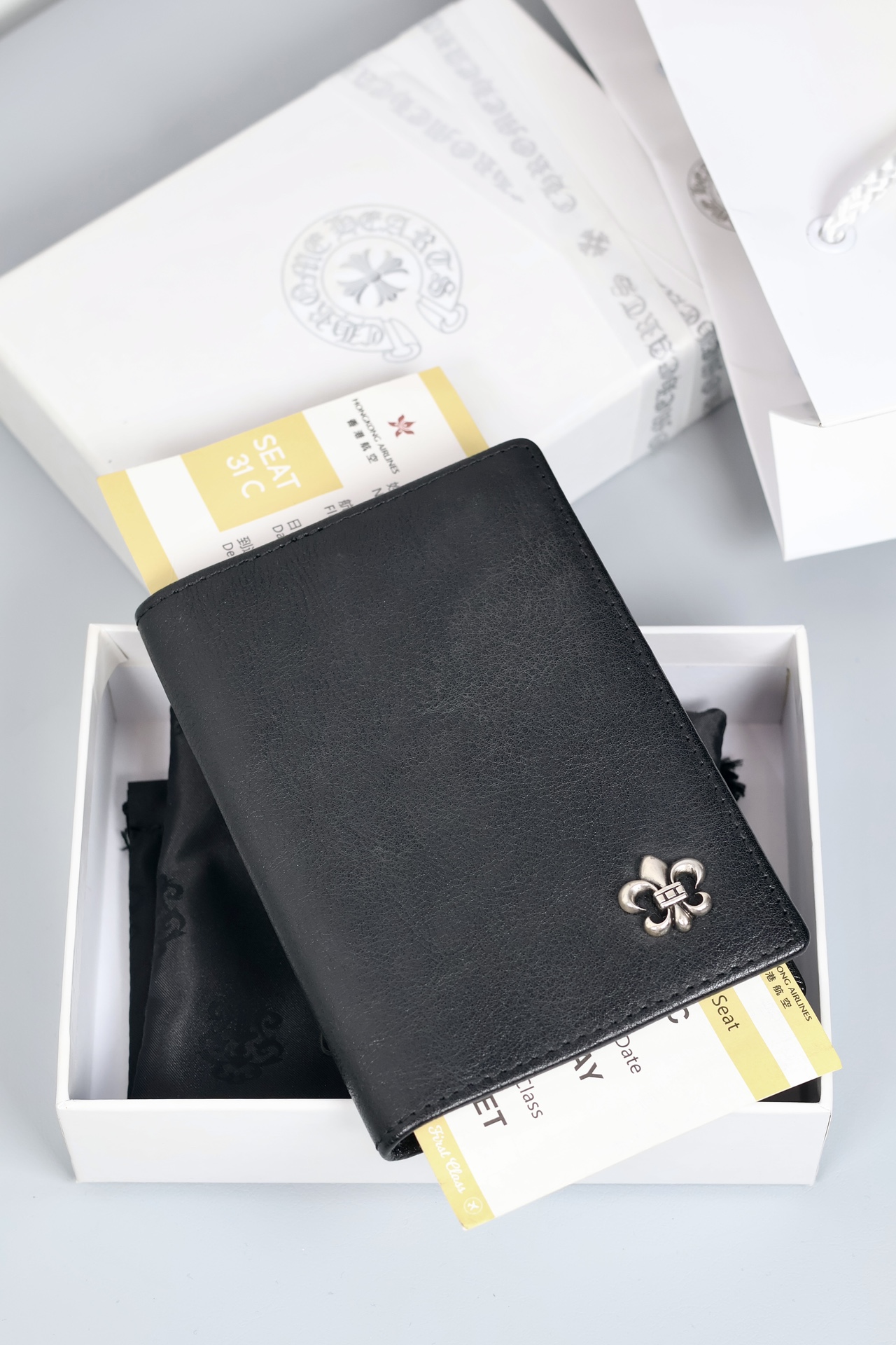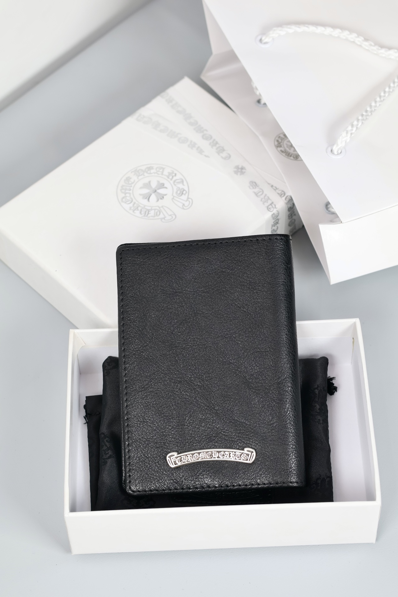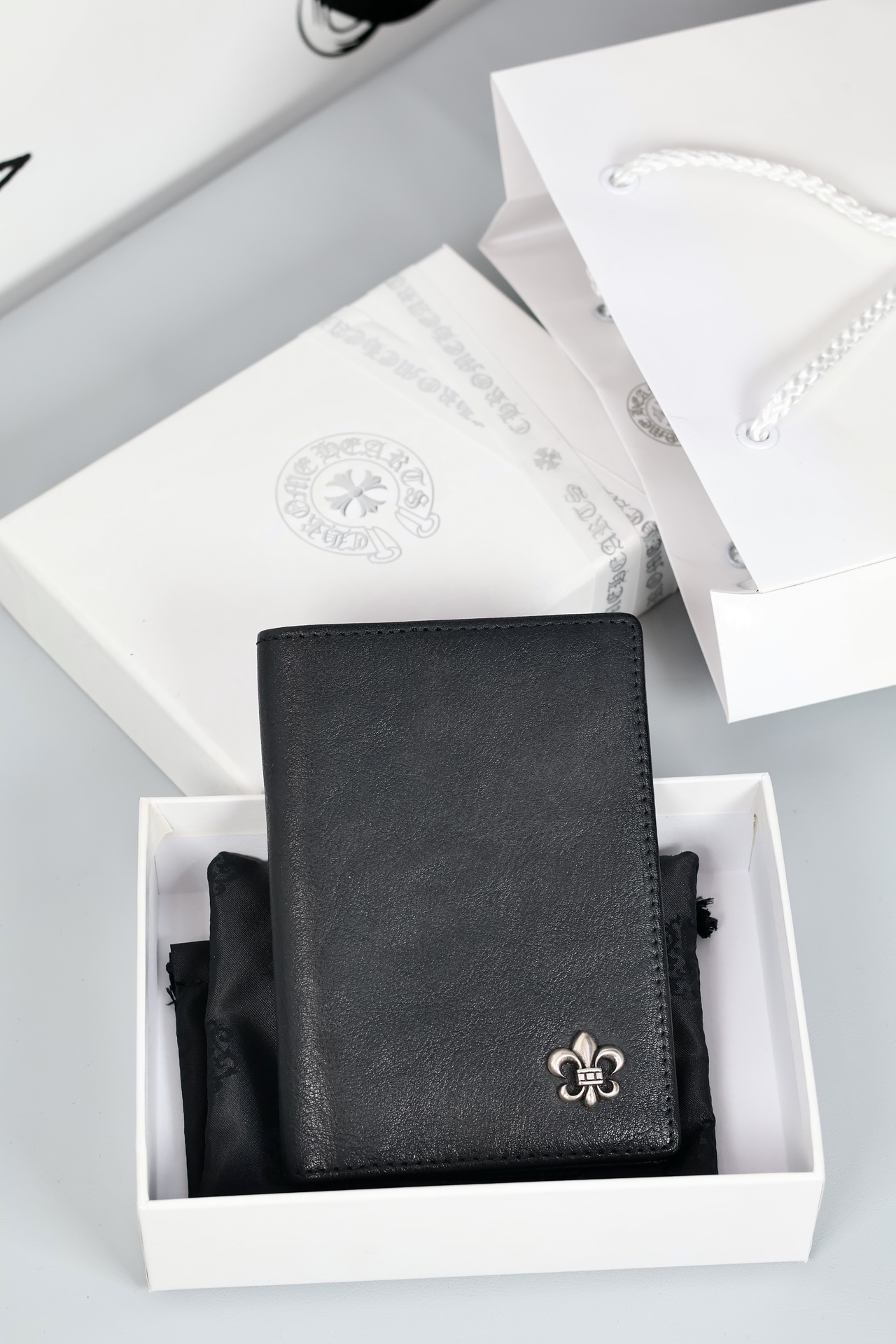 这款passport holder是AAAAA 1:1 质量 (非常棒). 使用了和原版一模一样的材料. 商标部分也保持了和克罗心/Chrome Hearts一样. 图片拍摄是实物passport holder拍摄, 您所收到的实物保证和我们图片一模一样.