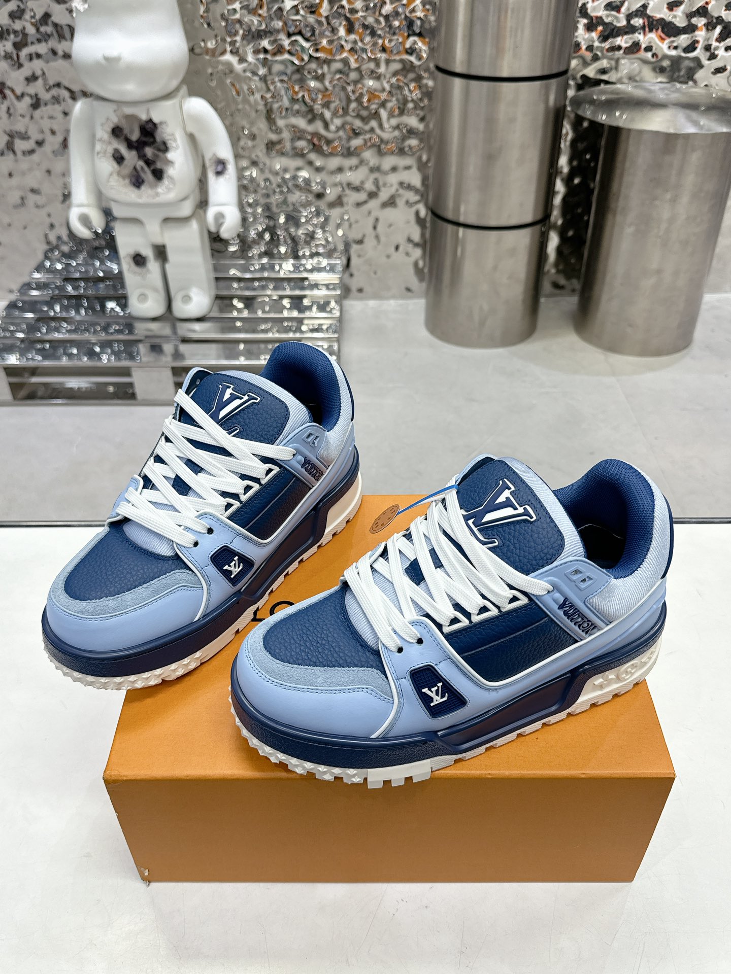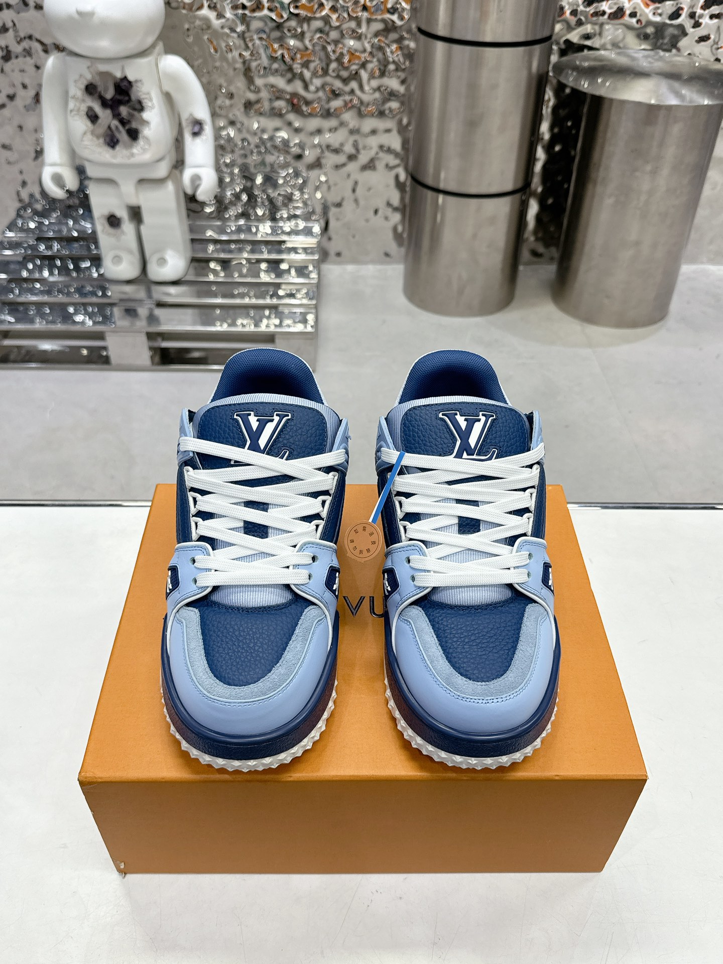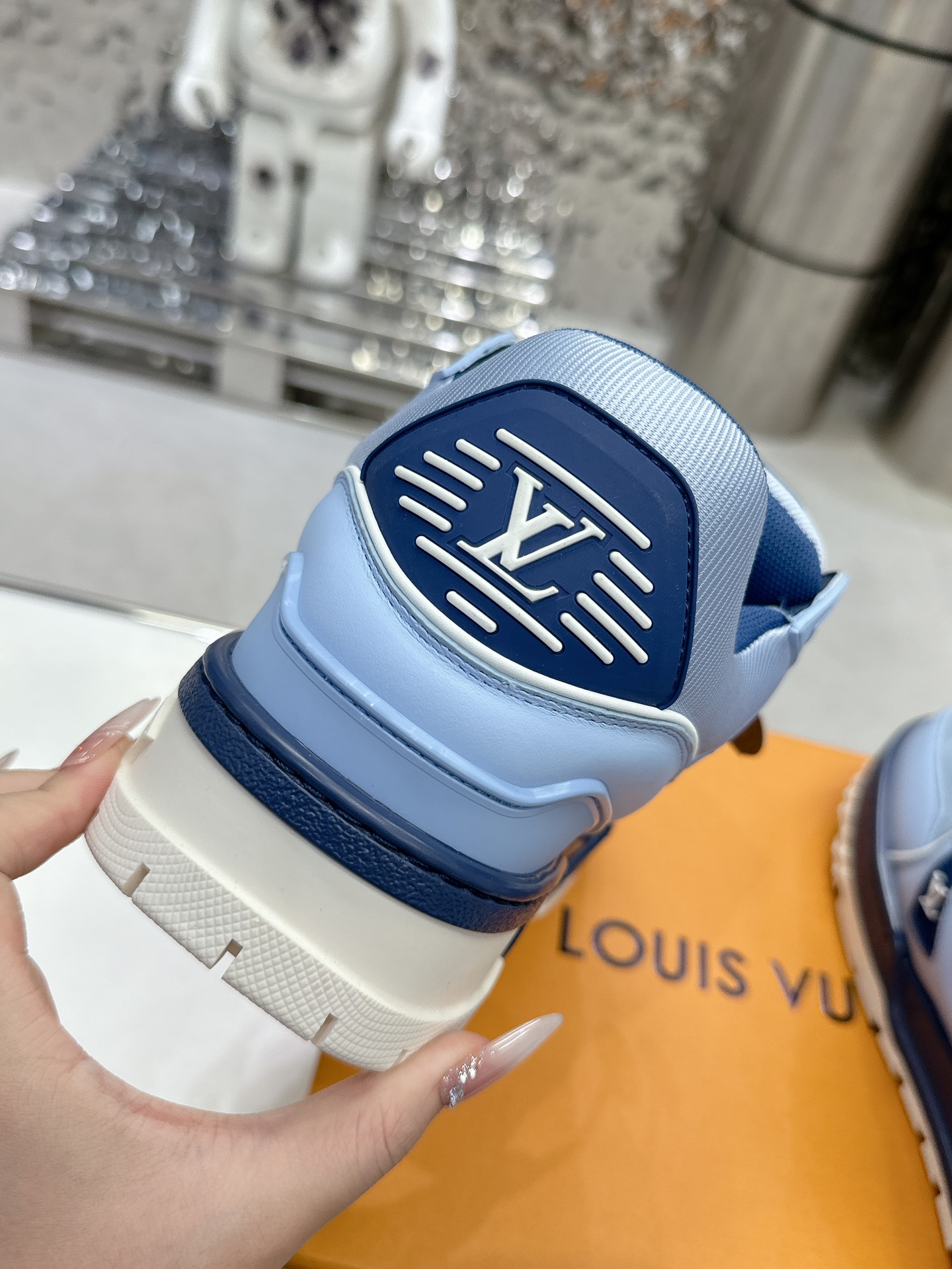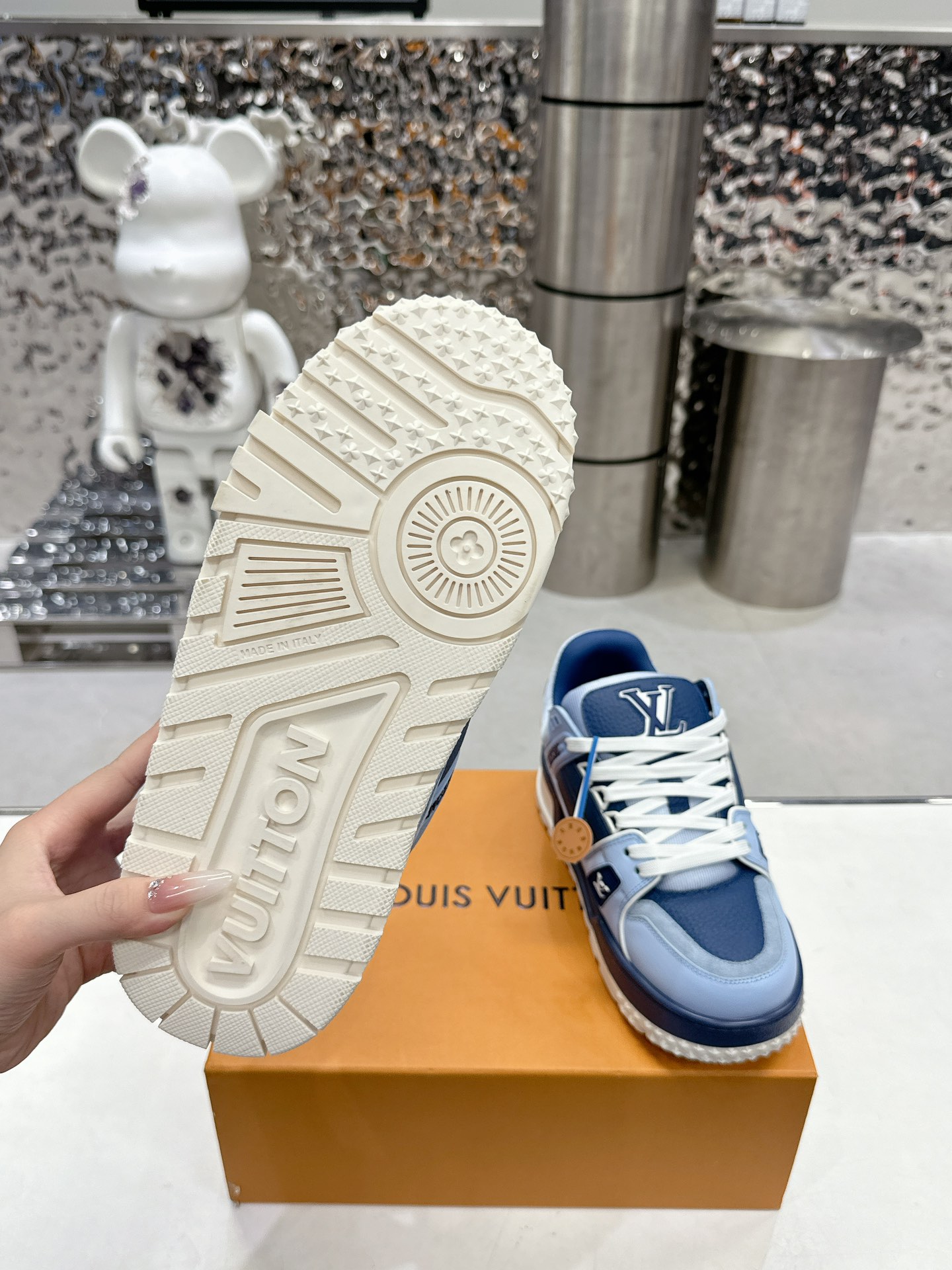 这款鞋子是AAAAA 1:1 质量 (非常棒). 使用了和原版一模一样的材料. 商标部分也保持了和路易威登/Louis Vuitton一样. 图片拍摄是实物鞋子拍摄, 您所收到的实物保证和我们图片一模一样.