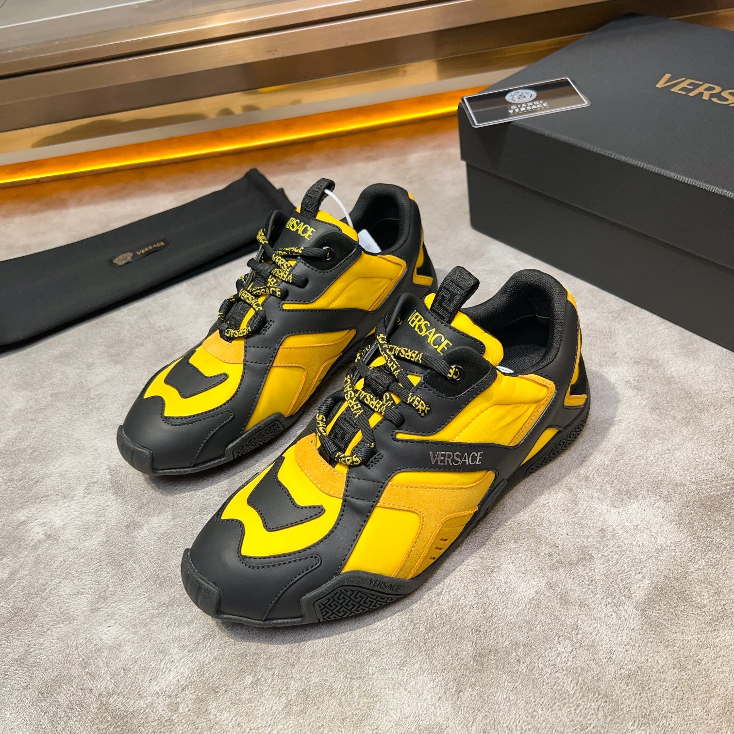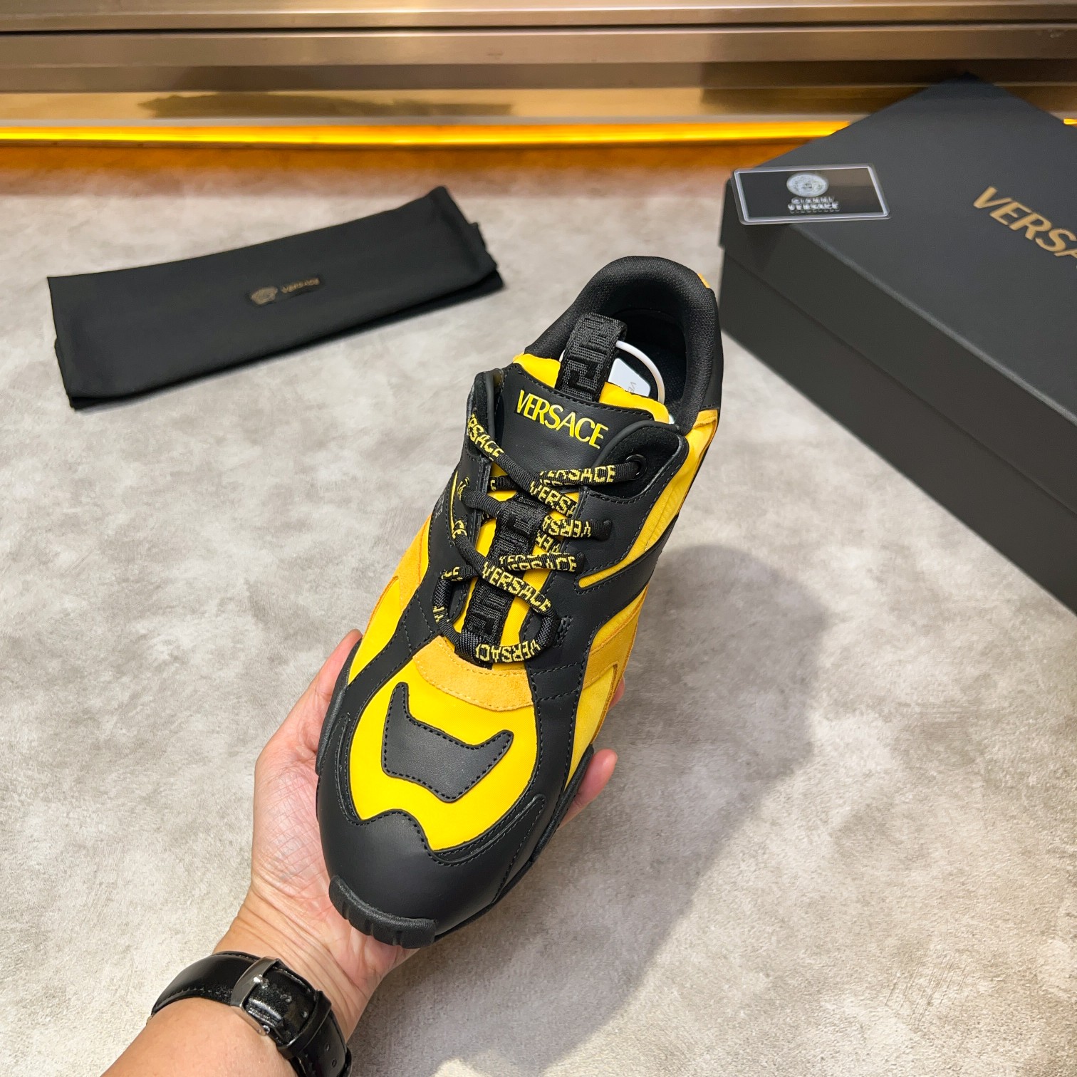 这款鞋子是AAAAA 1:1 质量 (非常棒). 使用了和原版一模一样的材料. 商标部分也保持了和范思哲/Versace一样. 图片拍摄是实物鞋子拍摄, 您所收到的实物保证和我们图片一模一样.