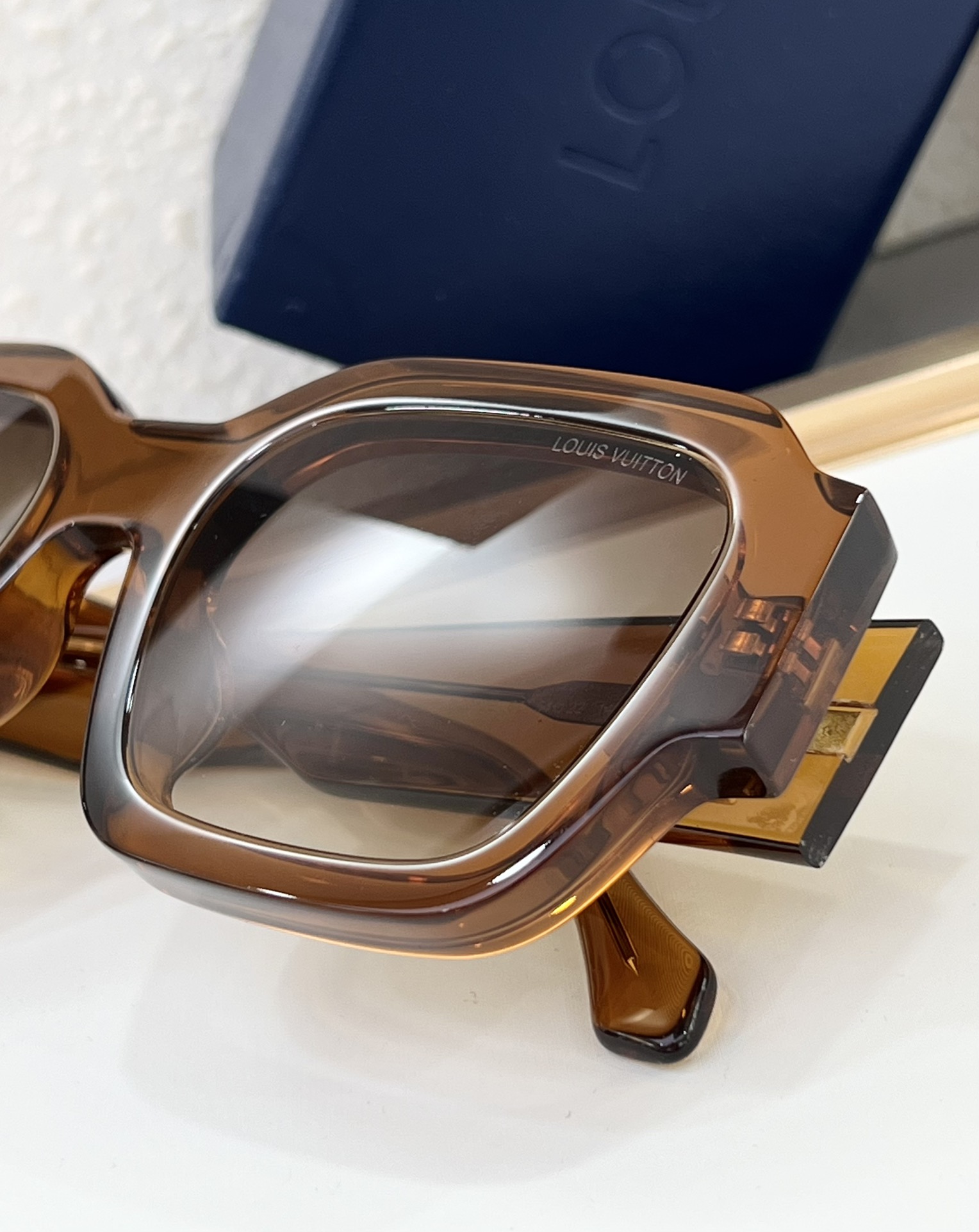 这款太阳眼镜是AAAAA 1:1 质量 (非常棒). 使用了和原版一模一样的材料. 商标部分也保持了和路易威登/Louis Vuitton一样. 图片拍摄是实物太阳眼镜拍摄, 您所收到的实物保证和我们图片一模一样.
