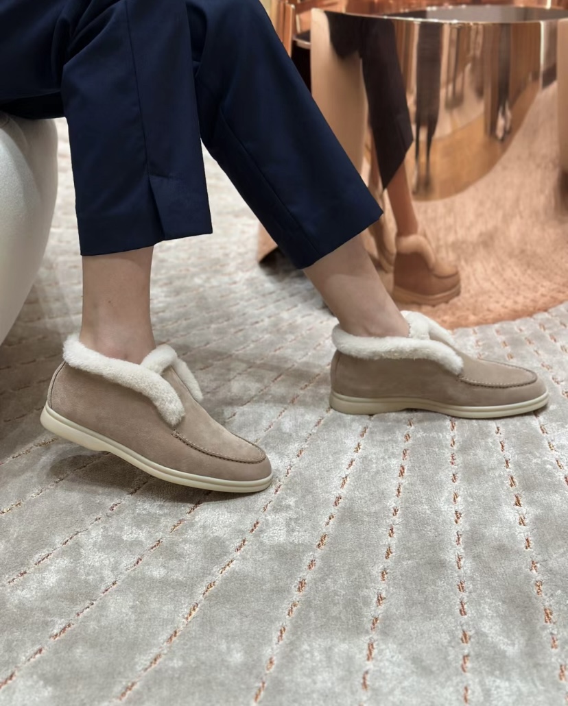 这款鞋子是AAAAA 1:1 质量 (非常棒). 使用了和原版一模一样的材料. 商标部分也保持了和洛罗皮亚纳/Loro Piana一样. 图片拍摄是实物鞋子拍摄, 您所收到的实物保证和我们图片一模一样.