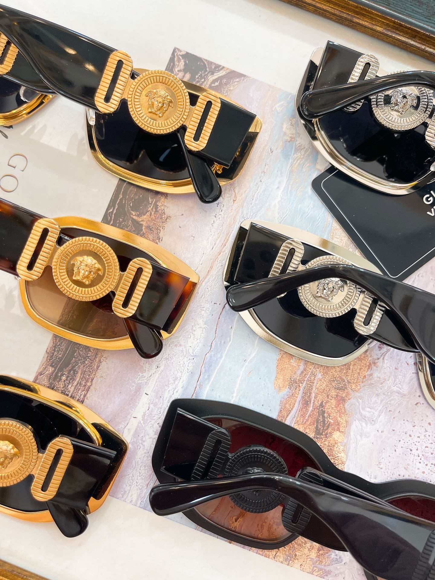 这款太阳眼镜是AAAAA 1:1 质量 (非常棒). 使用了和原版一模一样的材料. 商标部分也保持了和范思哲/Versace一样. 图片拍摄是实物太阳眼镜拍摄, 您所收到的实物保证和我们图片一模一样.