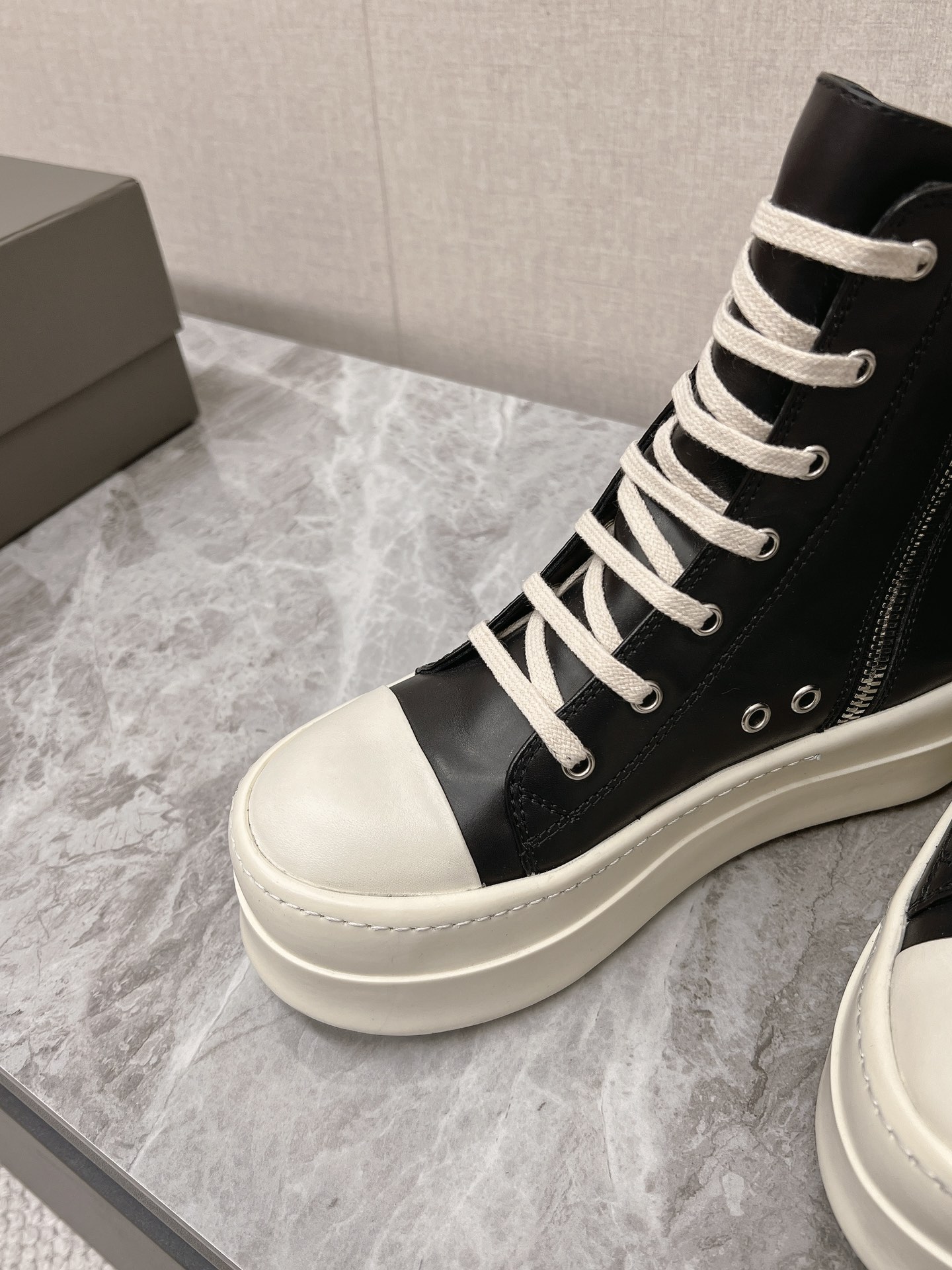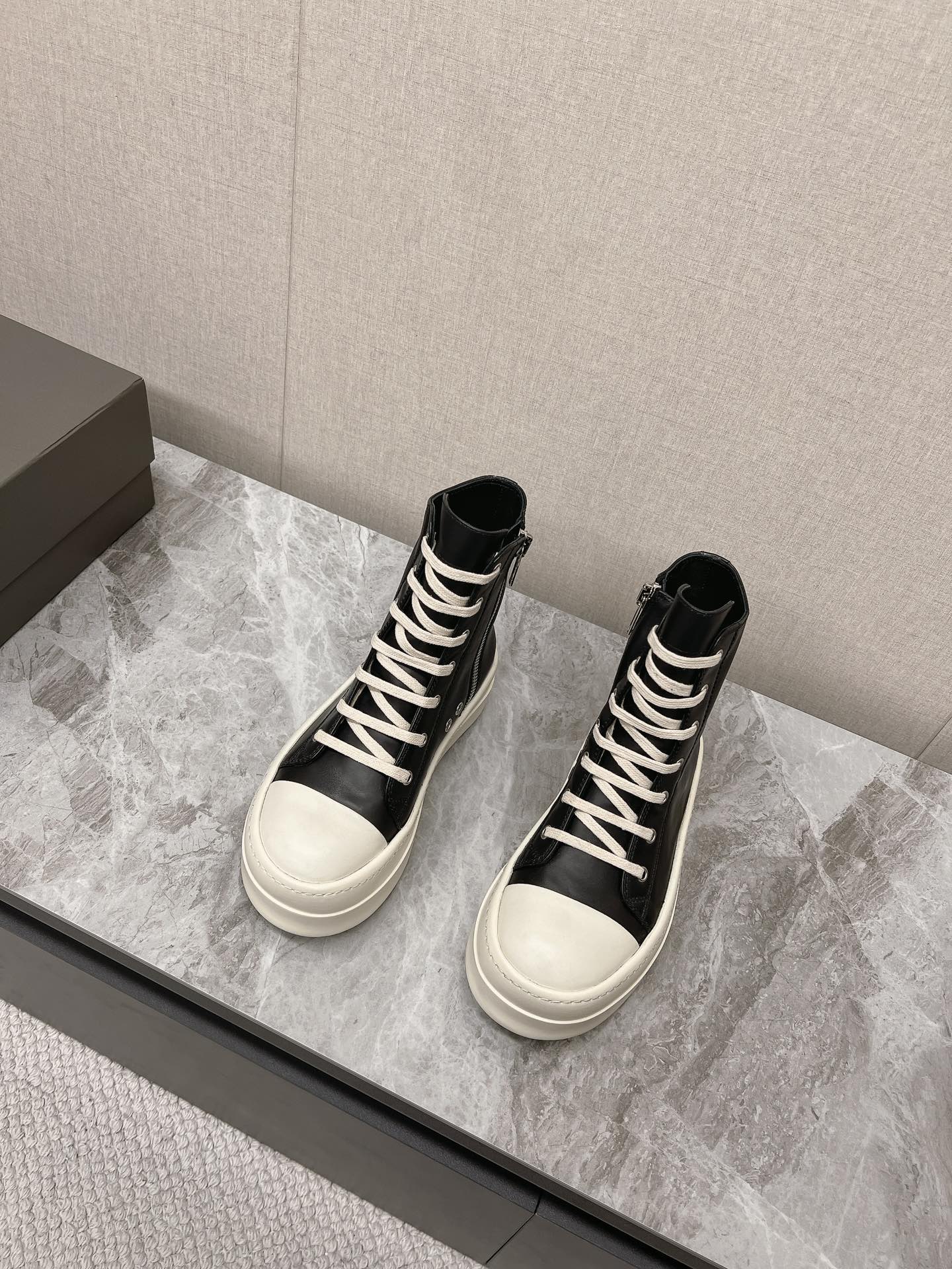 这款鞋子是AAAAA 1:1 质量 (非常棒). 使用了和原版一模一样的材料. 商标部分也保持了和里克·欧文斯/Rick Owens一样. 图片拍摄是实物鞋子拍摄, 您所收到的实物保证和我们图片一模一样.