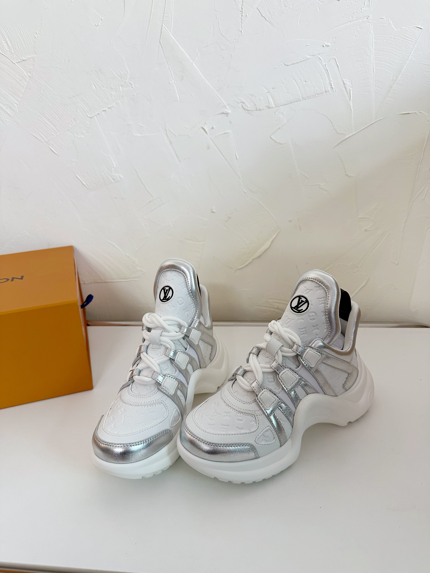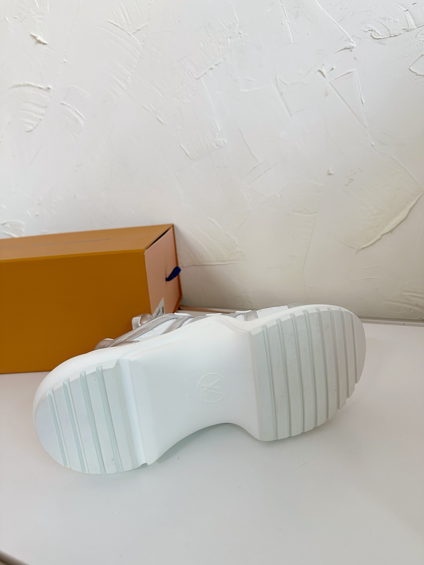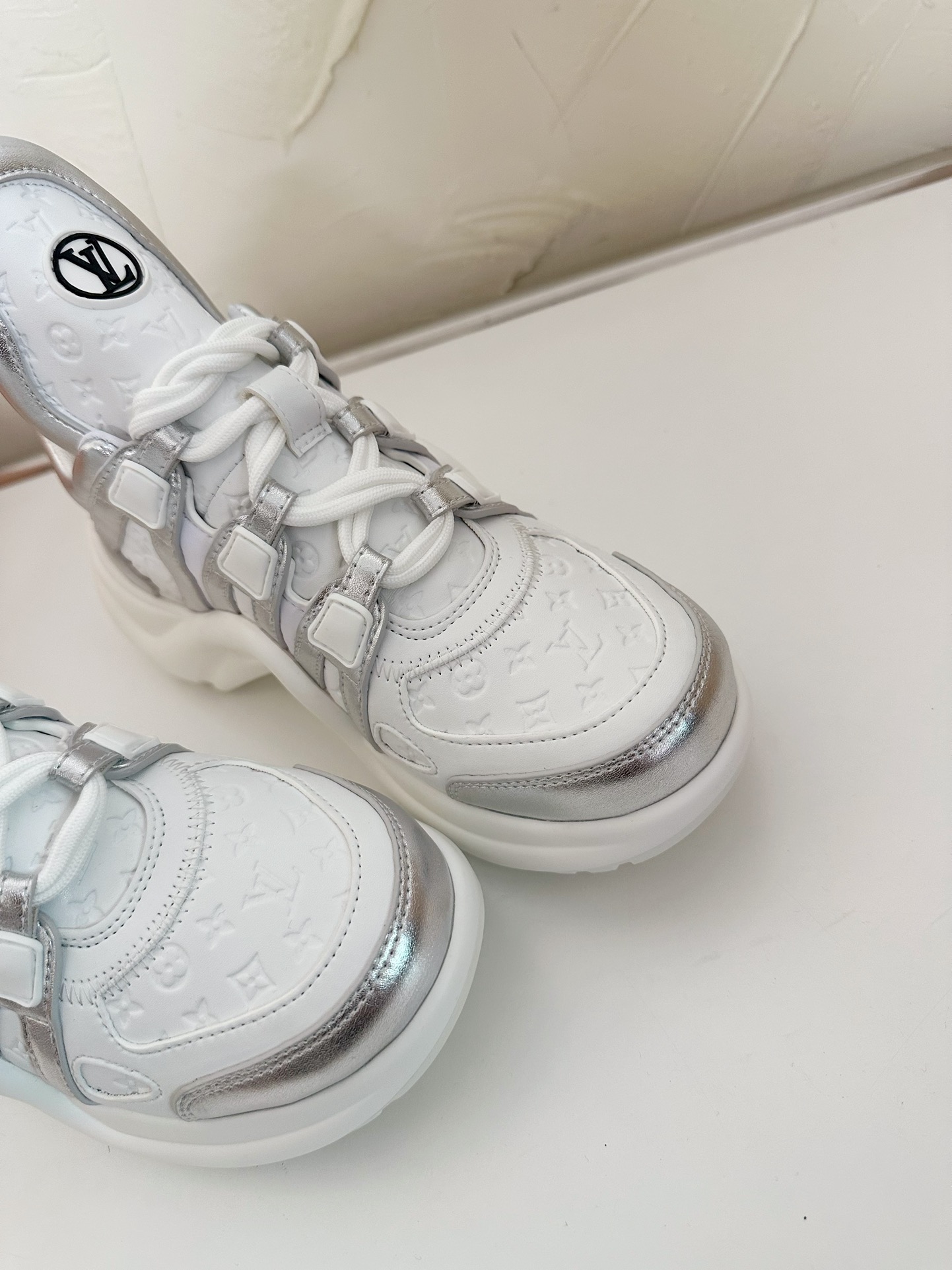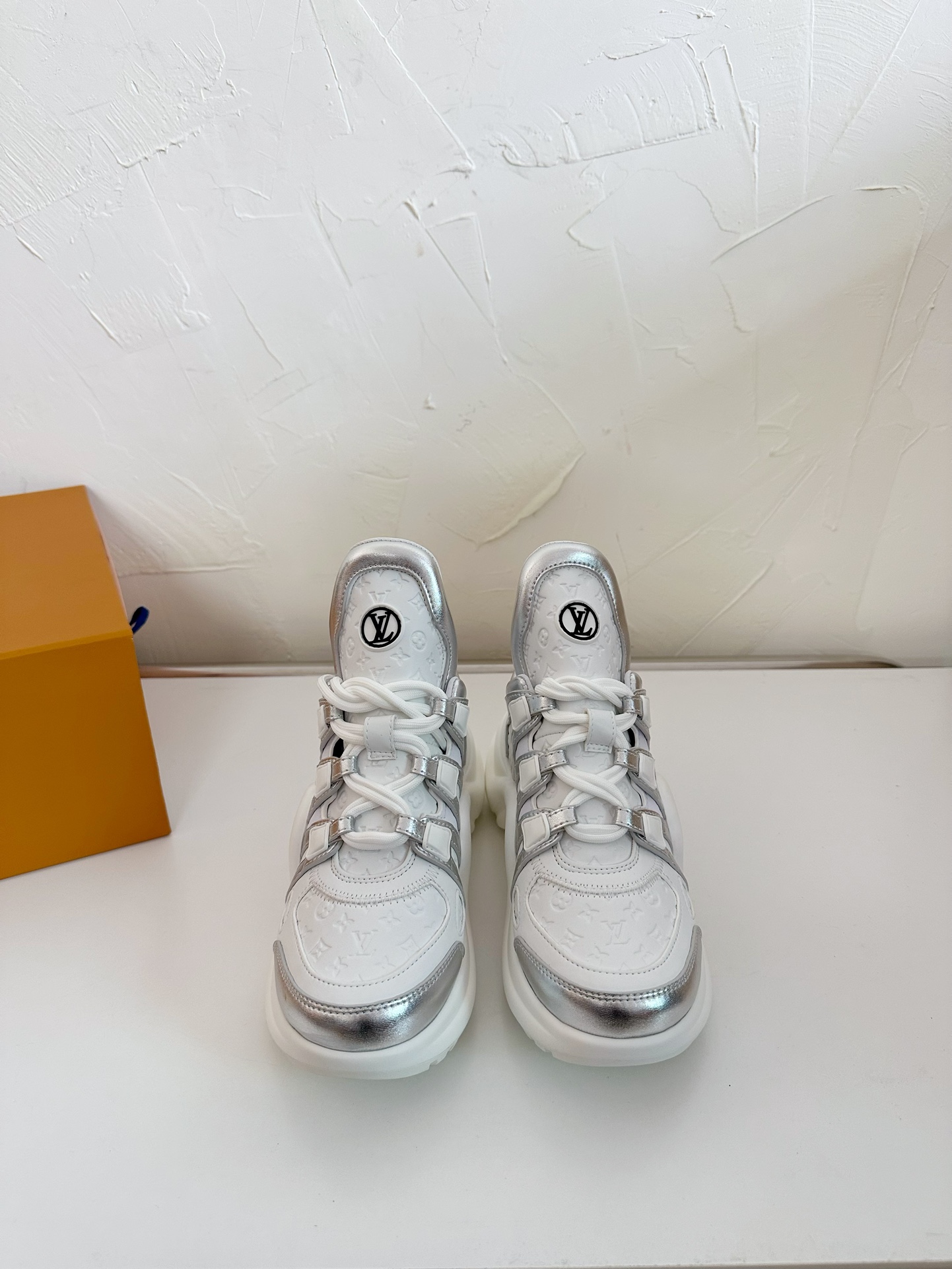 这款鞋子是AAAAA 1:1 质量 (非常棒). 使用了和原版一模一样的材料. 商标部分也保持了和路易威登/Louis Vuitton一样. 图片拍摄是实物鞋子拍摄, 您所收到的实物保证和我们图片一模一样.