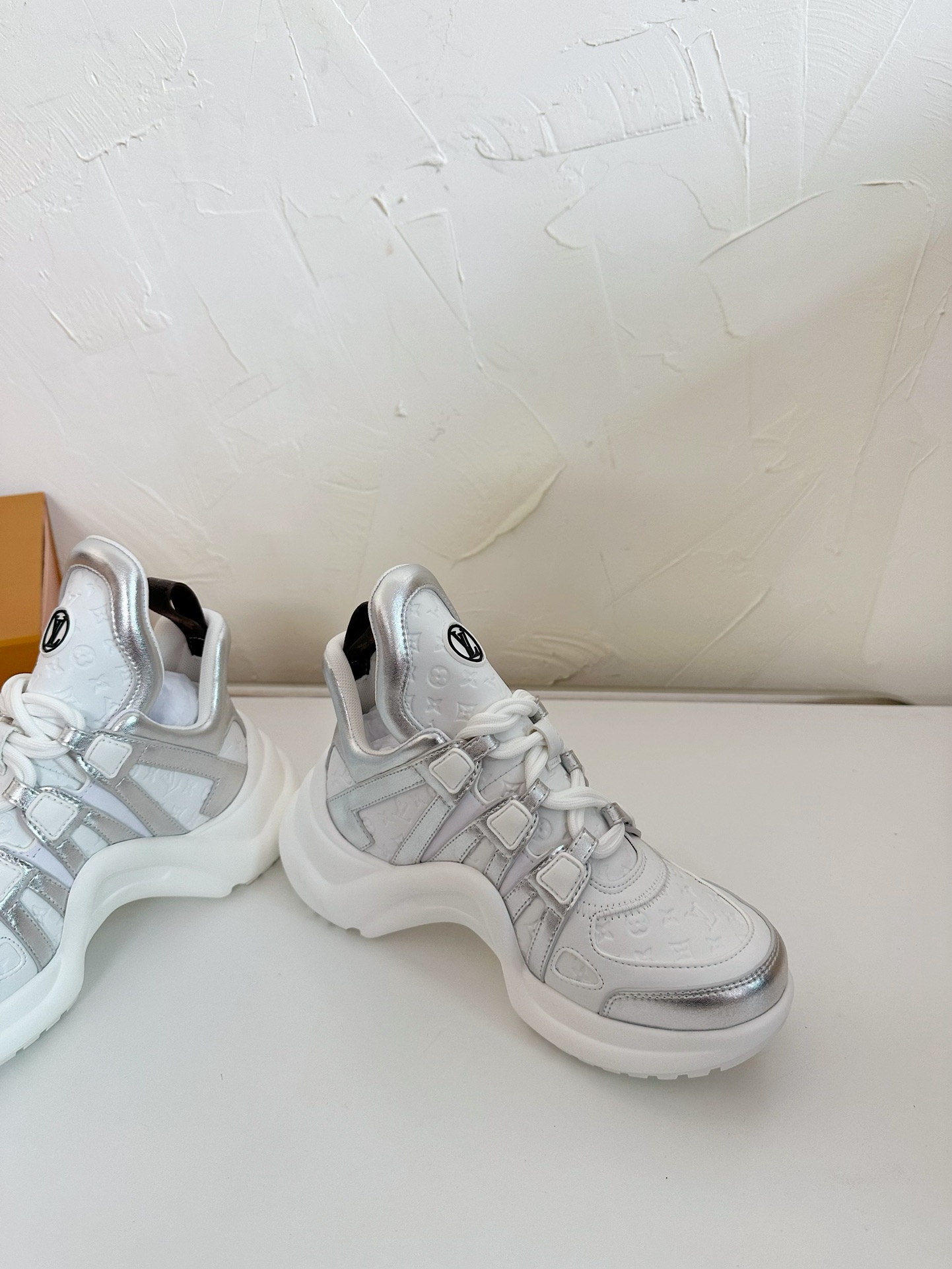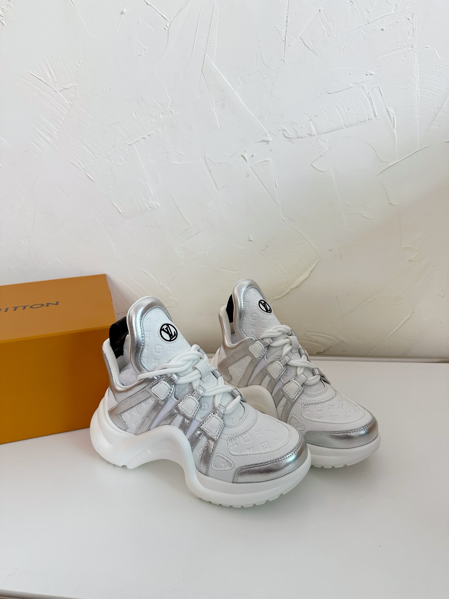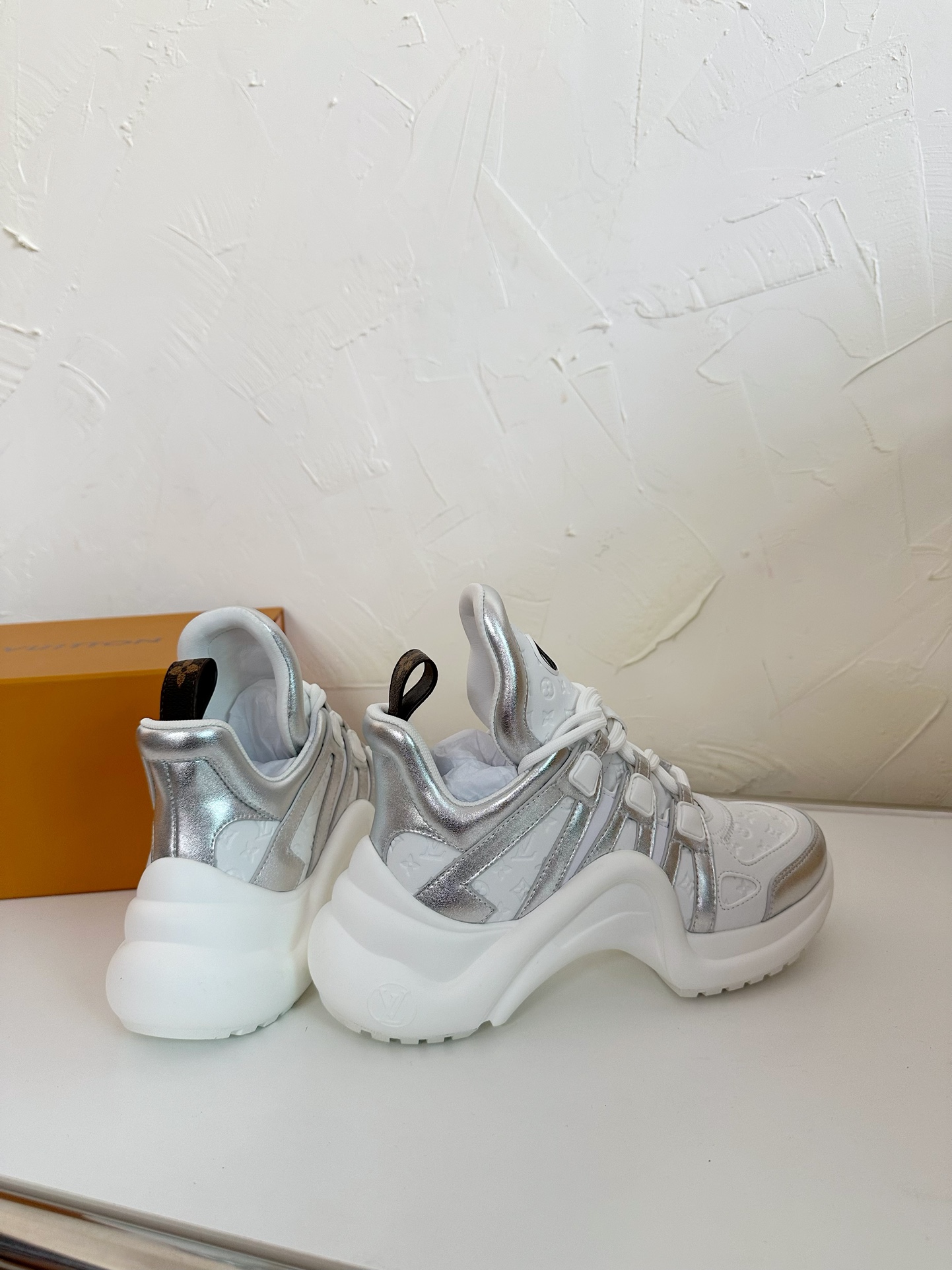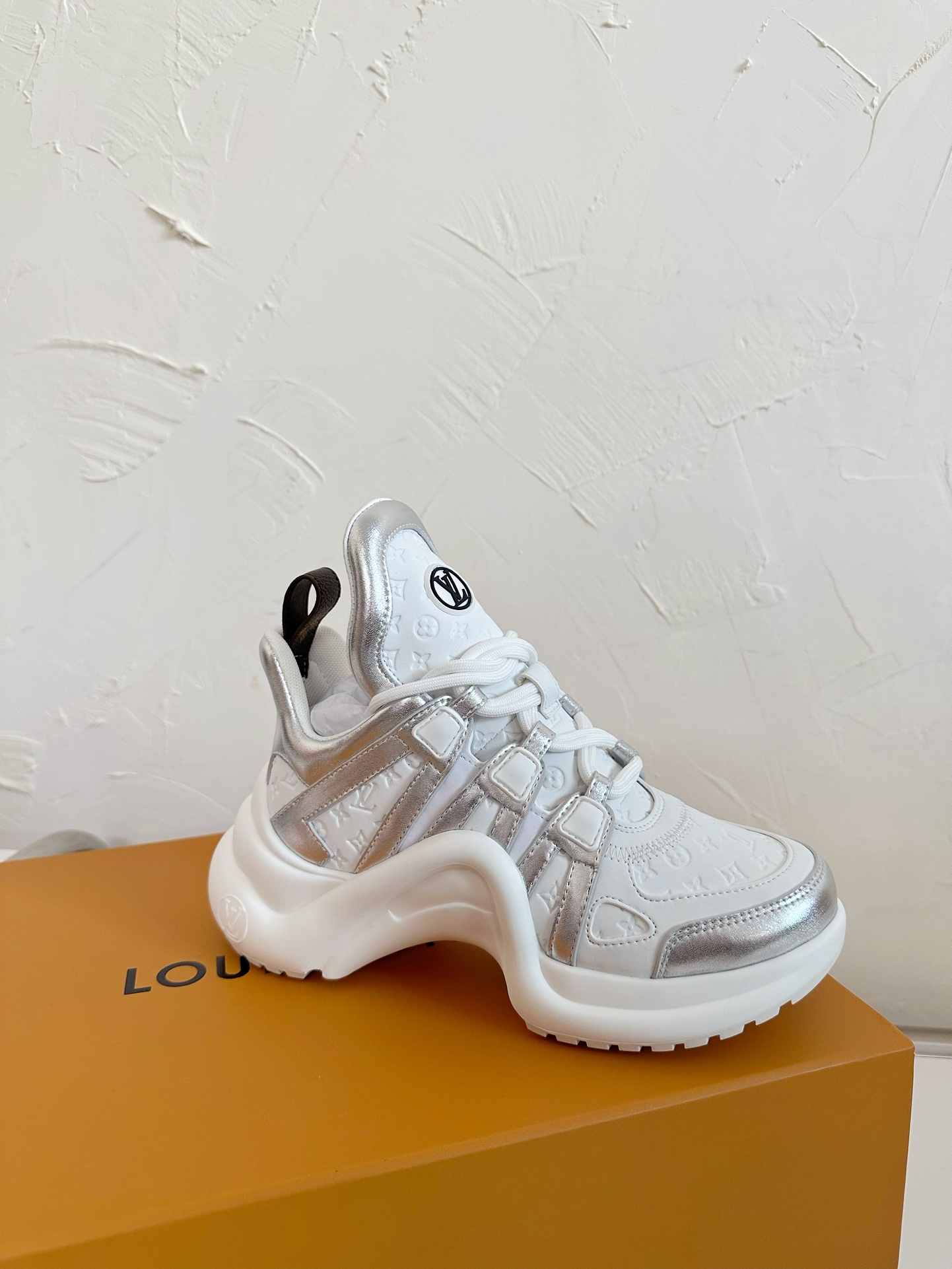 这款鞋子是AAAAA 1:1 质量 (非常棒). 使用了和原版一模一样的材料. 商标部分也保持了和路易威登/Louis Vuitton一样. 图片拍摄是实物鞋子拍摄, 您所收到的实物保证和我们图片一模一样.