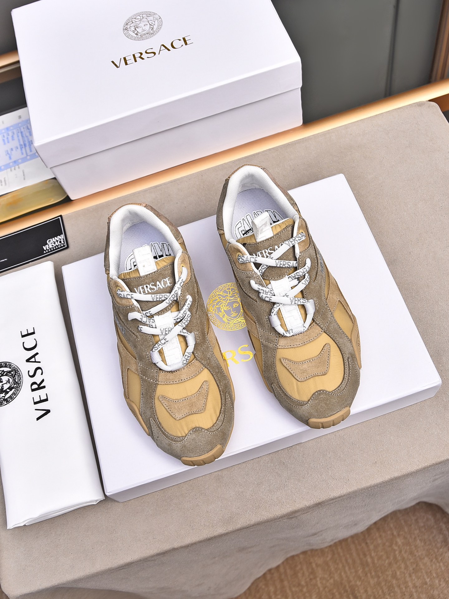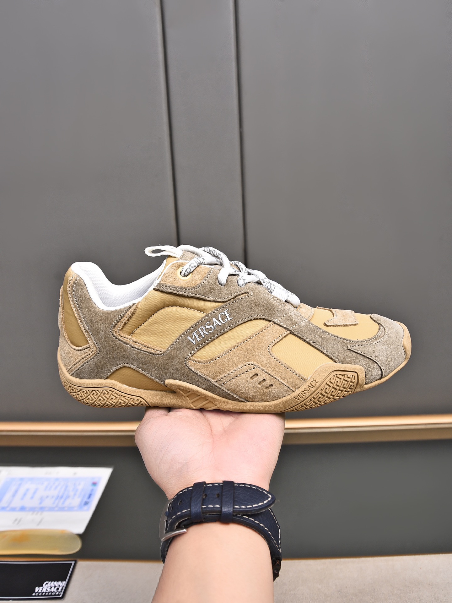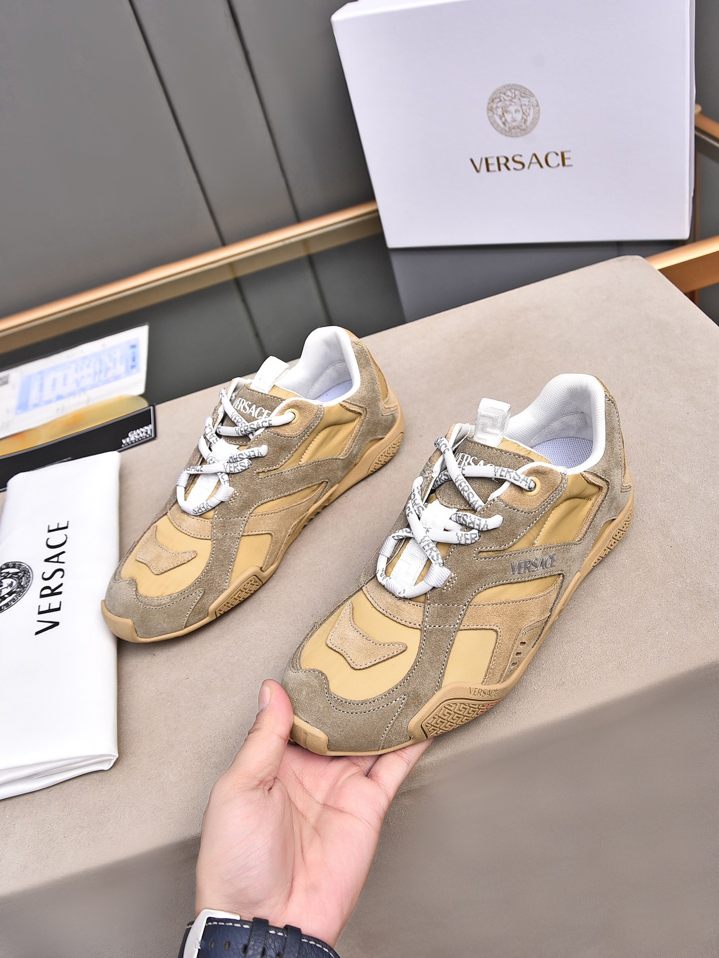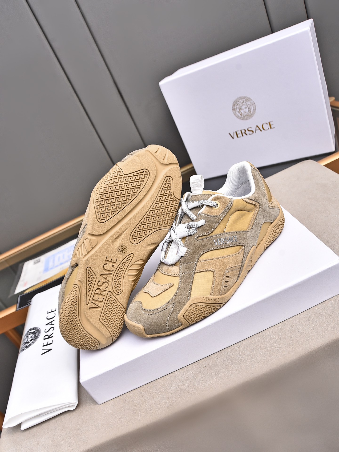 这款鞋子是AAAAA 1:1 质量 (非常棒). 使用了和原版一模一样的材料. 商标部分也保持了和范思哲/Versace一样. 图片拍摄是实物鞋子拍摄, 您所收到的实物保证和我们图片一模一样.