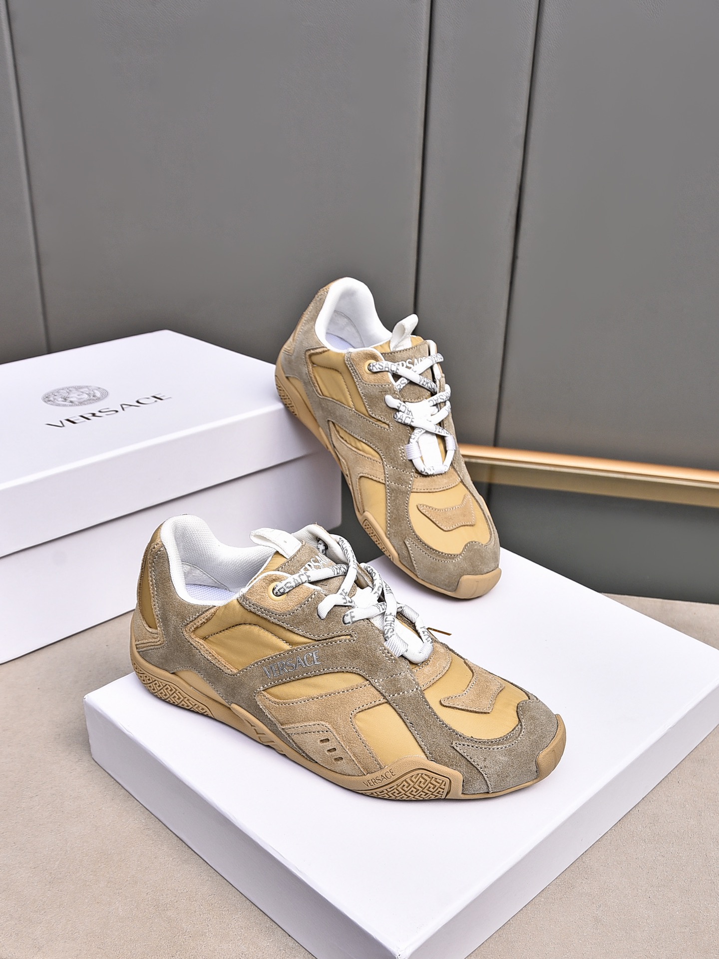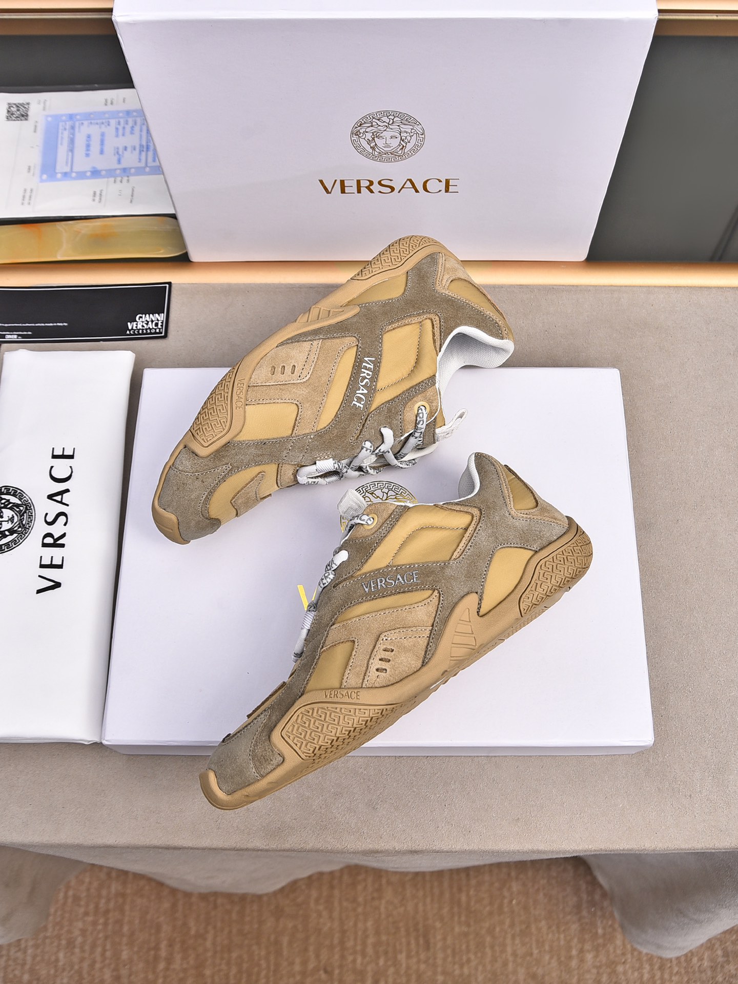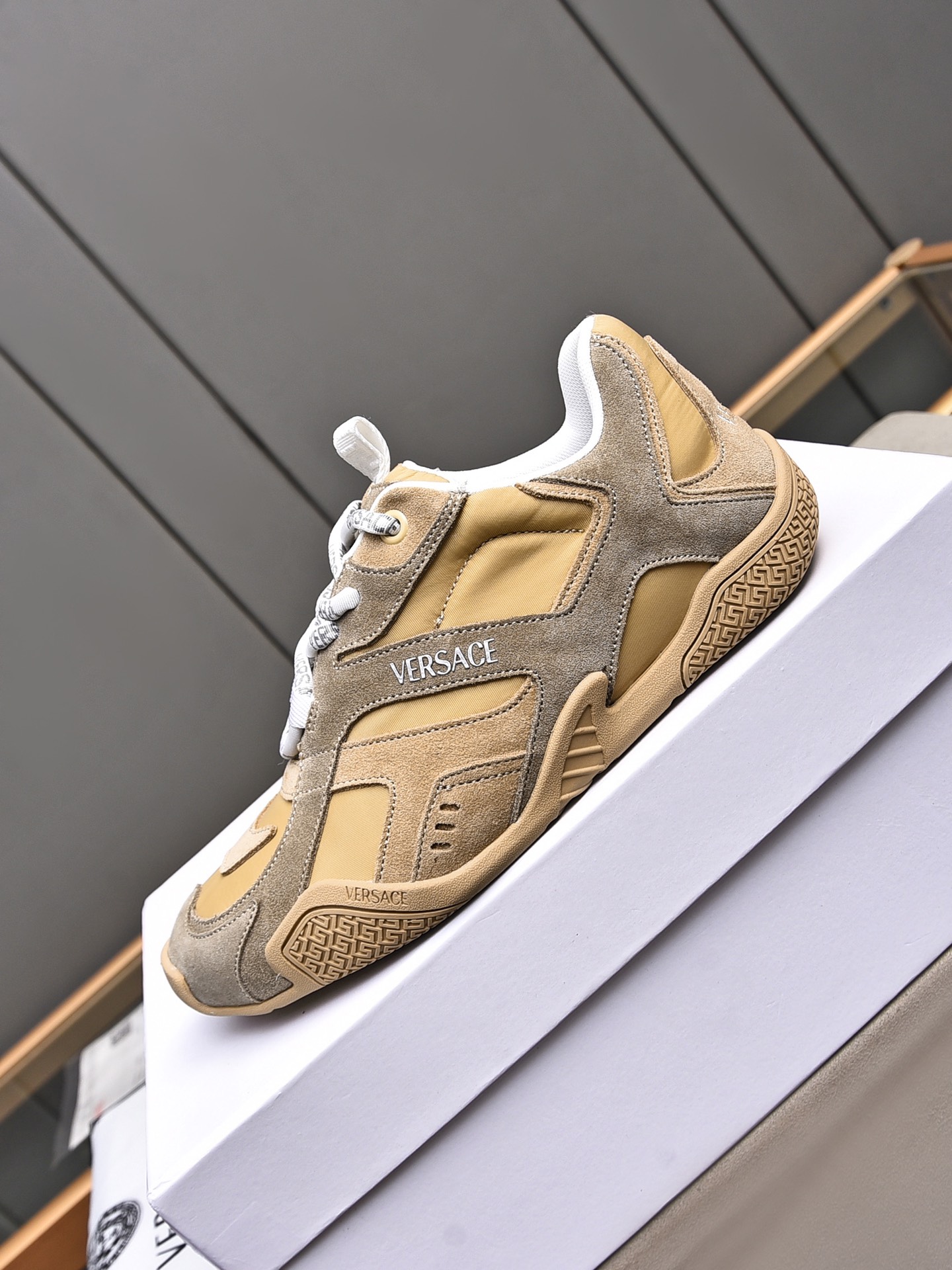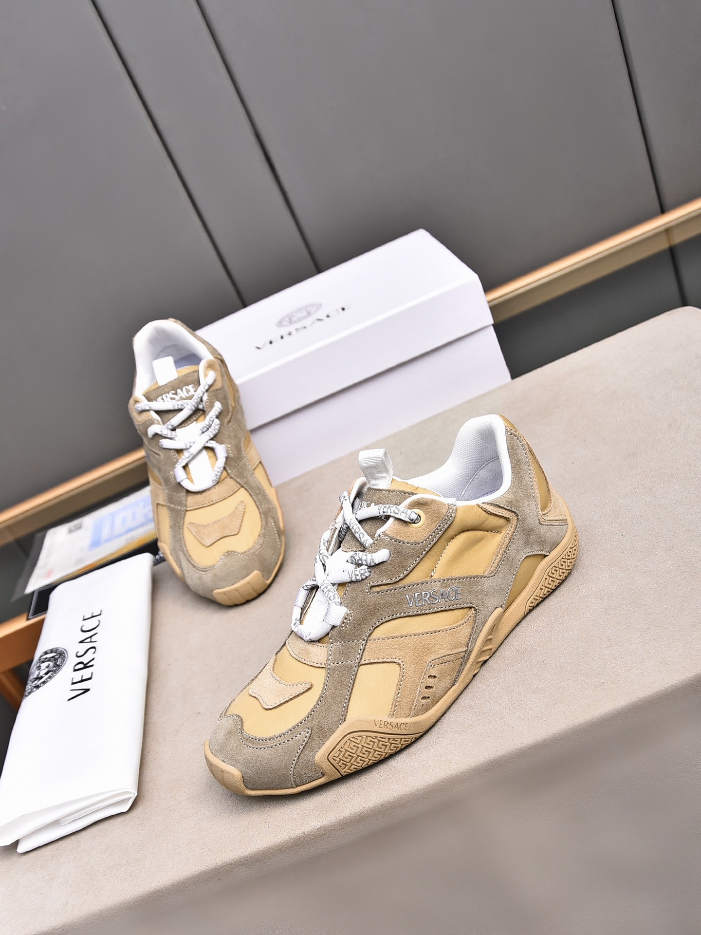 这款鞋子是AAAAA 1:1 质量 (非常棒). 使用了和原版一模一样的材料. 商标部分也保持了和范思哲/Versace一样. 图片拍摄是实物鞋子拍摄, 您所收到的实物保证和我们图片一模一样.