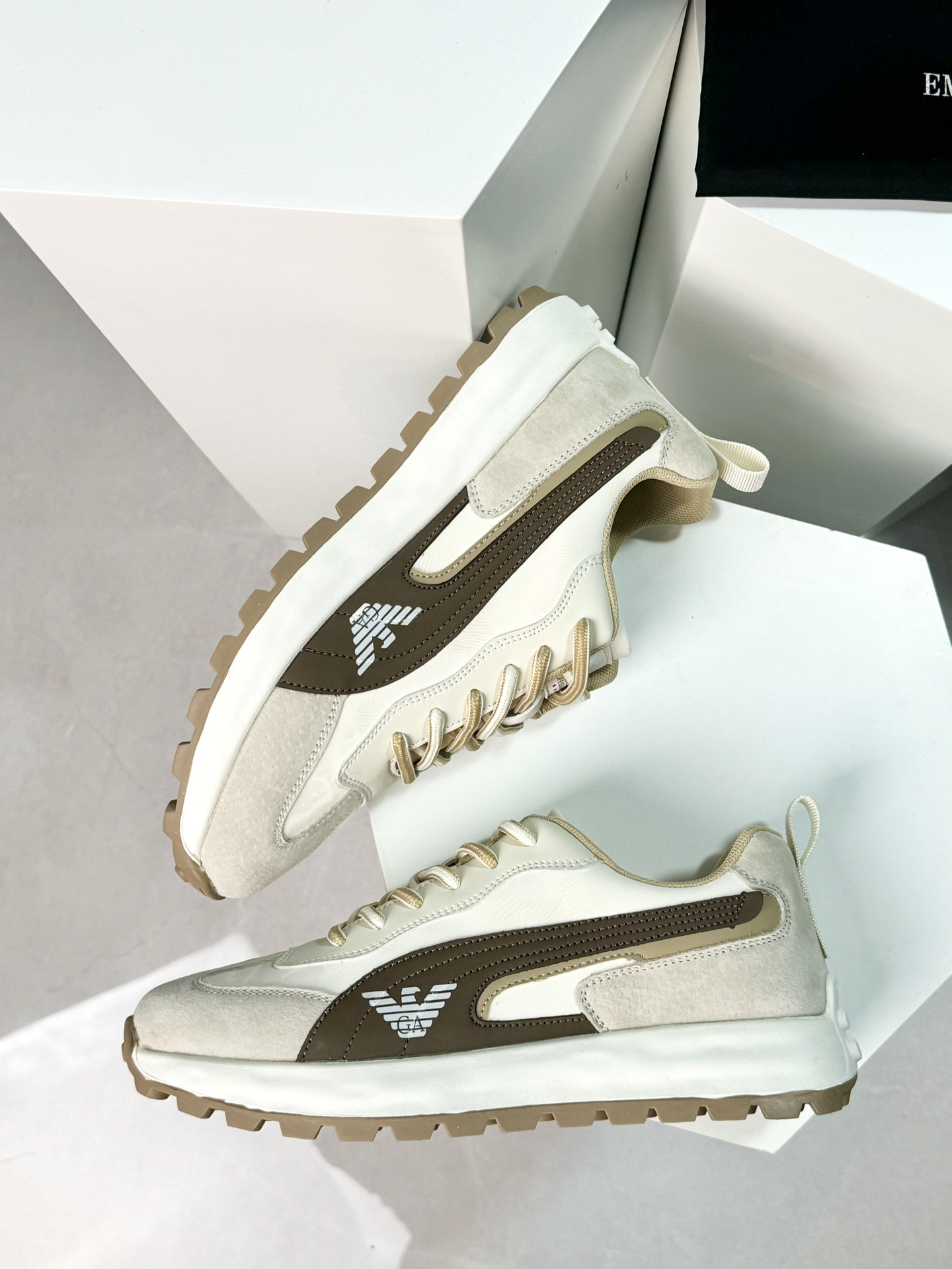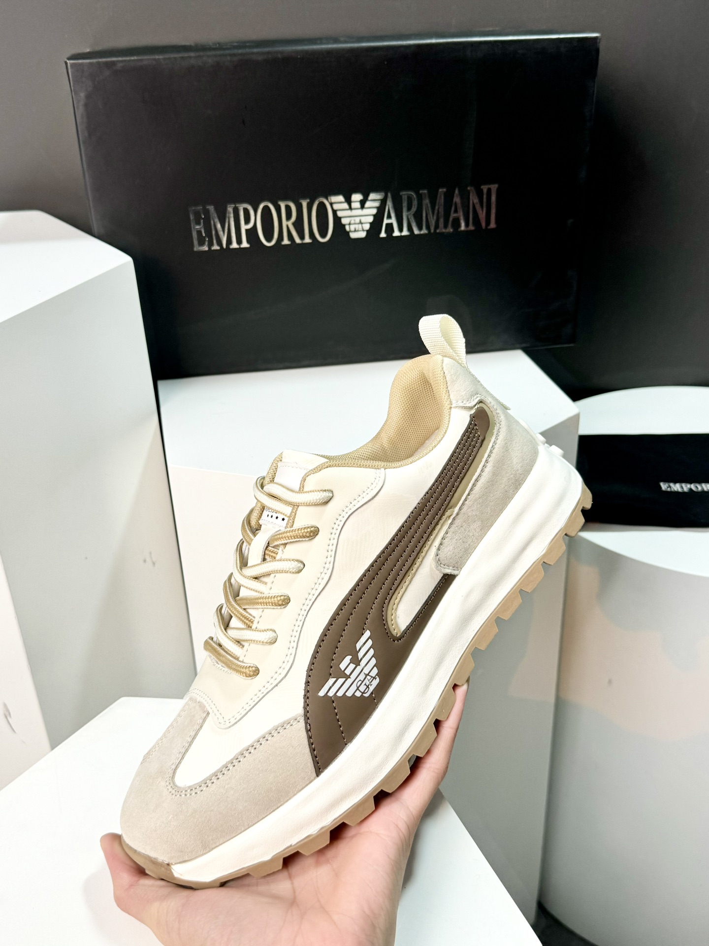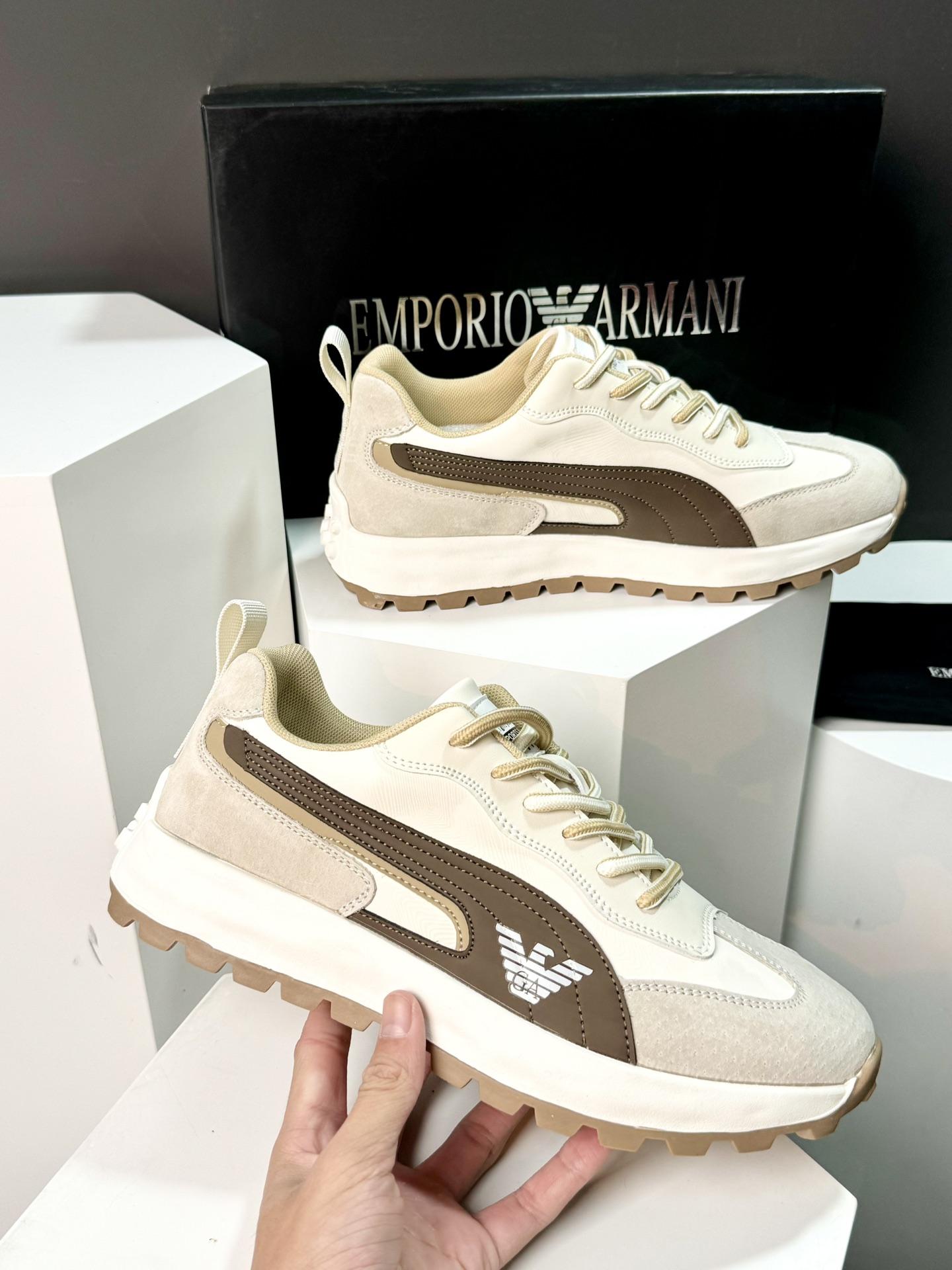 这款鞋子是AAAAA 1:1 质量 (非常棒). 使用了和原版一模一样的材料. 商标部分也保持了和阿玛尼/Armani一样. 图片拍摄是实物鞋子拍摄, 您所收到的实物保证和我们图片一模一样.