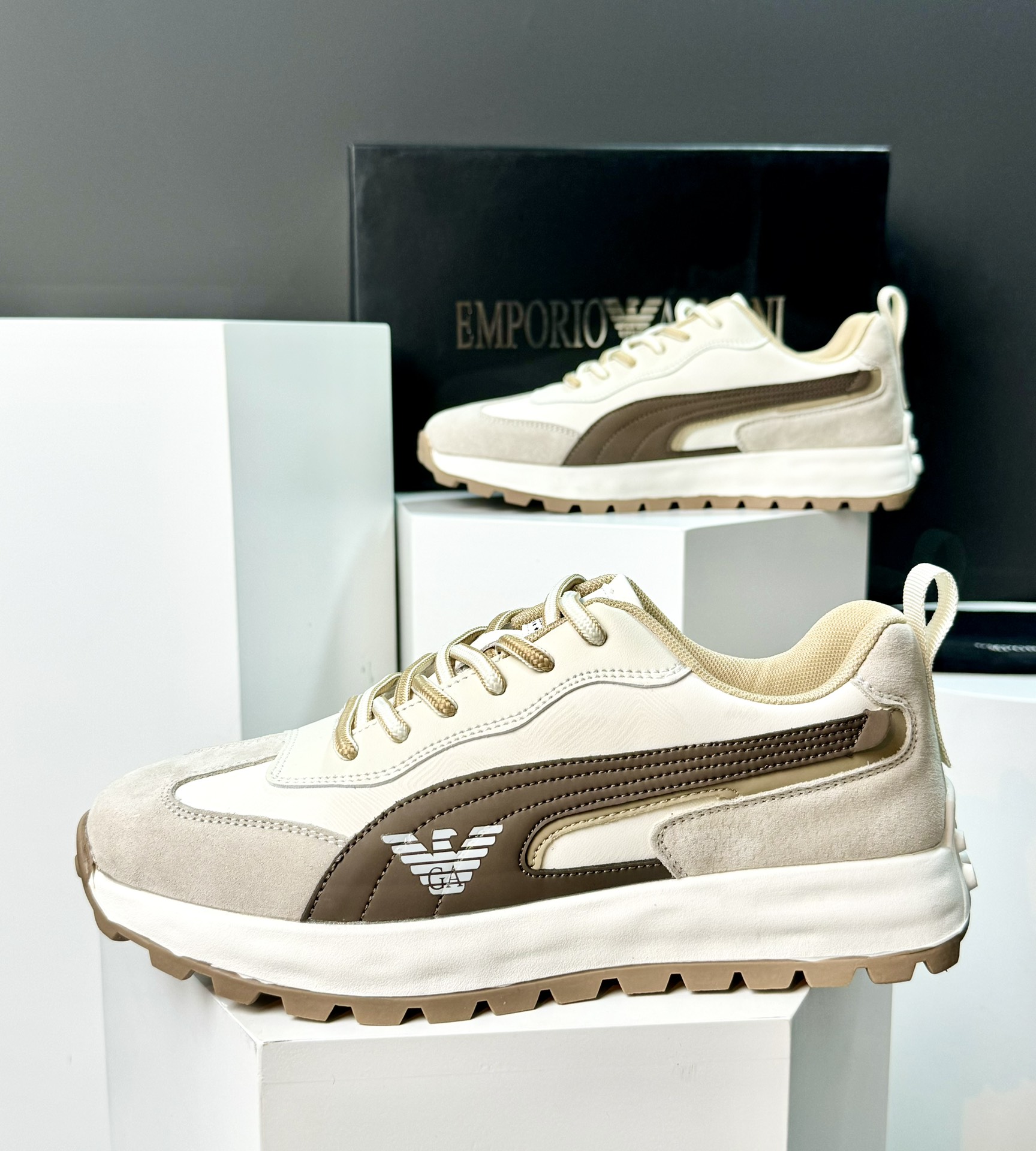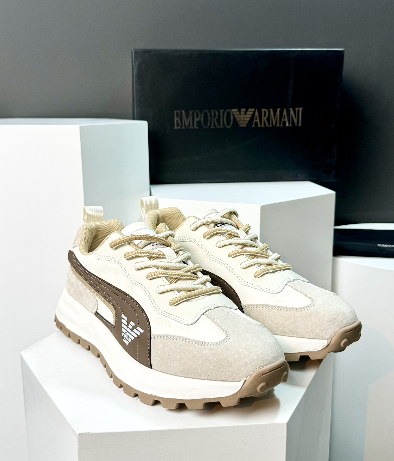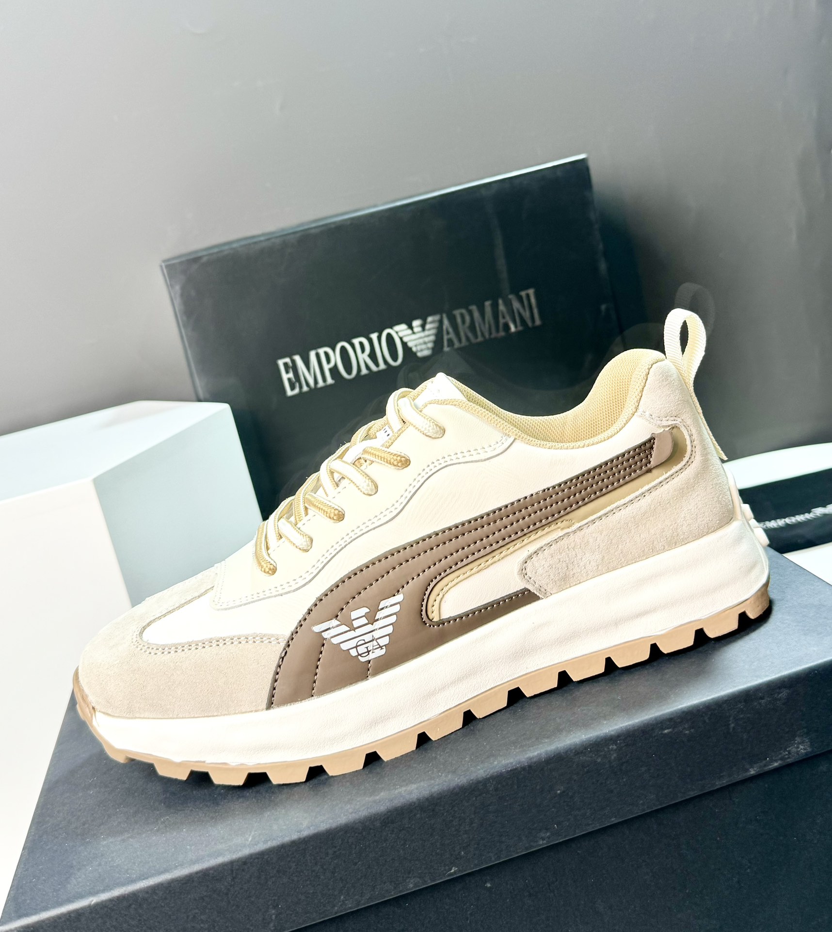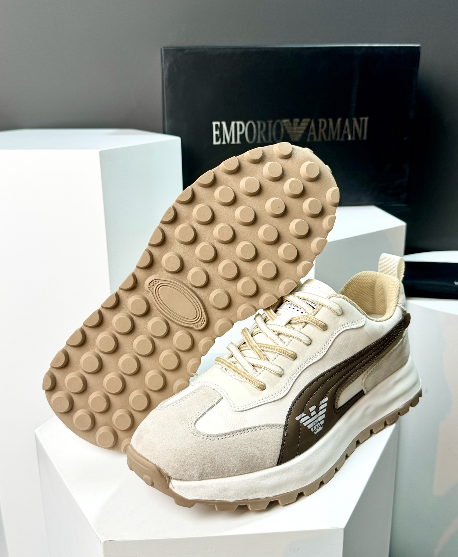 这款鞋子是AAAAA 1:1 质量 (非常棒). 使用了和原版一模一样的材料. 商标部分也保持了和阿玛尼/Armani一样. 图片拍摄是实物鞋子拍摄, 您所收到的实物保证和我们图片一模一样.