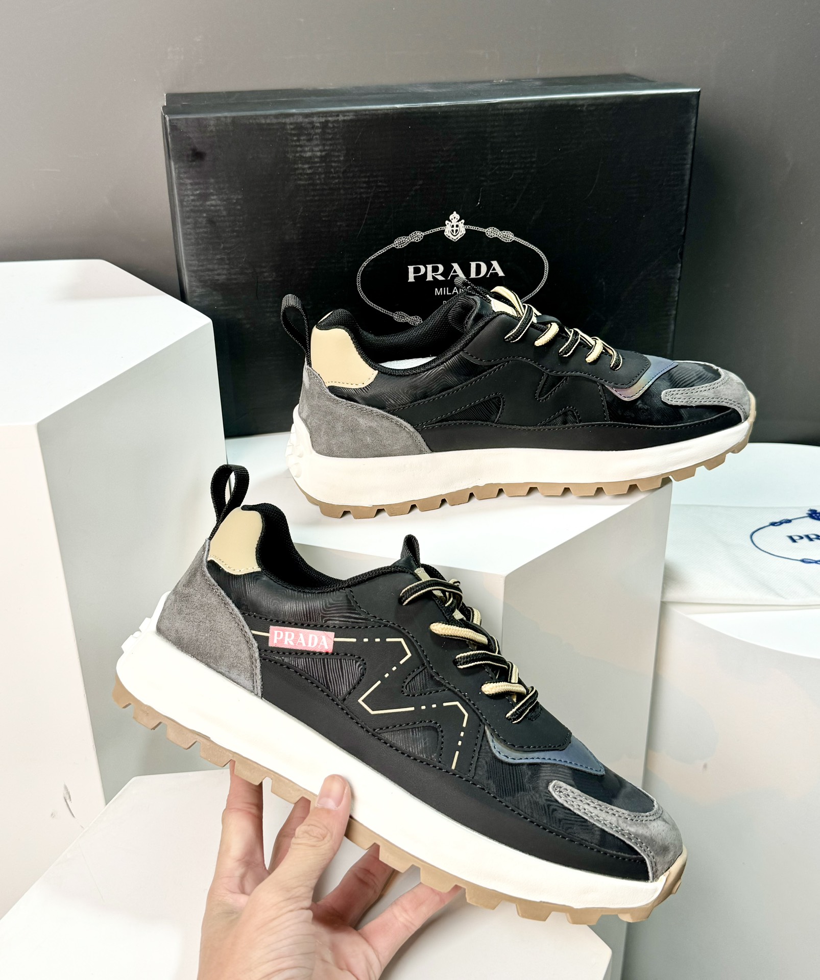 这款鞋子是AAAAA 1:1 质量 (非常棒). 使用了和原版一模一样的材料. 商标部分也保持了和普拉达/Prada一样. 图片拍摄是实物鞋子拍摄, 您所收到的实物保证和我们图片一模一样.