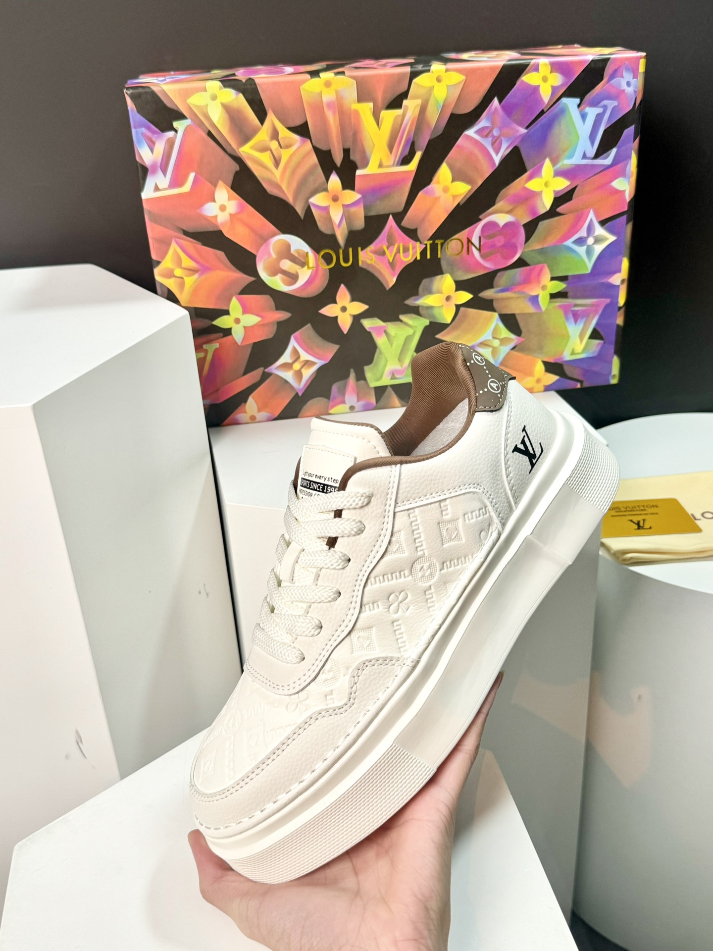 这款鞋子是AAAAA 1:1 质量 (非常棒). 使用了和原版一模一样的材料. 商标部分也保持了和路易威登/Louis Vuitton一样. 图片拍摄是实物鞋子拍摄, 您所收到的实物保证和我们图片一模一样.