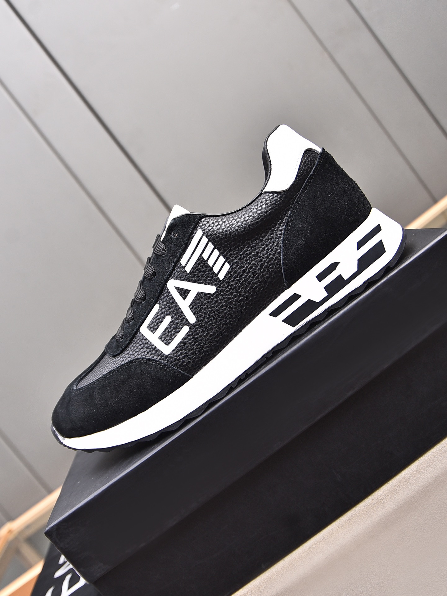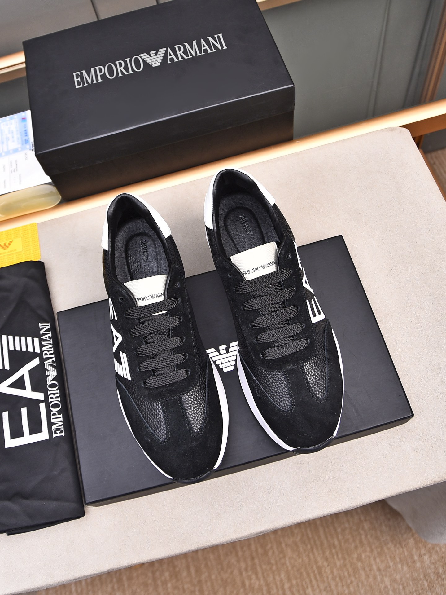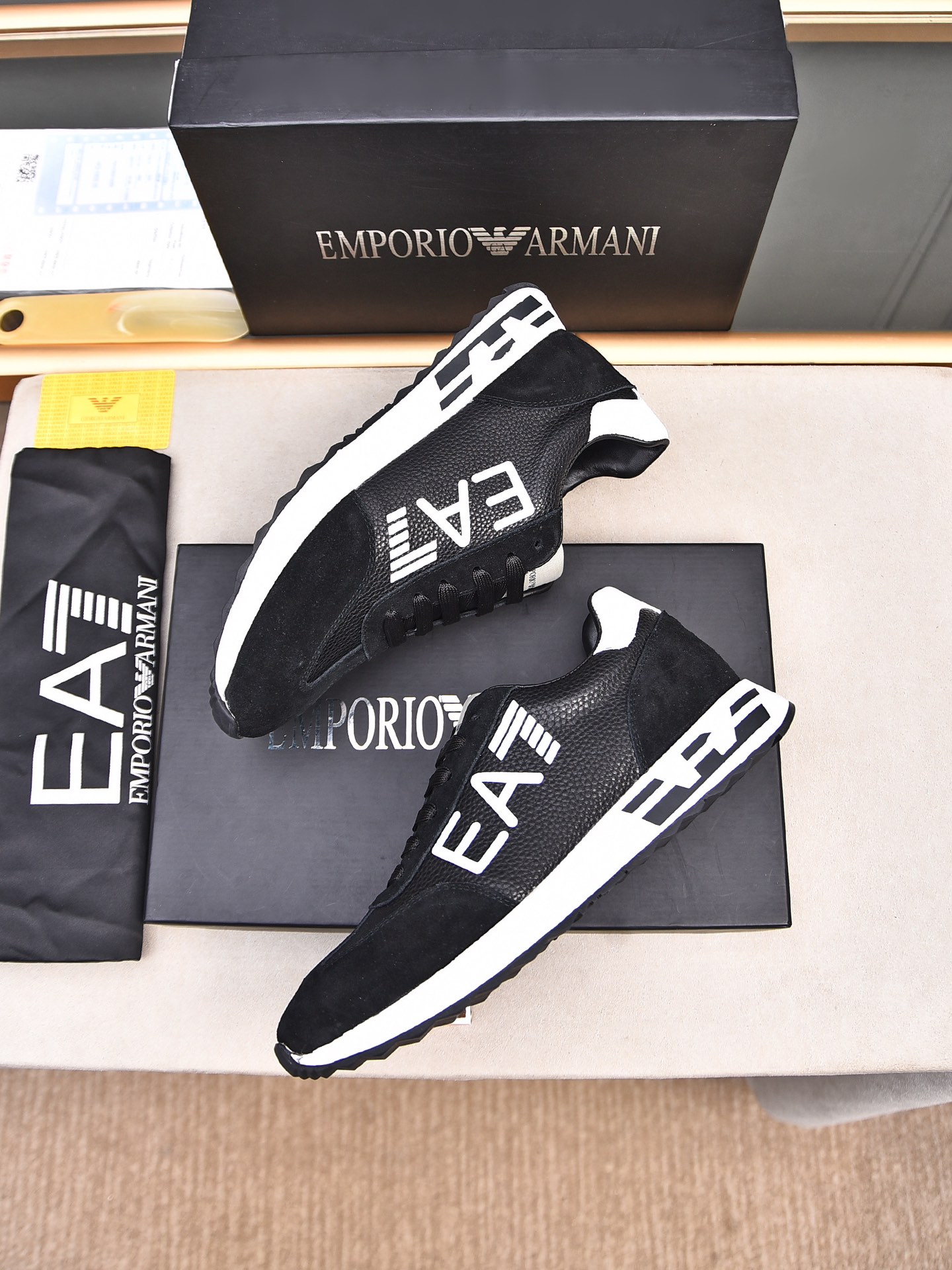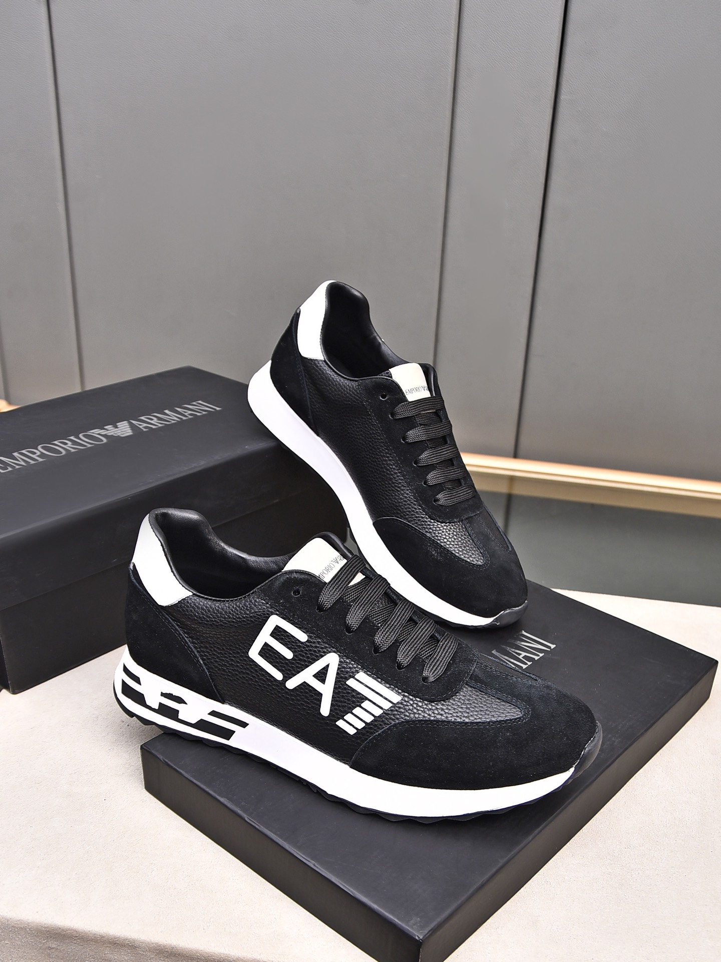 这款鞋子是AAAAA 1:1 质量 (非常棒). 使用了和原版一模一样的材料. 商标部分也保持了和阿玛尼/Armani一样. 图片拍摄是实物鞋子拍摄, 您所收到的实物保证和我们图片一模一样.