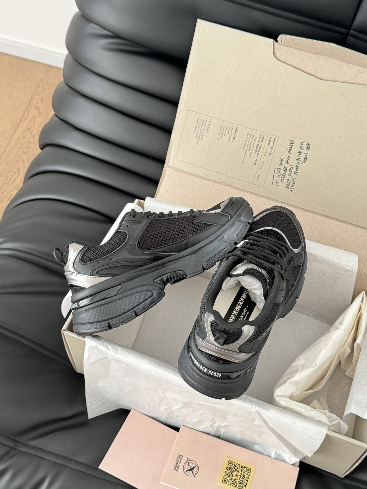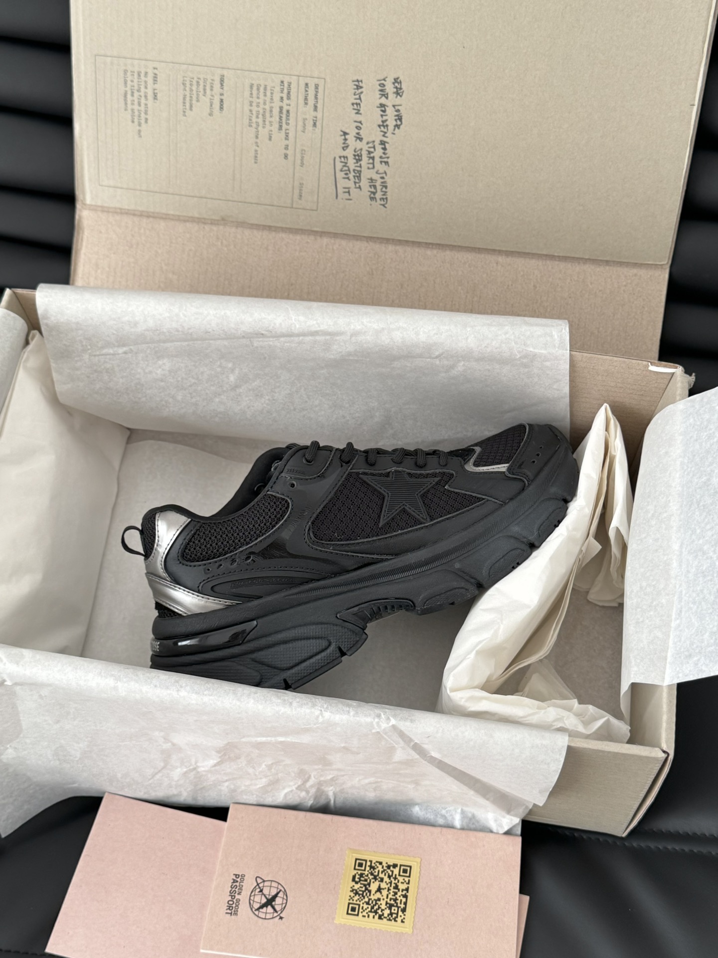这款鞋子是AAAAA 1:1 质量 (非常棒). 使用了和原版一模一样的材料. 商标部分也保持了和Golden Goose一样. 图片拍摄是实物鞋子拍摄, 您所收到的实物保证和我们图片一模一样.