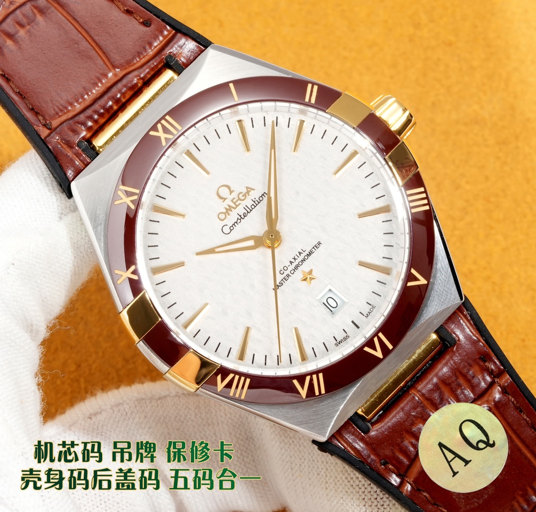 这款手表是AAAAA 1:1 质量 (非常棒). 使用了和原版一模一样的材料. 商标部分也保持了和欧米茄/Omega一样. 图片拍摄是实物手表拍摄, 您所收到的实物保证和我们图片一模一样.