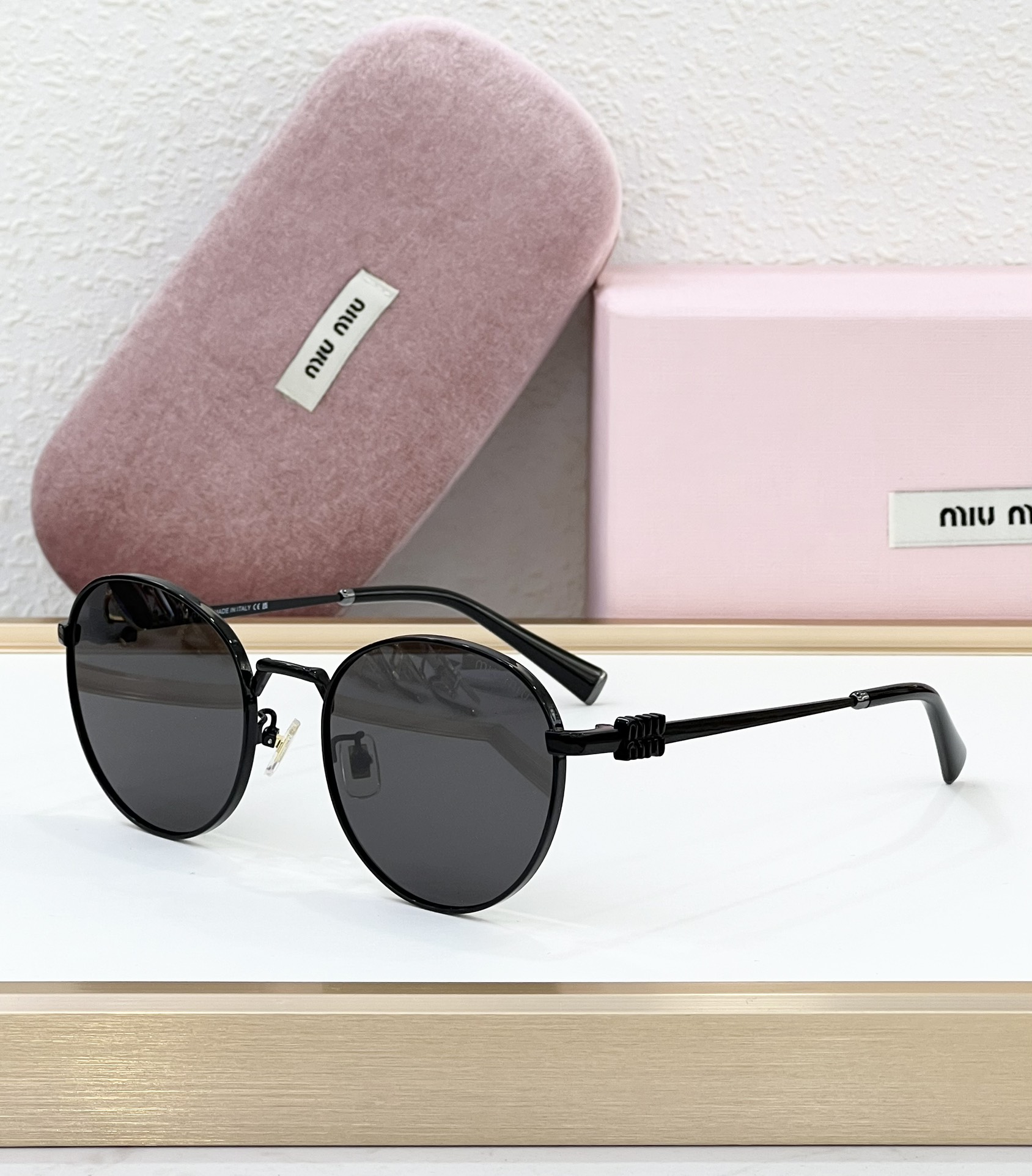 这款太阳眼镜是AAAAA 1:1 质量 (非常棒). 使用了和原版一模一样的材料. 商标部分也保持了和缪缪/Miu Miu一样. 图片拍摄是实物太阳眼镜拍摄, 您所收到的实物保证和我们图片一模一样.