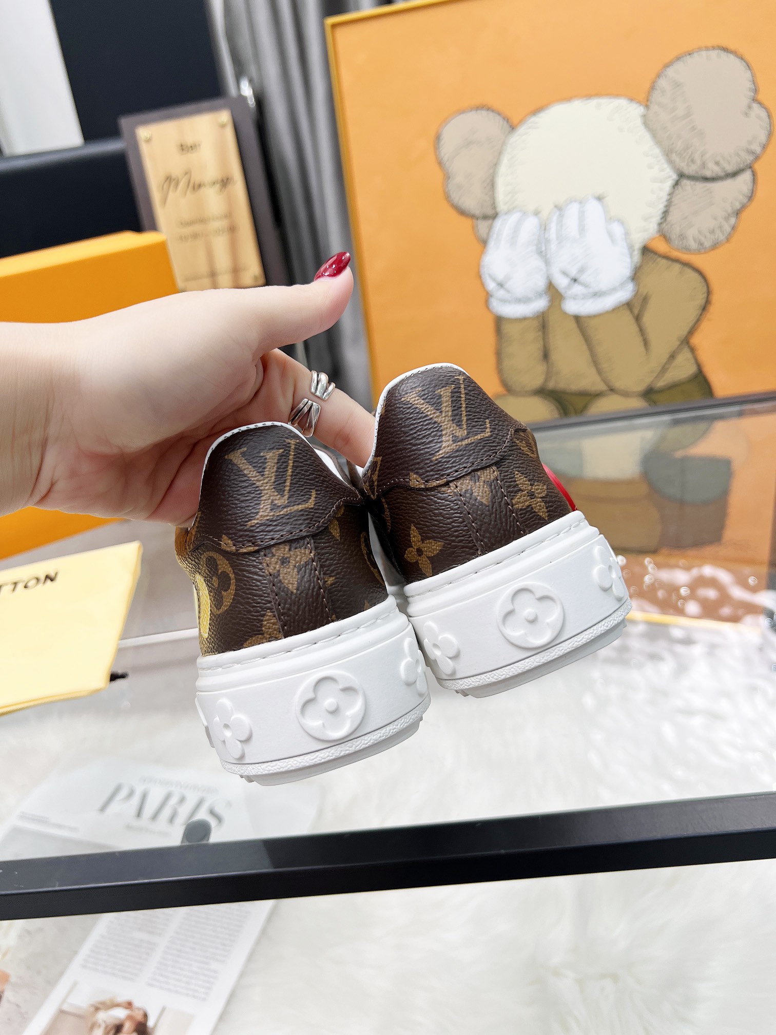 这款鞋子是AAAAA 1:1 质量 (非常棒). 使用了和原版一模一样的材料. 商标部分也保持了和路易威登/Louis Vuitton一样. 图片拍摄是实物鞋子拍摄, 您所收到的实物保证和我们图片一模一样.