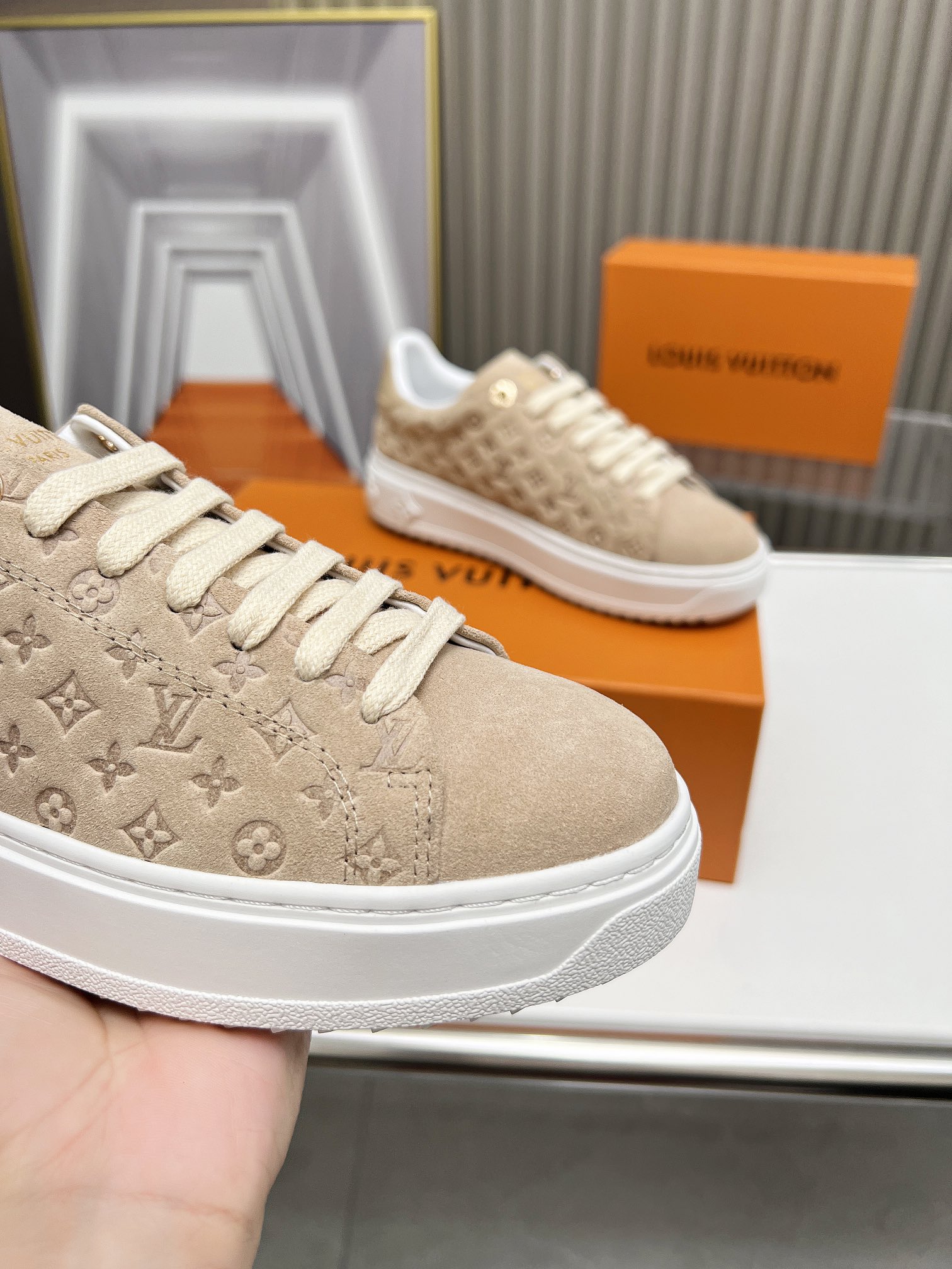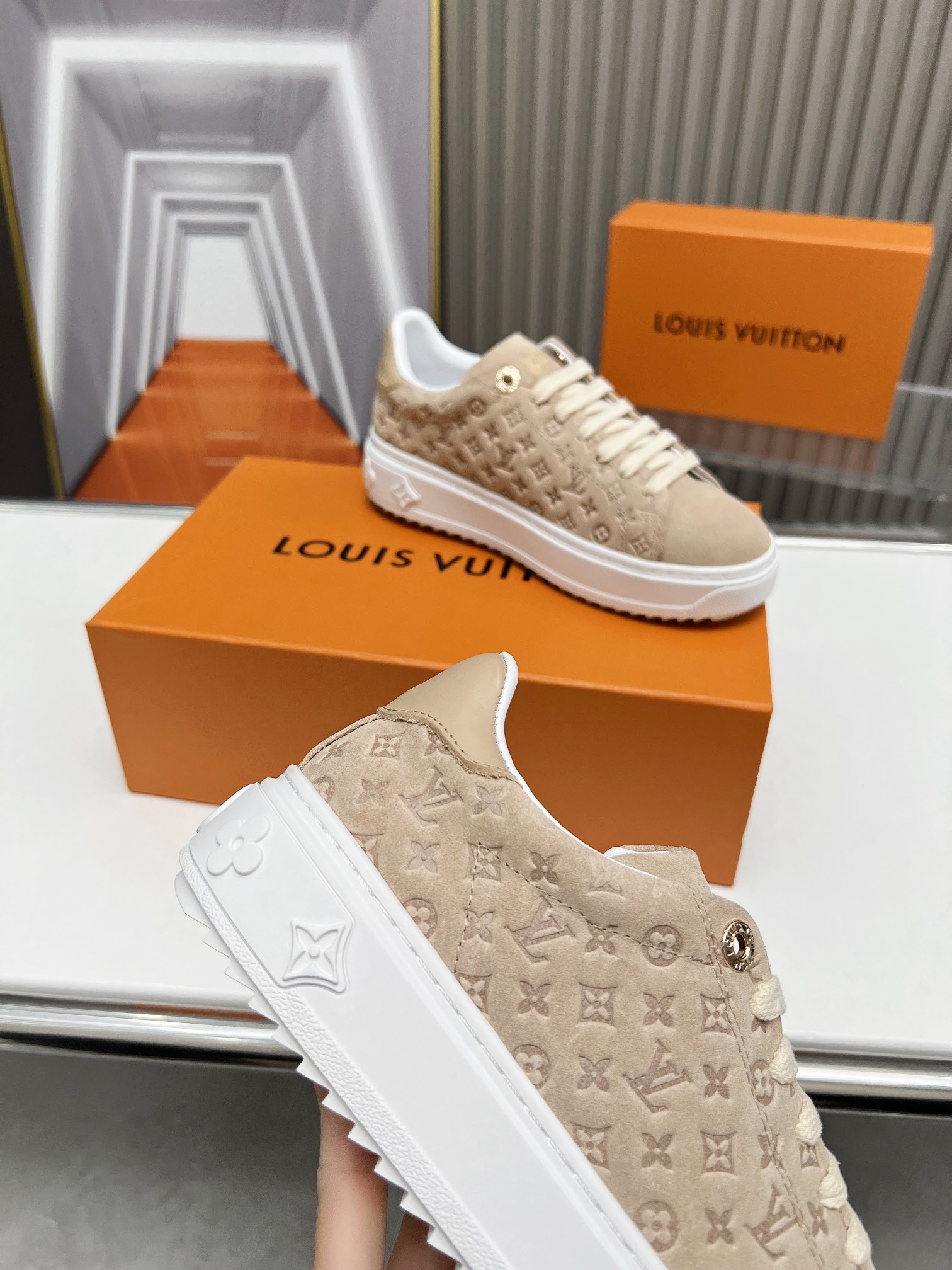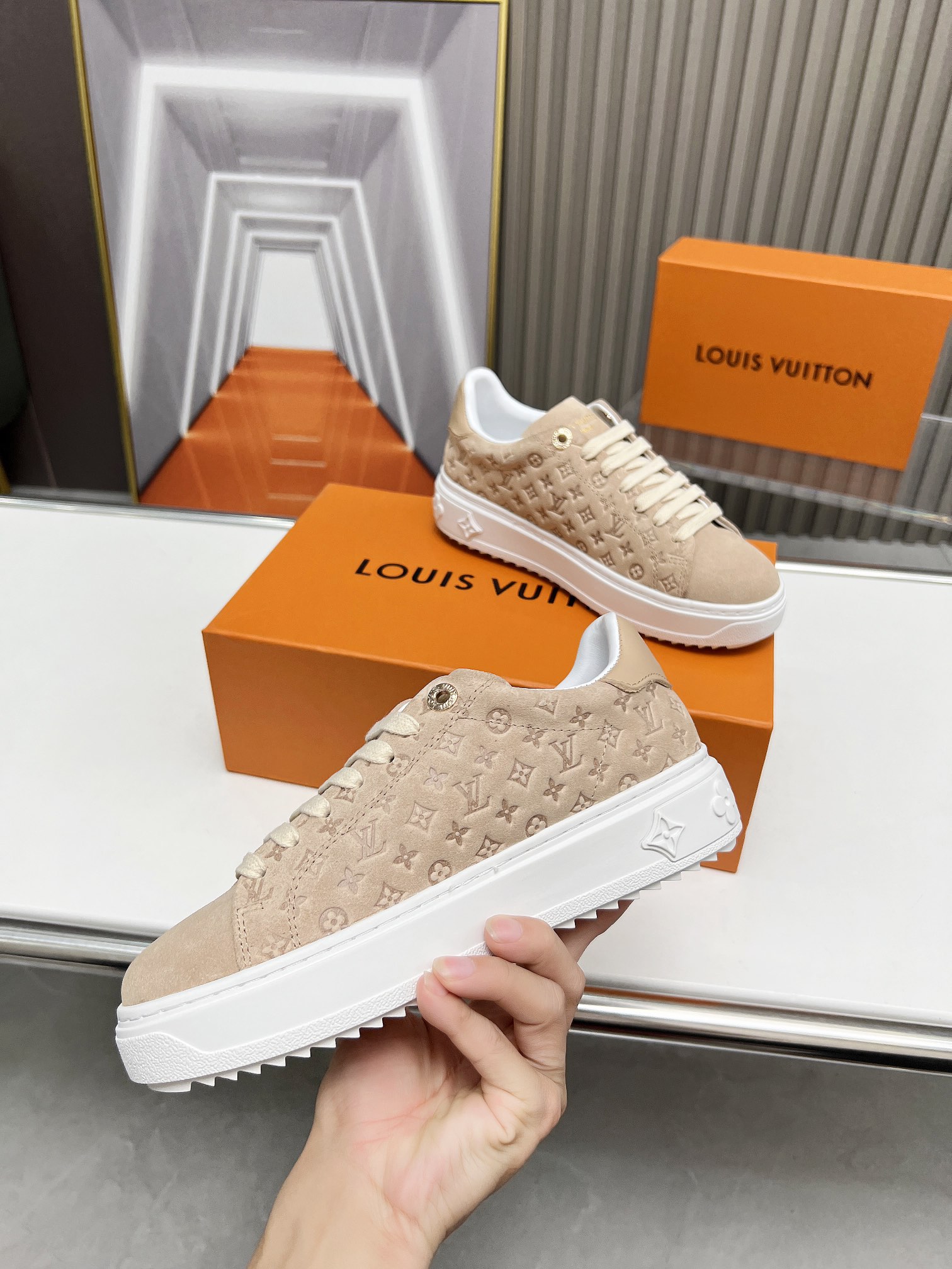 这款鞋子是AAAAA 1:1 质量 (非常棒). 使用了和原版一模一样的材料. 商标部分也保持了和路易威登/Louis Vuitton一样. 图片拍摄是实物鞋子拍摄, 您所收到的实物保证和我们图片一模一样.