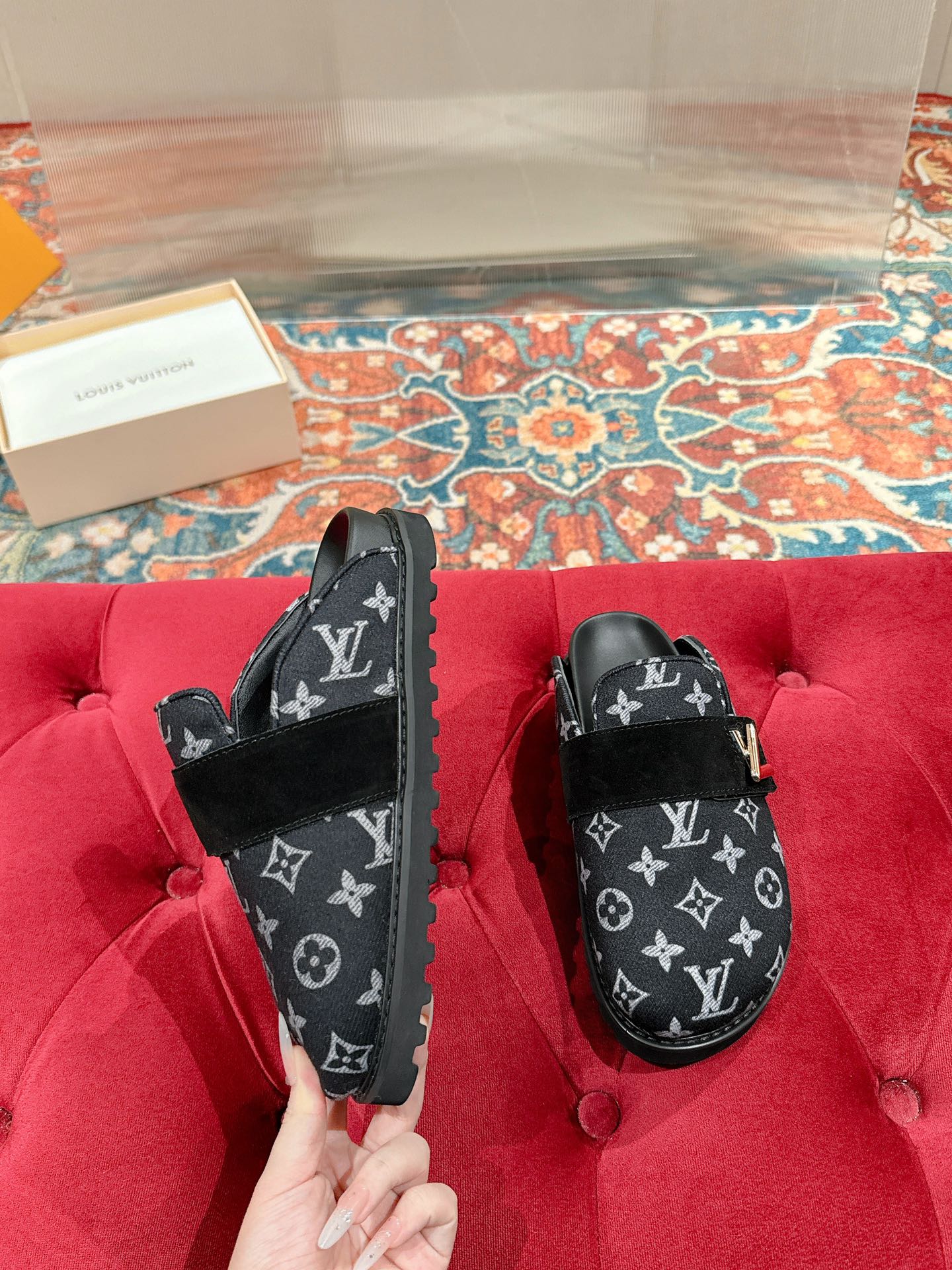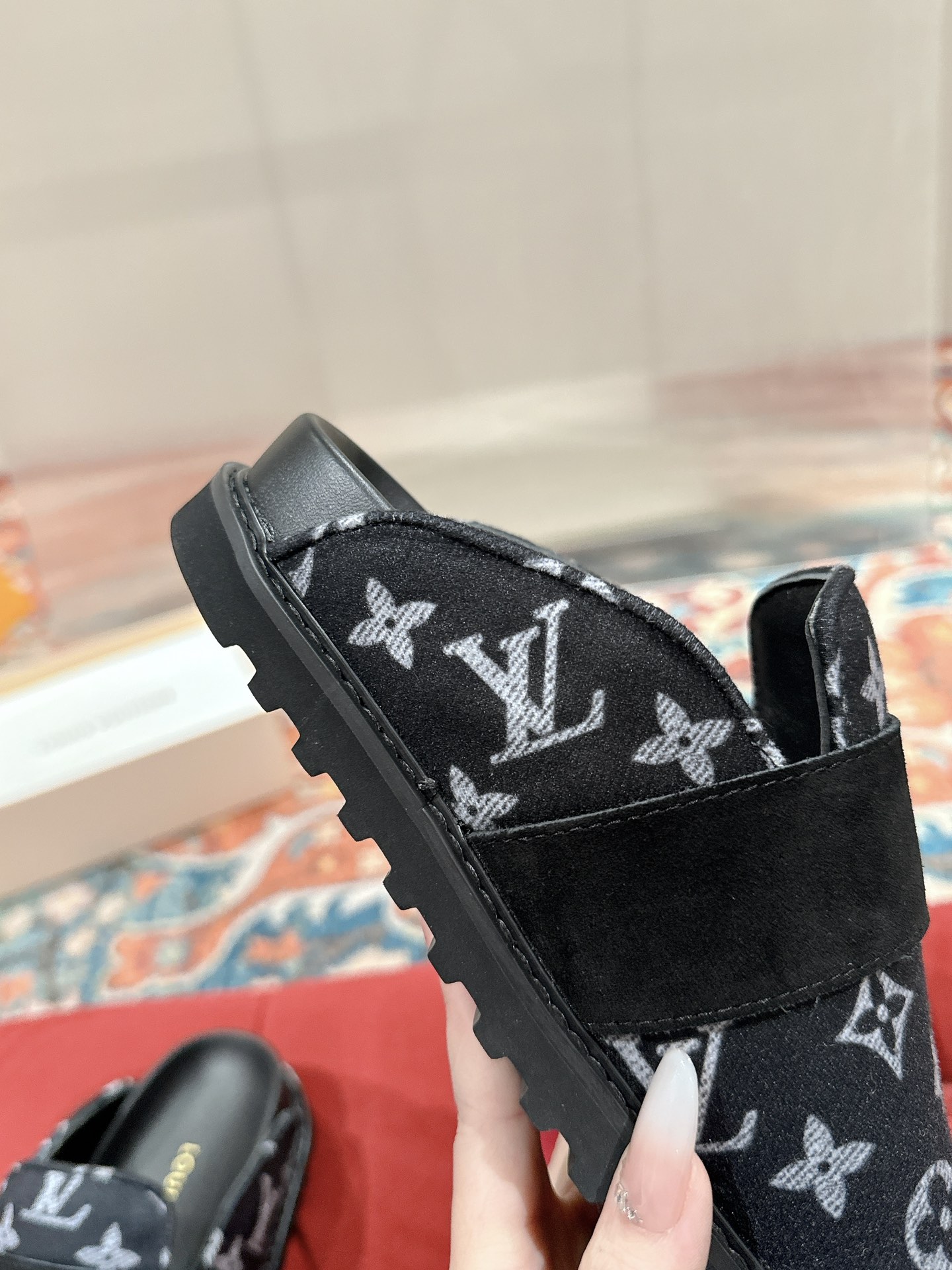 这款鞋子是AAAAA 1:1 质量 (非常棒). 使用了和原版一模一样的材料. 商标部分也保持了和路易威登/Louis Vuitton一样. 图片拍摄是实物鞋子拍摄, 您所收到的实物保证和我们图片一模一样.