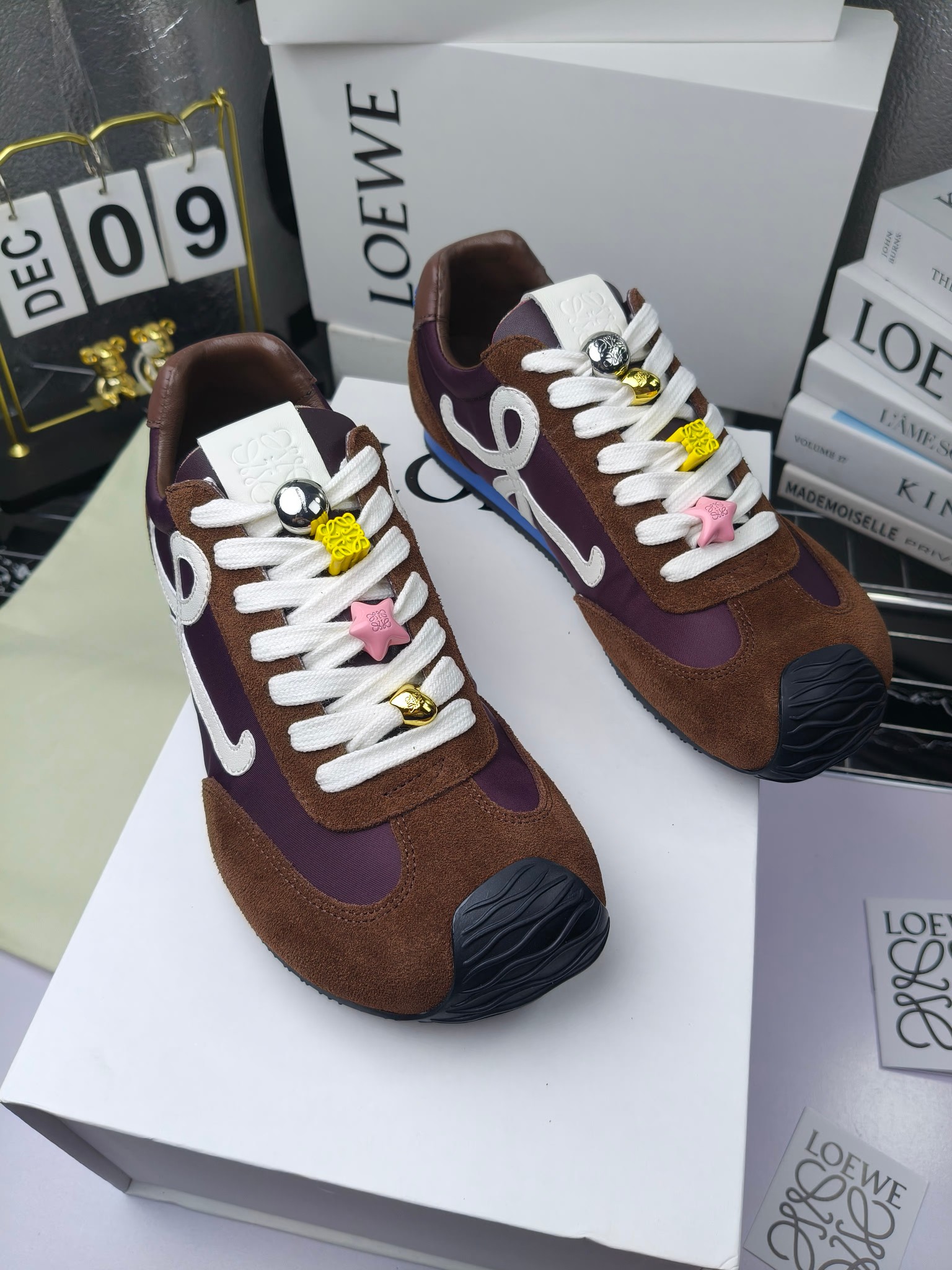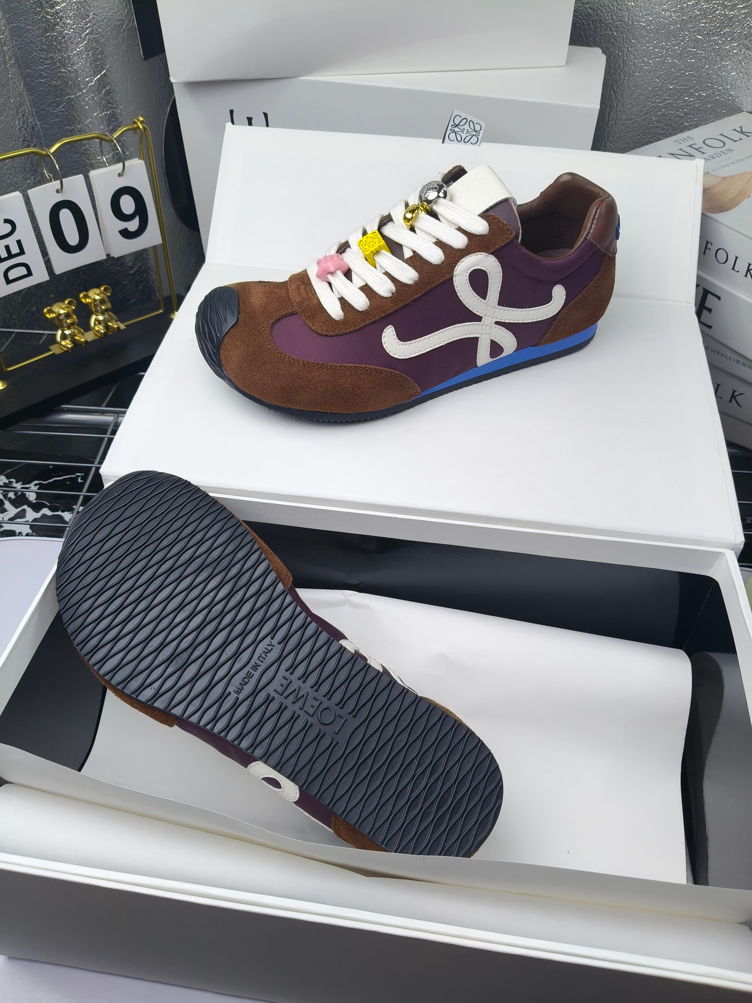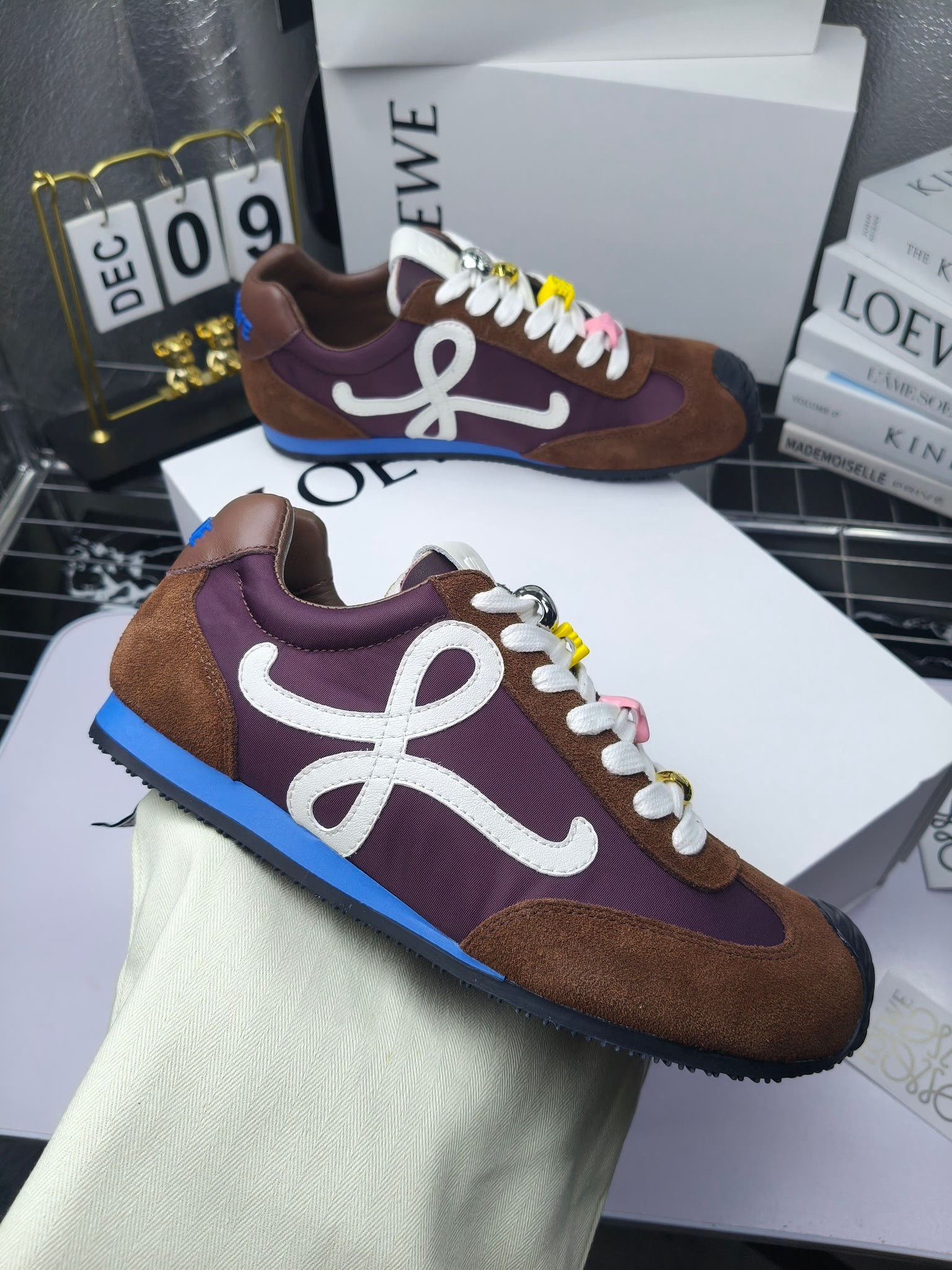 这款鞋子是AAAAA 1:1 质量 (非常棒). 使用了和原版一模一样的材料. 商标部分也保持了和罗意威/Loewe一样. 图片拍摄是实物鞋子拍摄, 您所收到的实物保证和我们图片一模一样.