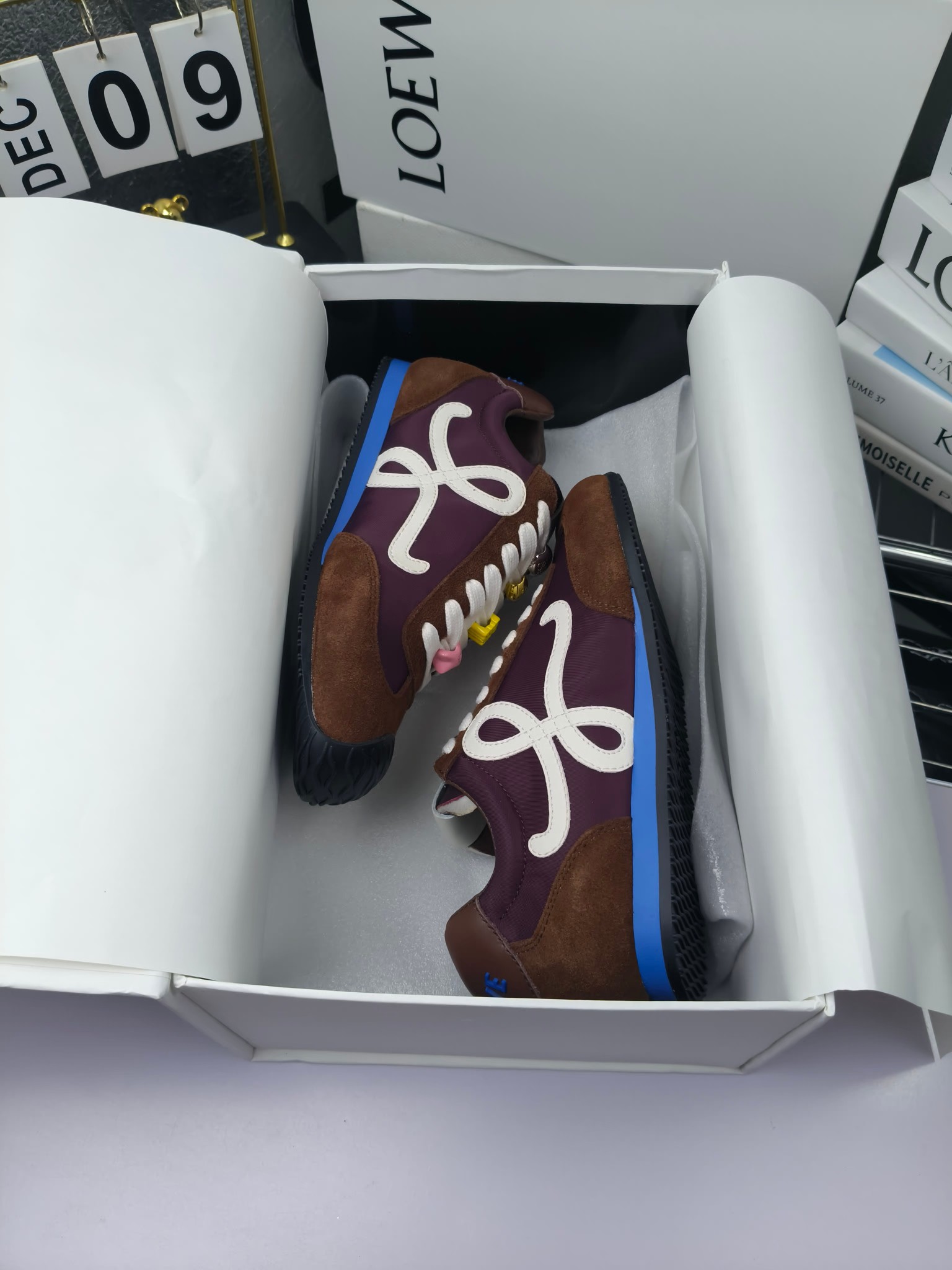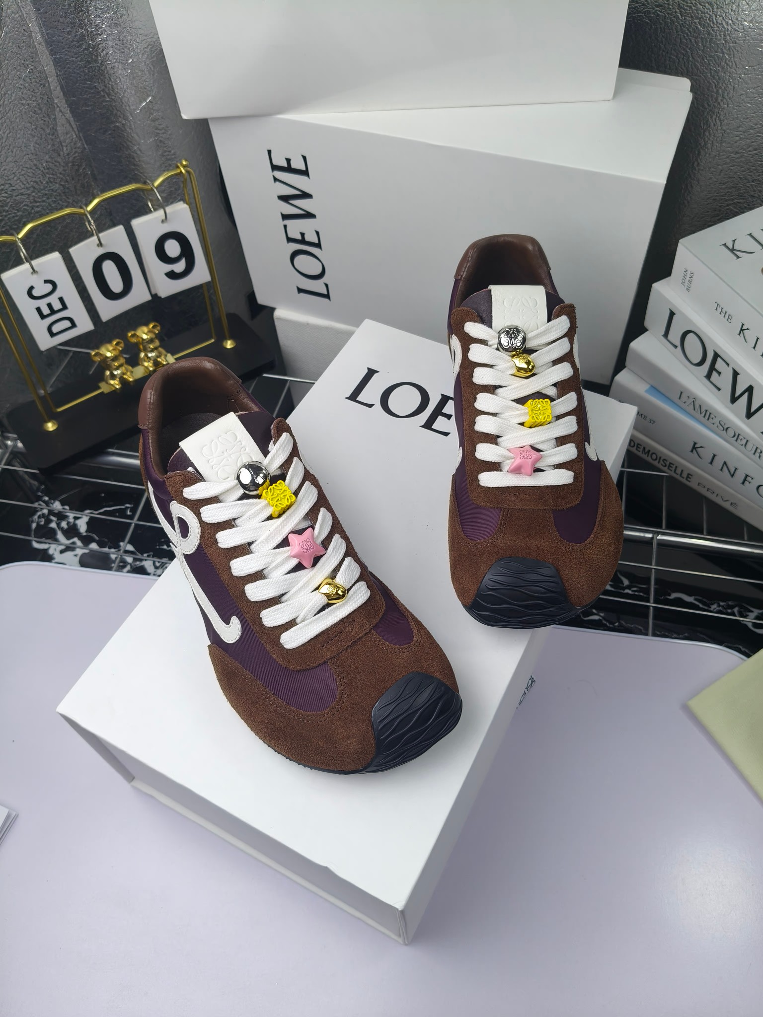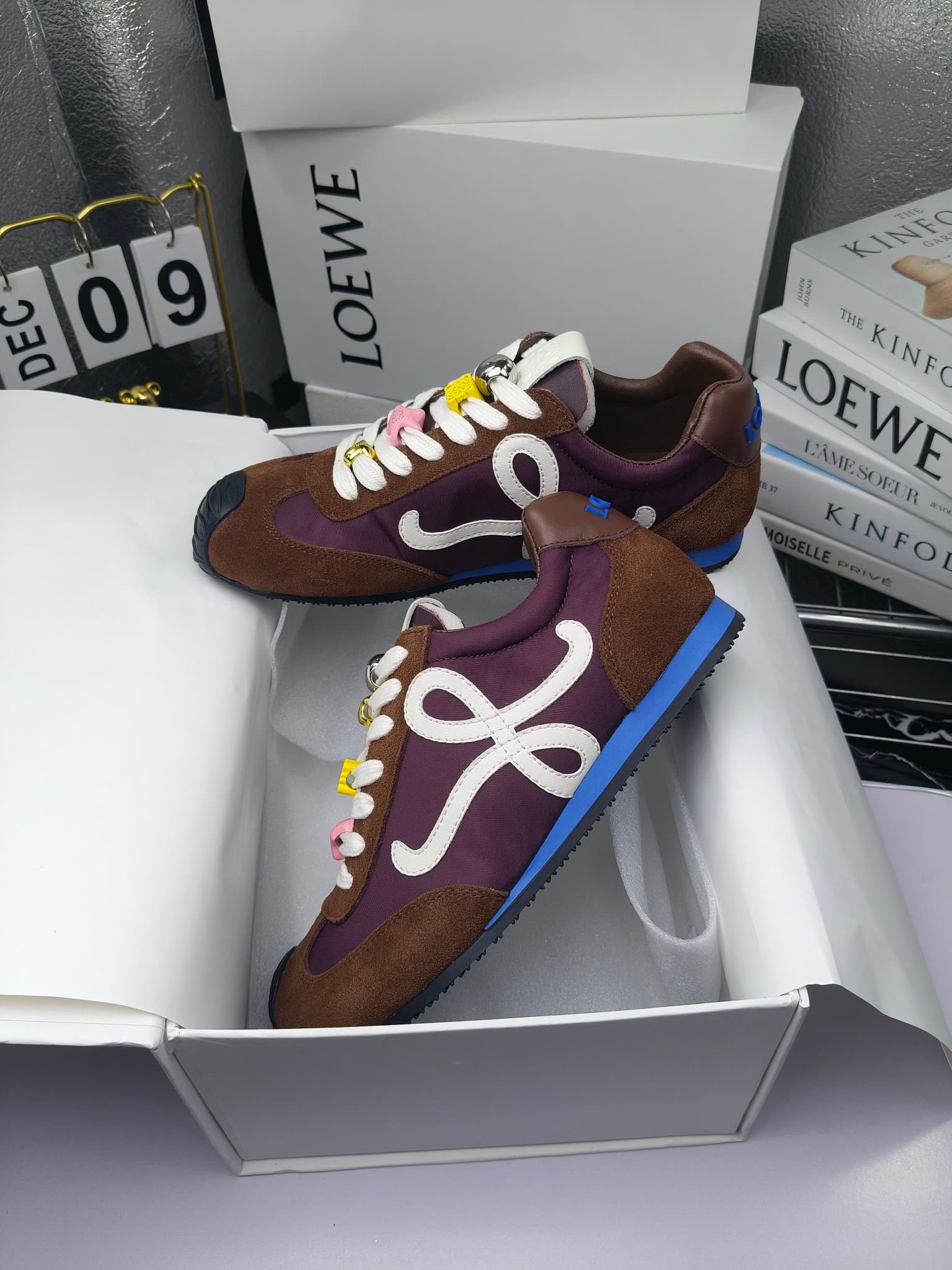 这款鞋子是AAAAA 1:1 质量 (非常棒). 使用了和原版一模一样的材料. 商标部分也保持了和罗意威/Loewe一样. 图片拍摄是实物鞋子拍摄, 您所收到的实物保证和我们图片一模一样.