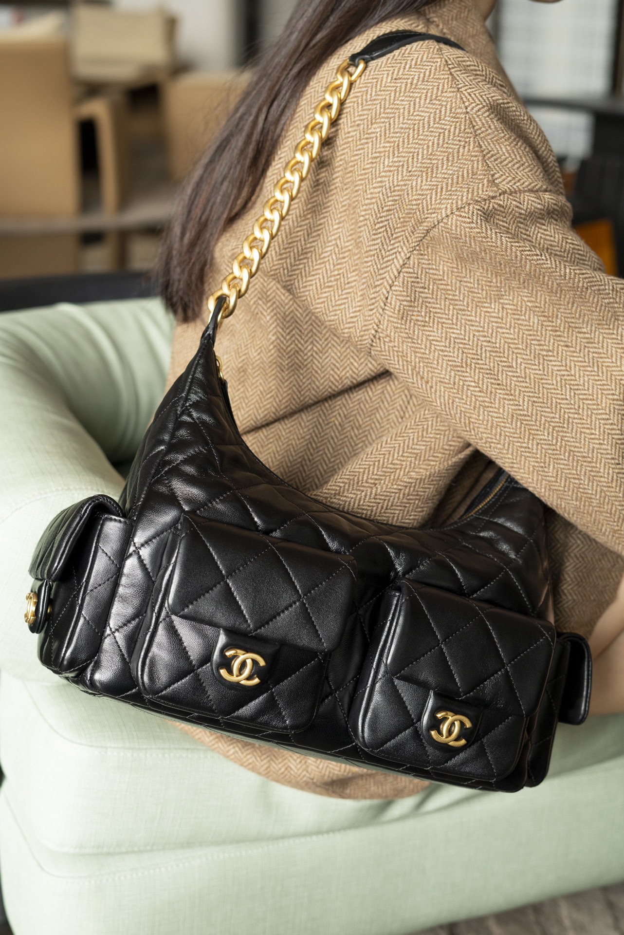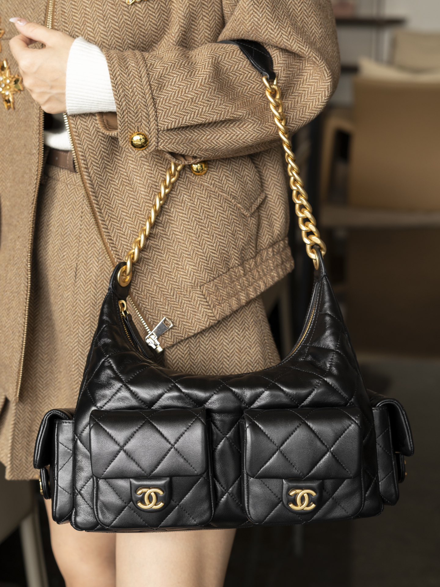 这款包包是AAAAA 1:1 质量 (非常棒). 使用了和原版一模一样的材料. 商标部分也保持了和香奈儿/Chanel一样. 图片拍摄是实物包包拍摄, 您所收到的实物保证和我们图片一模一样.