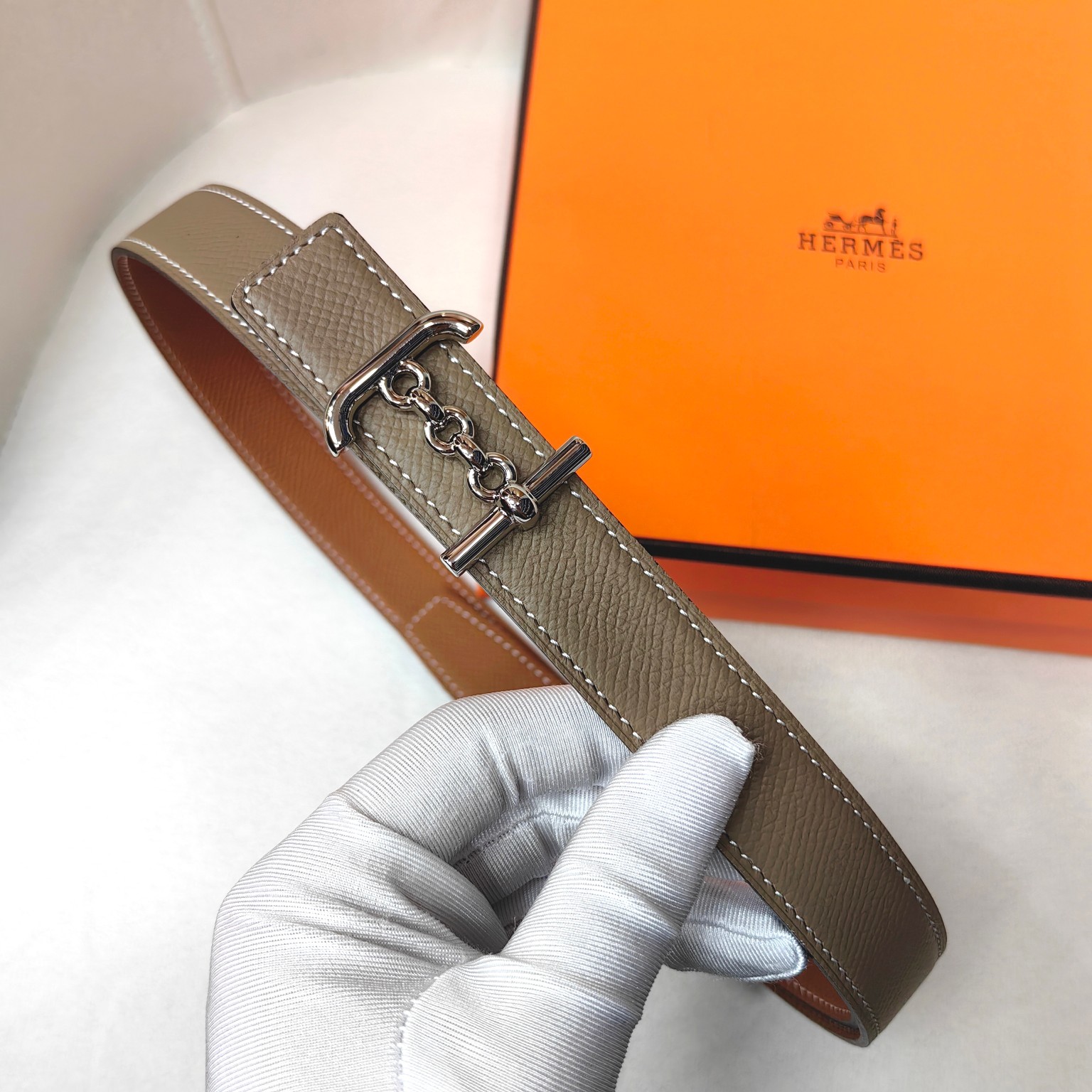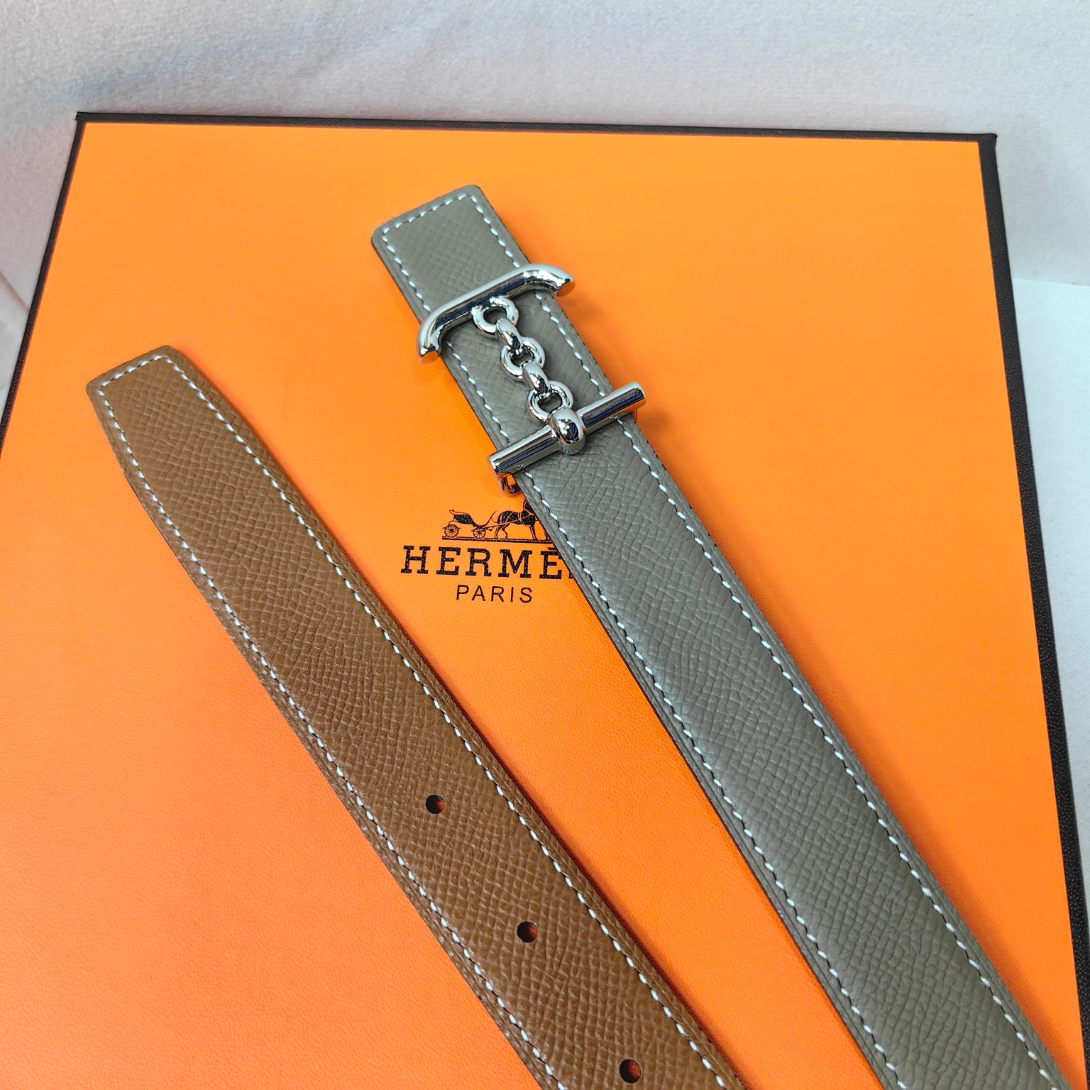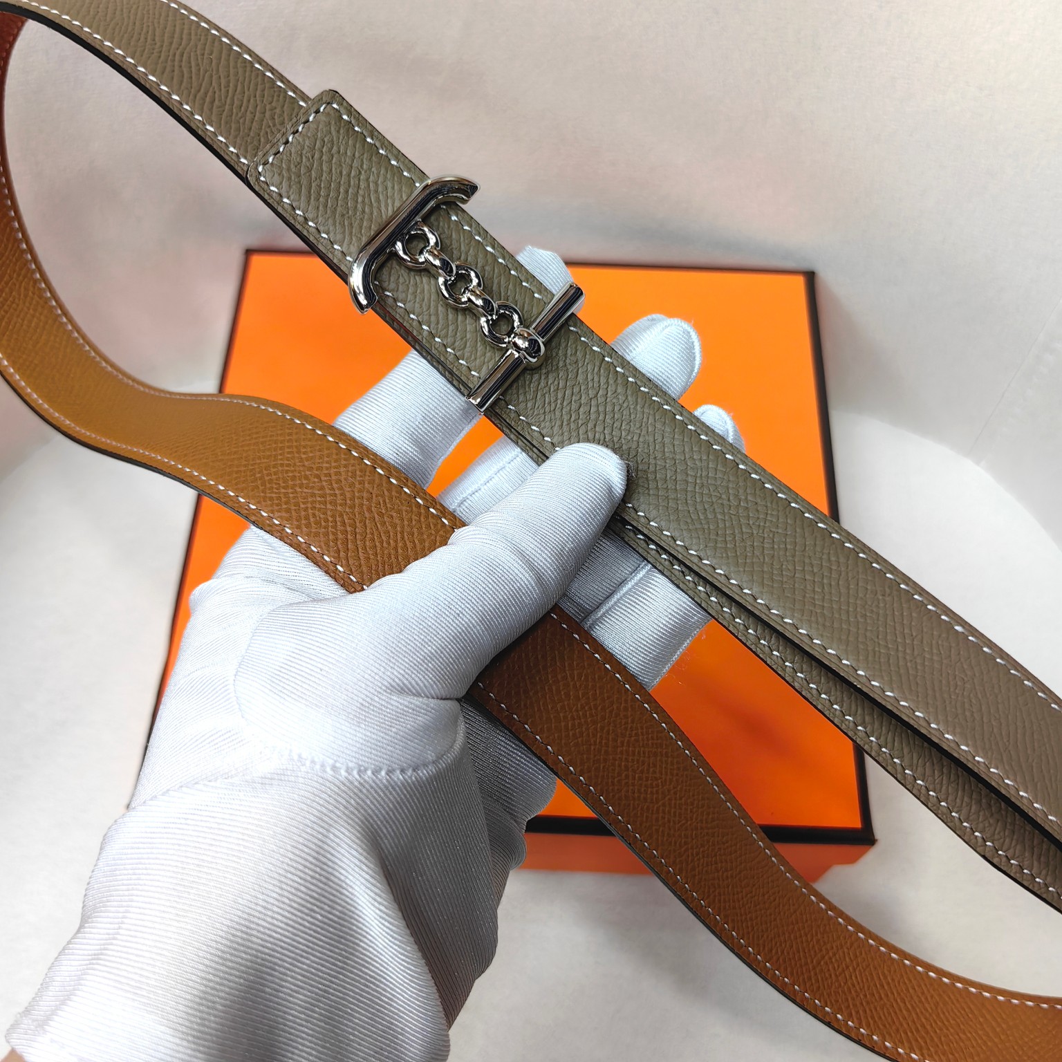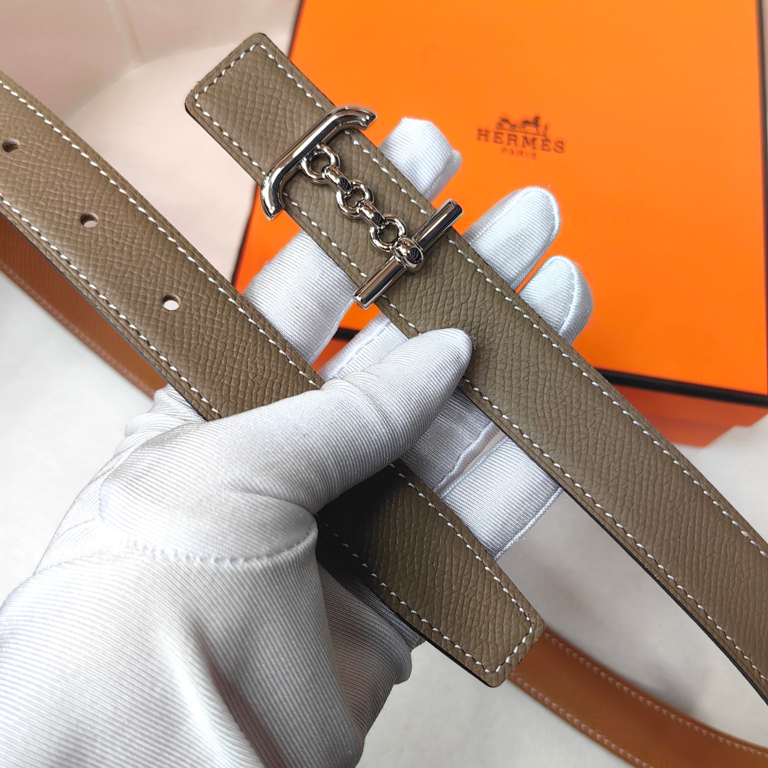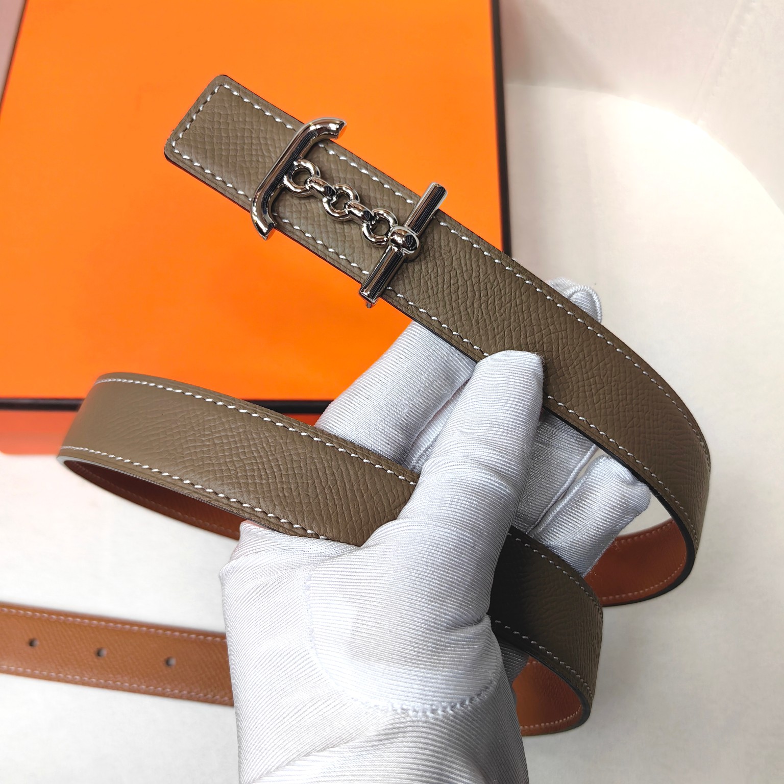 这款皮带是AAAAA 1:1 质量 (非常棒). 使用了和原版一模一样的材料. 商标部分也保持了和爱马仕/Hermes一样. 图片拍摄是实物皮带拍摄, 您所收到的实物保证和我们图片一模一样.