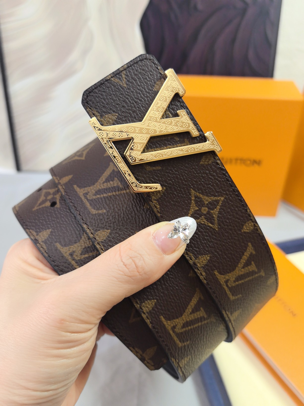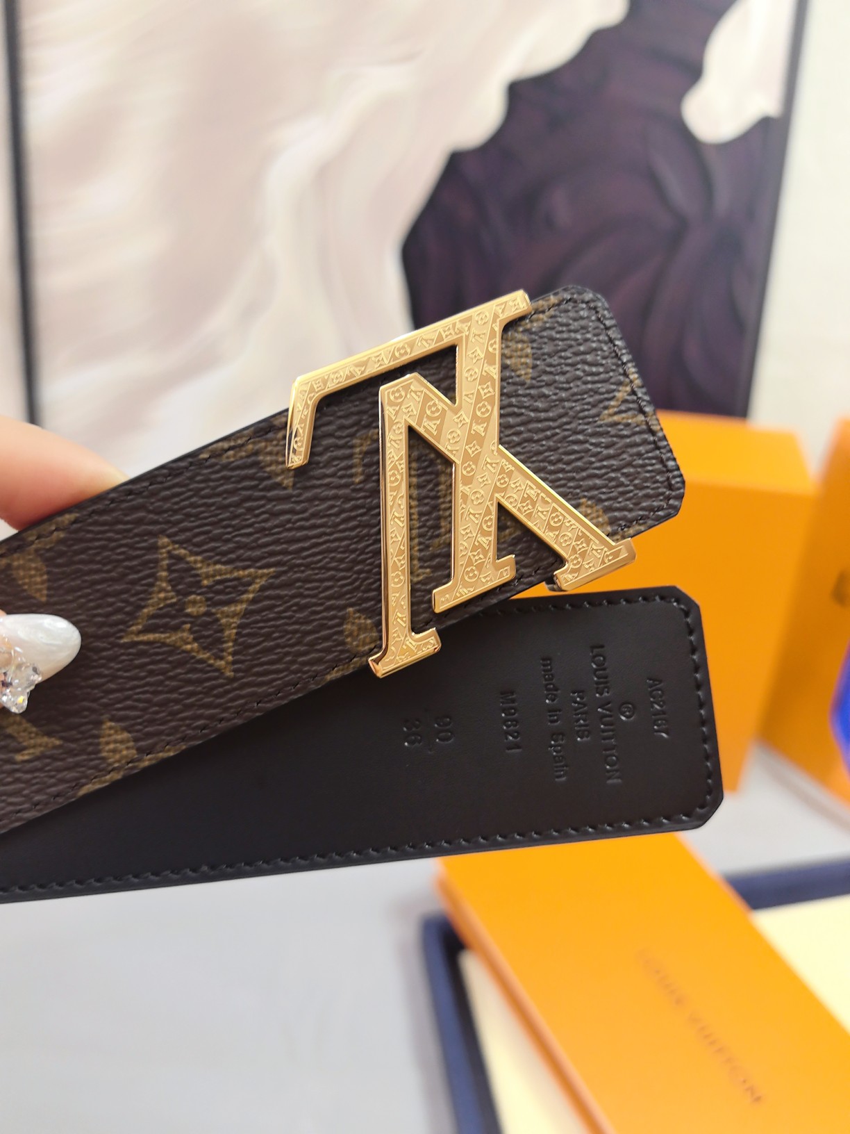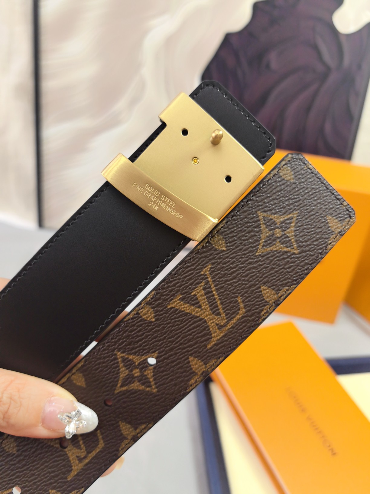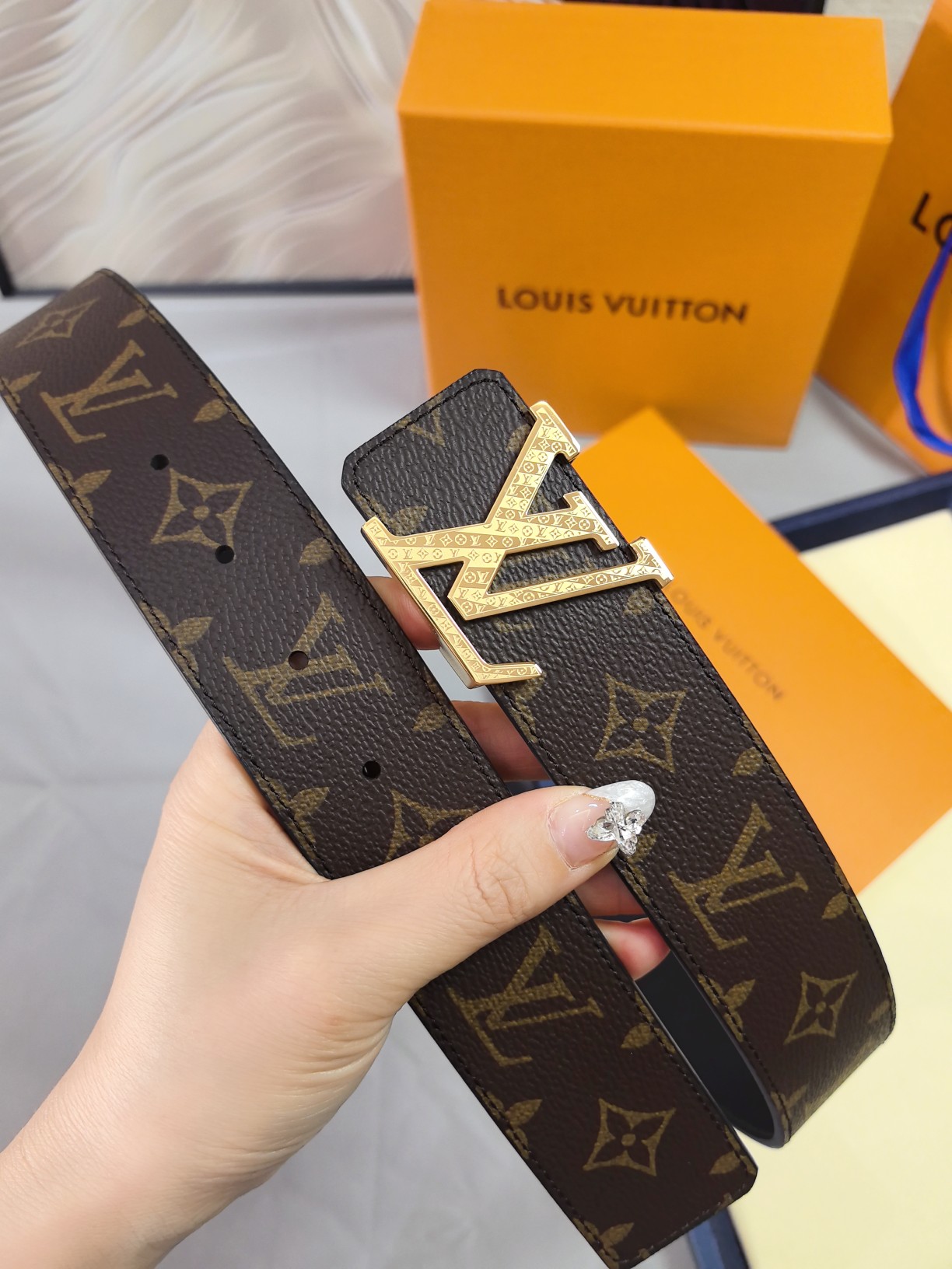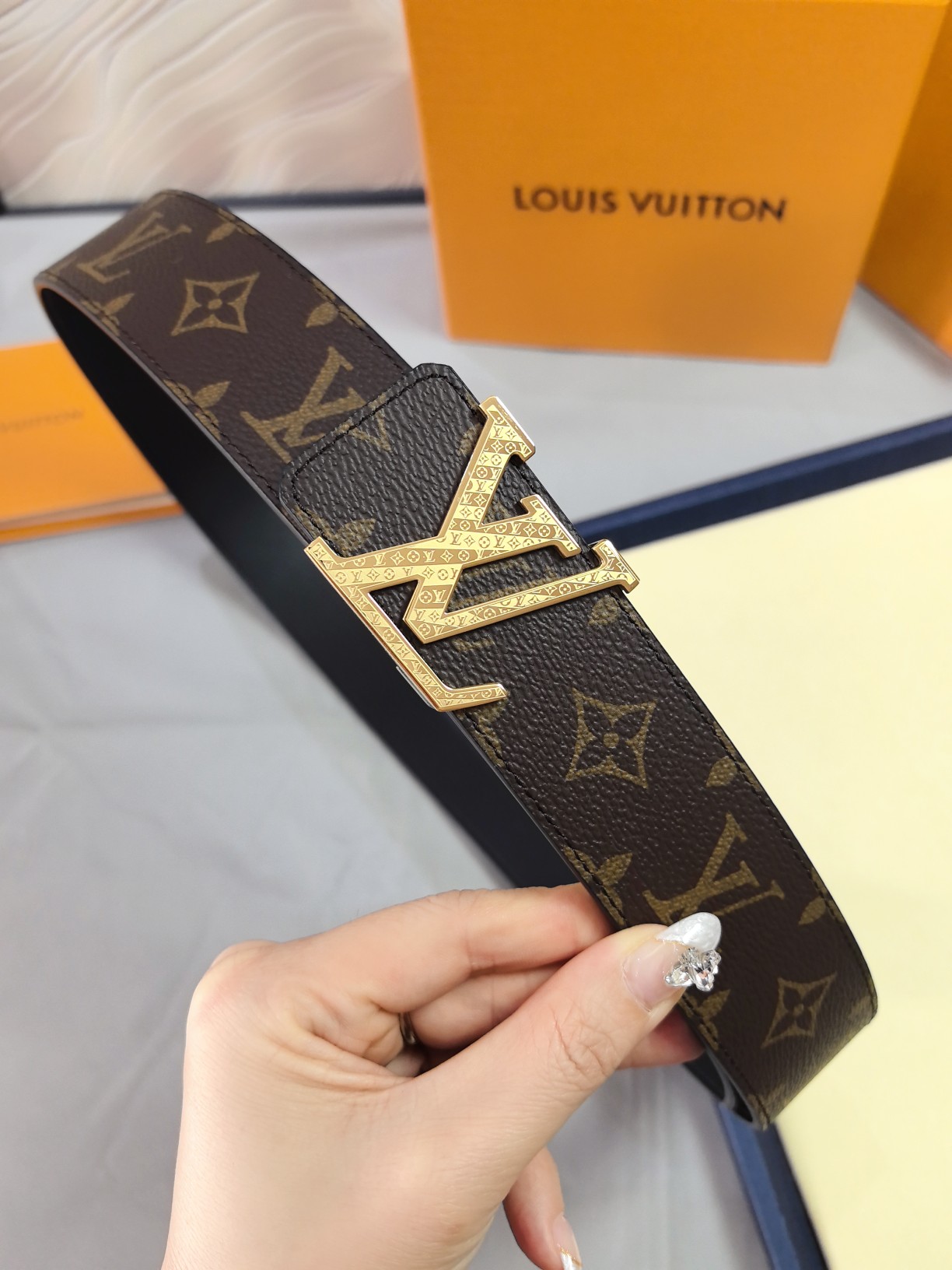 这款皮带是AAAAA 1:1 质量 (非常棒). 使用了和原版一模一样的材料. 商标部分也保持了和路易威登/Louis Vuitton一样. 图片拍摄是实物皮带拍摄, 您所收到的实物保证和我们图片一模一样.