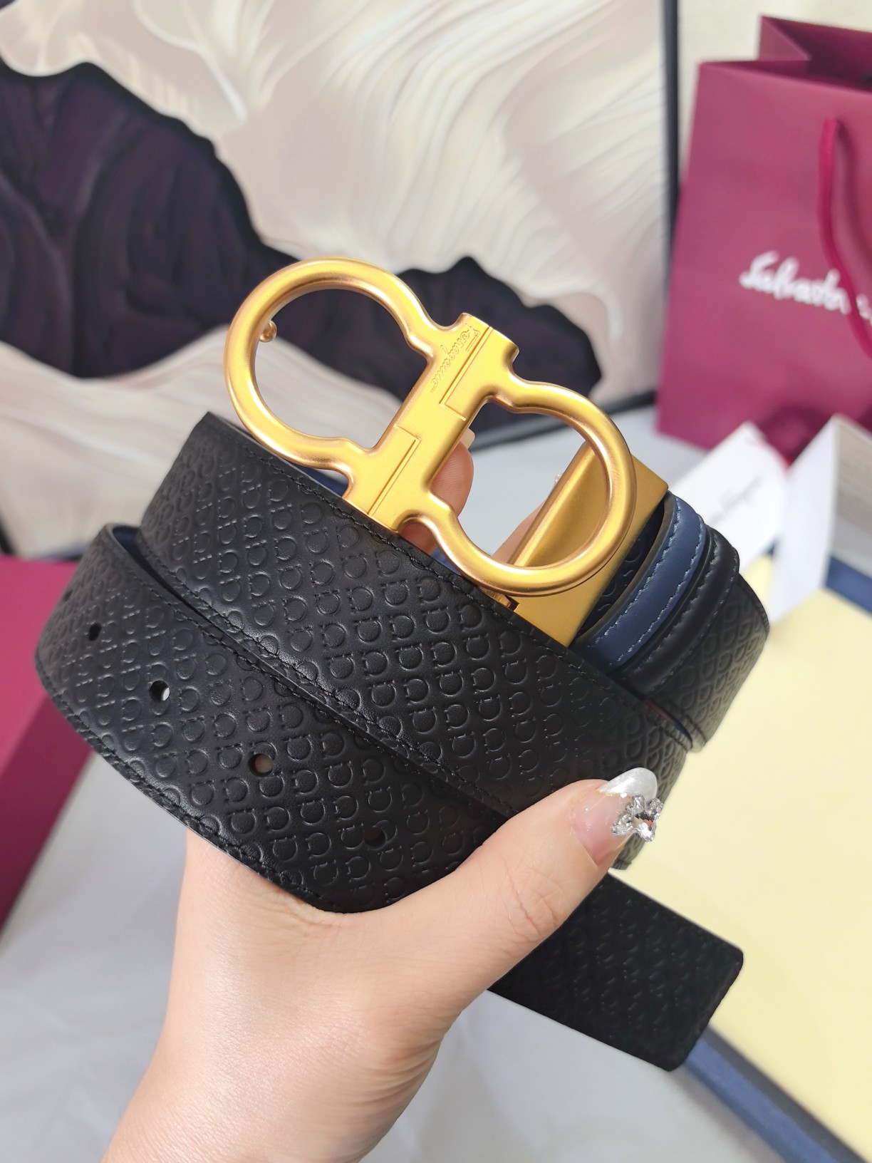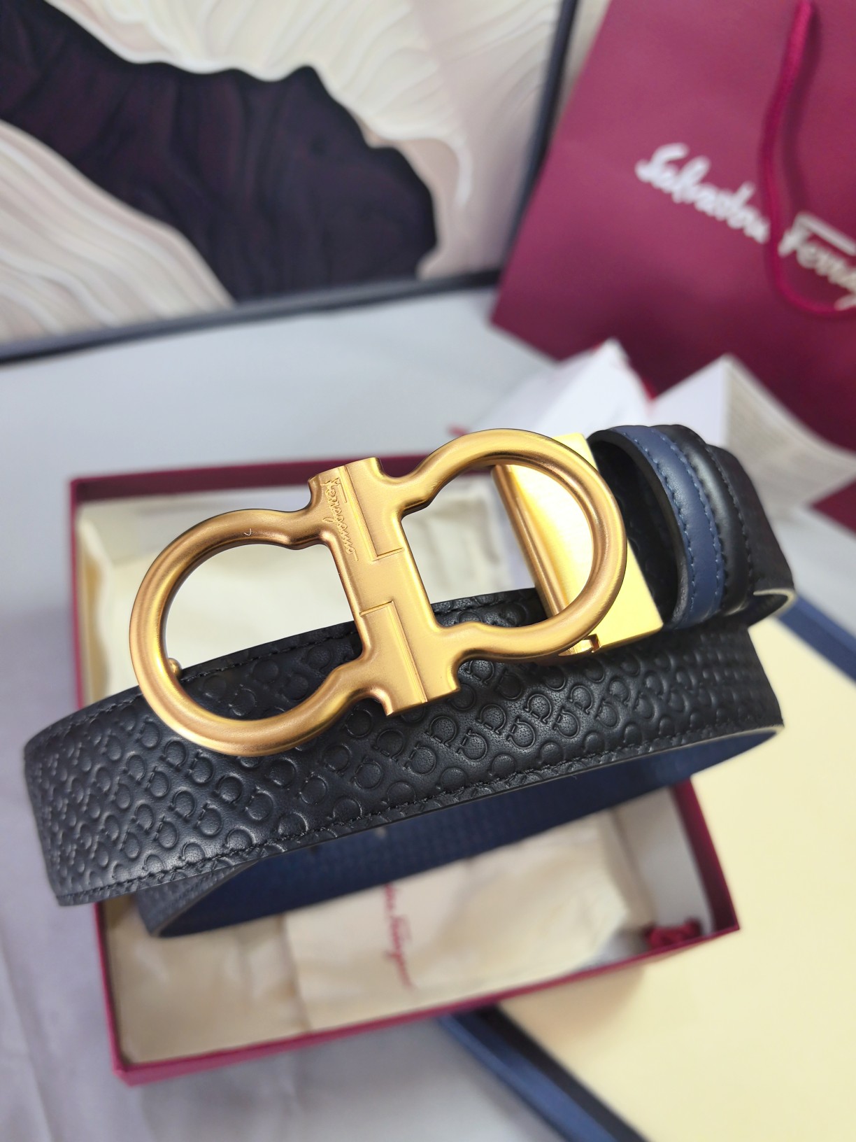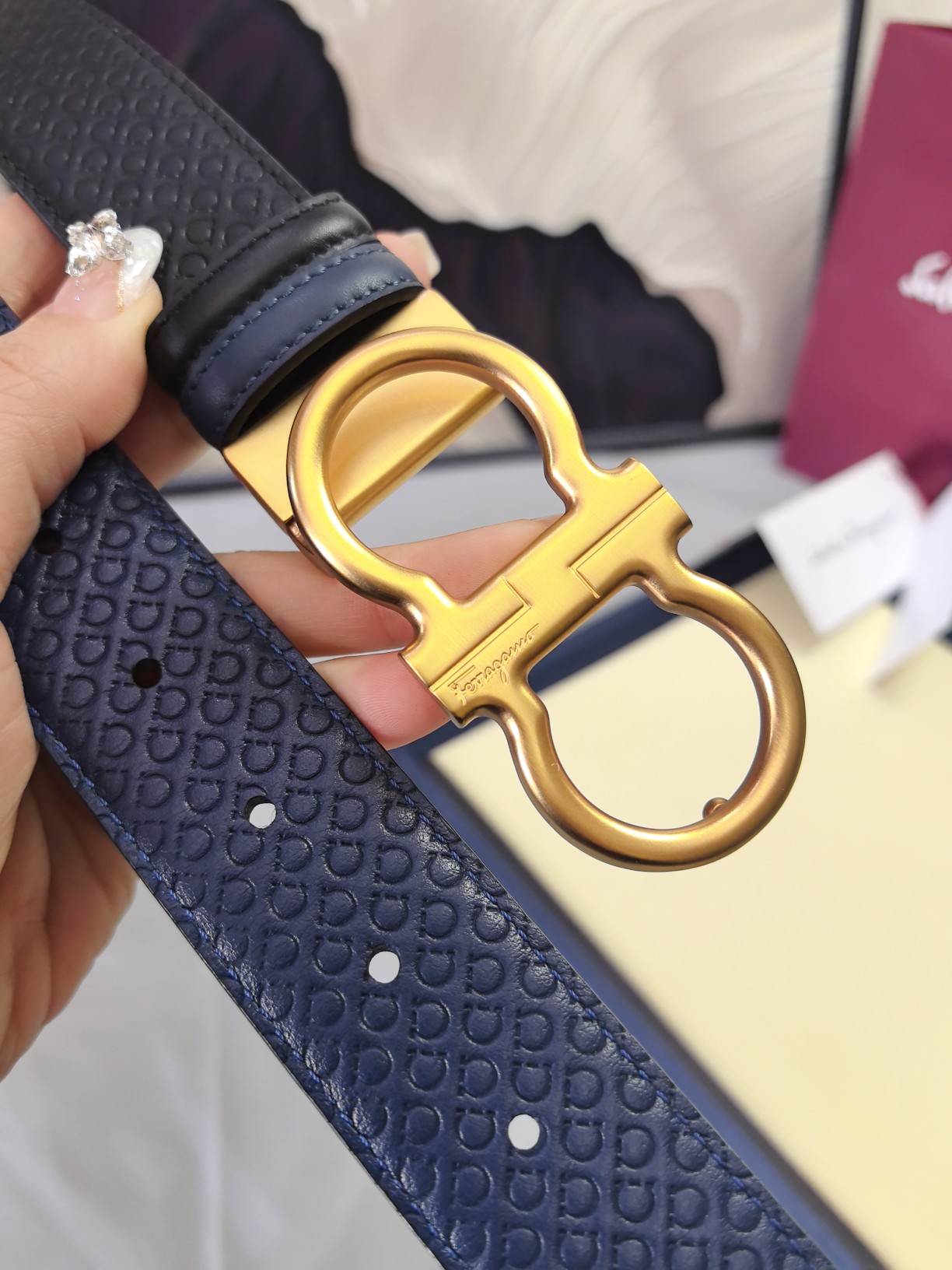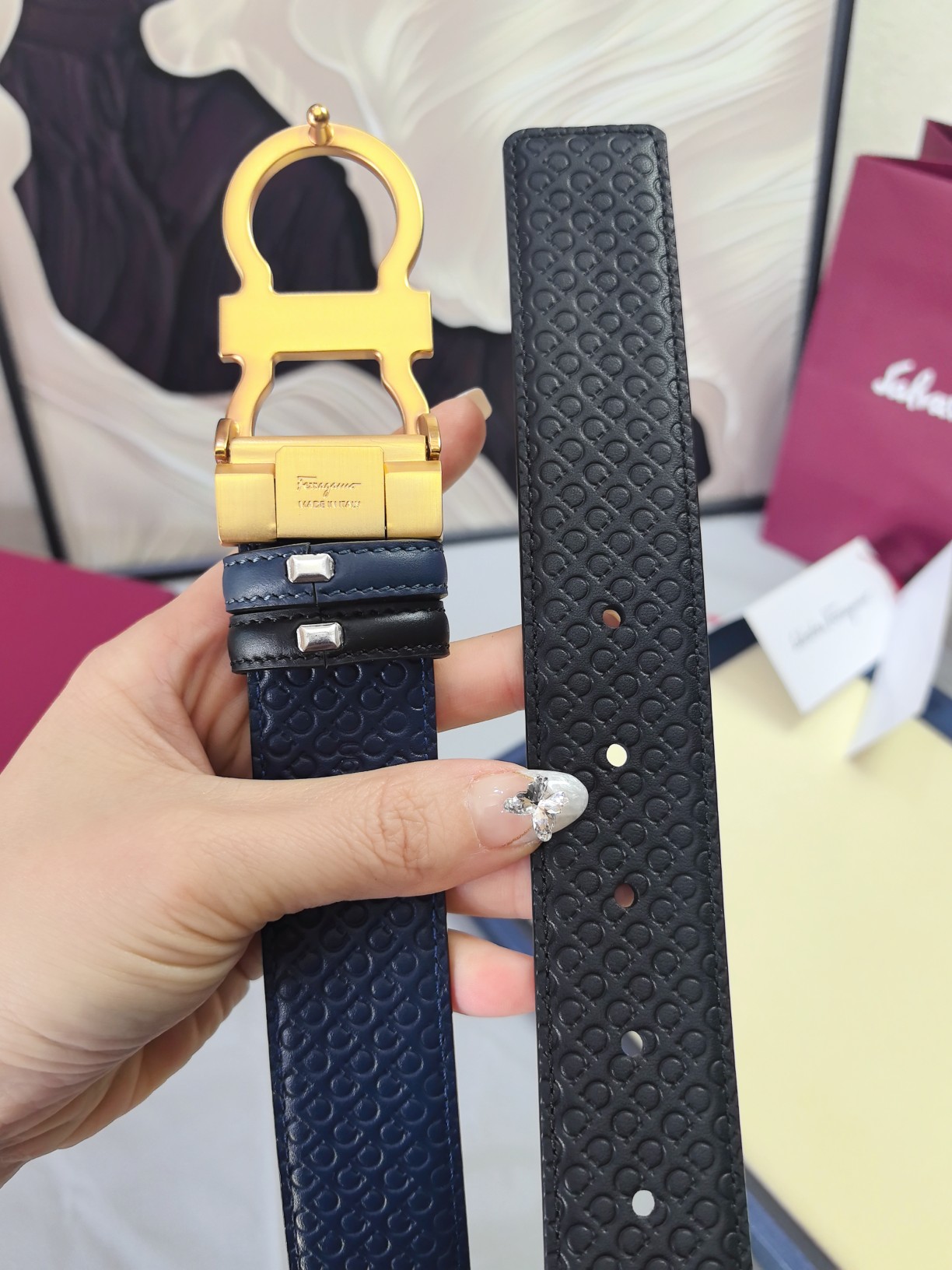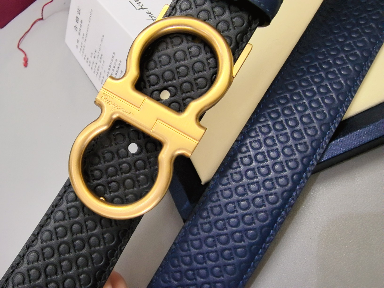 这款皮带是AAAAA 1:1 质量 (非常棒). 使用了和原版一模一样的材料. 商标部分也保持了和菲拉格慕/Salvatore Ferragamo一样. 图片拍摄是实物皮带拍摄, 您所收到的实物保证和我们图片一模一样.