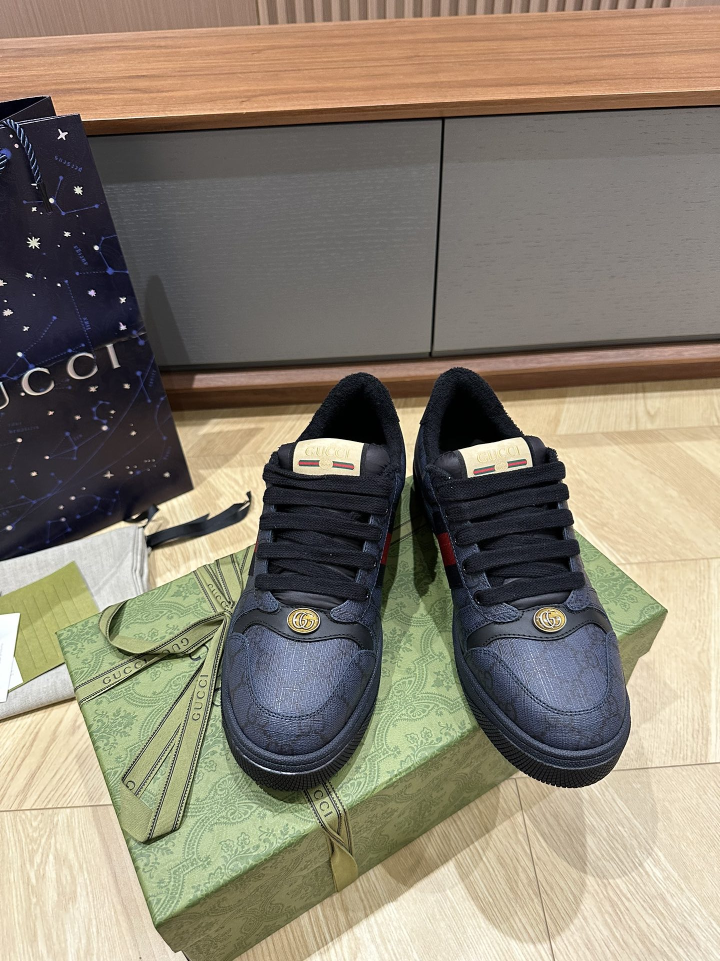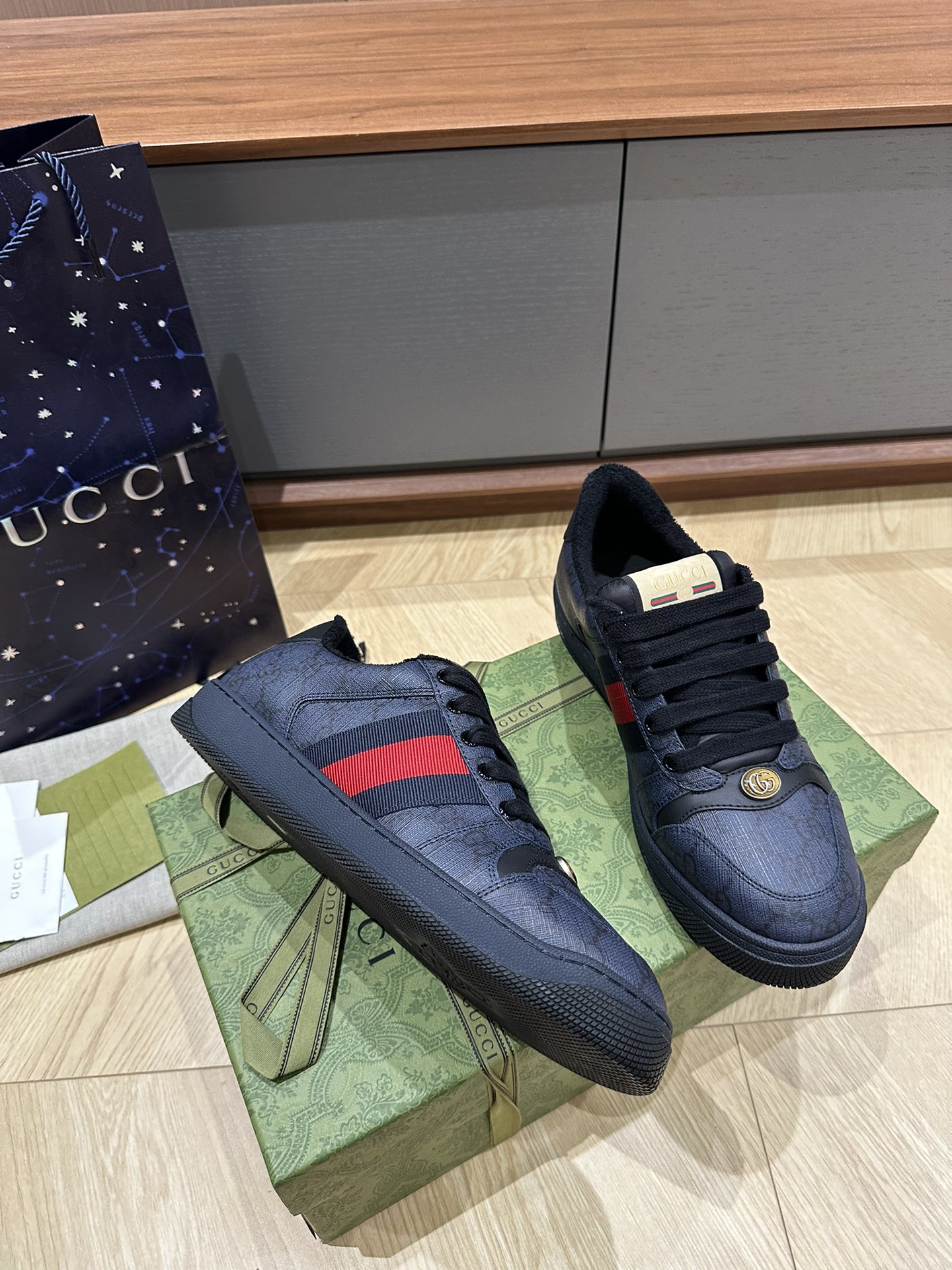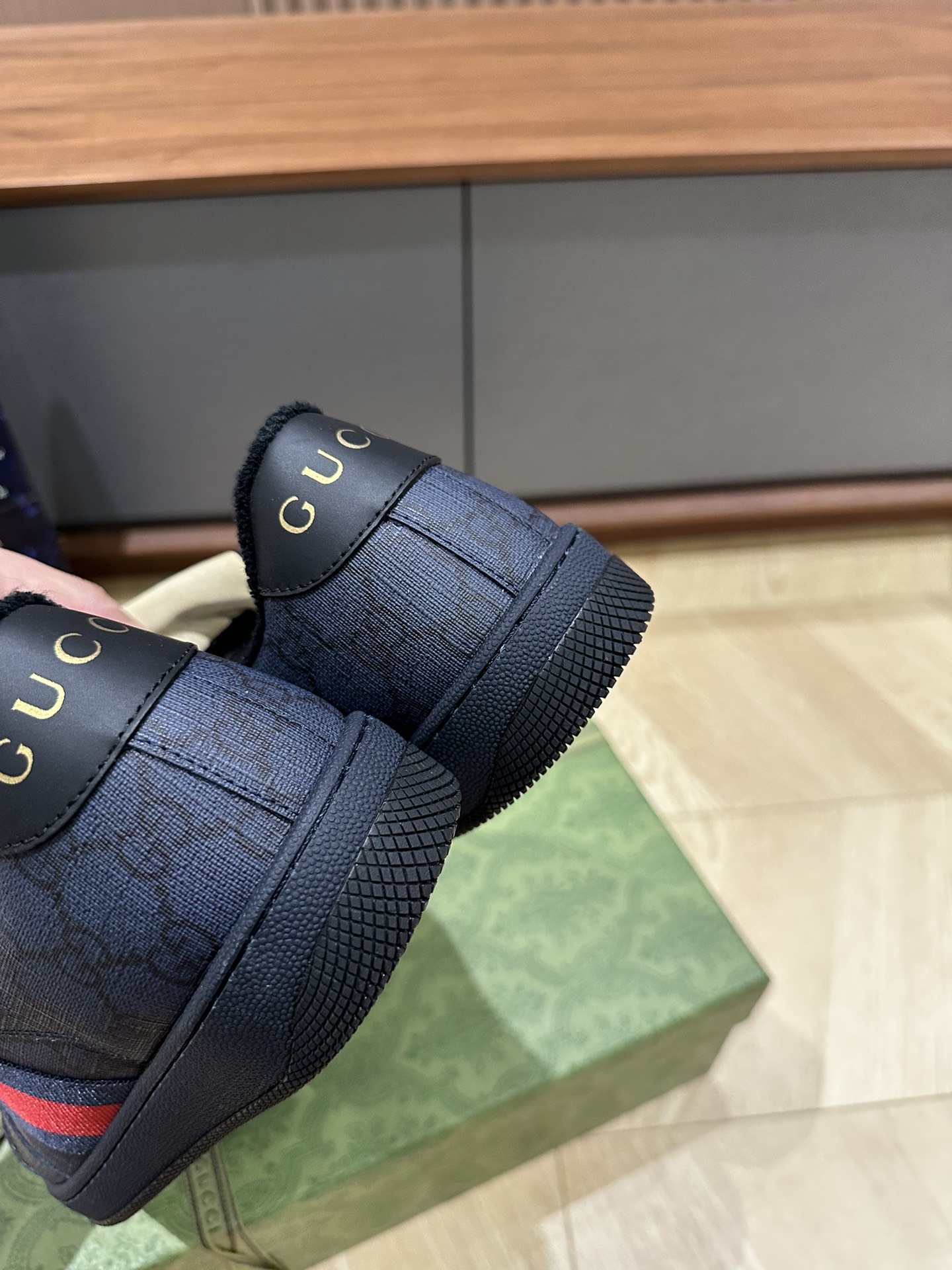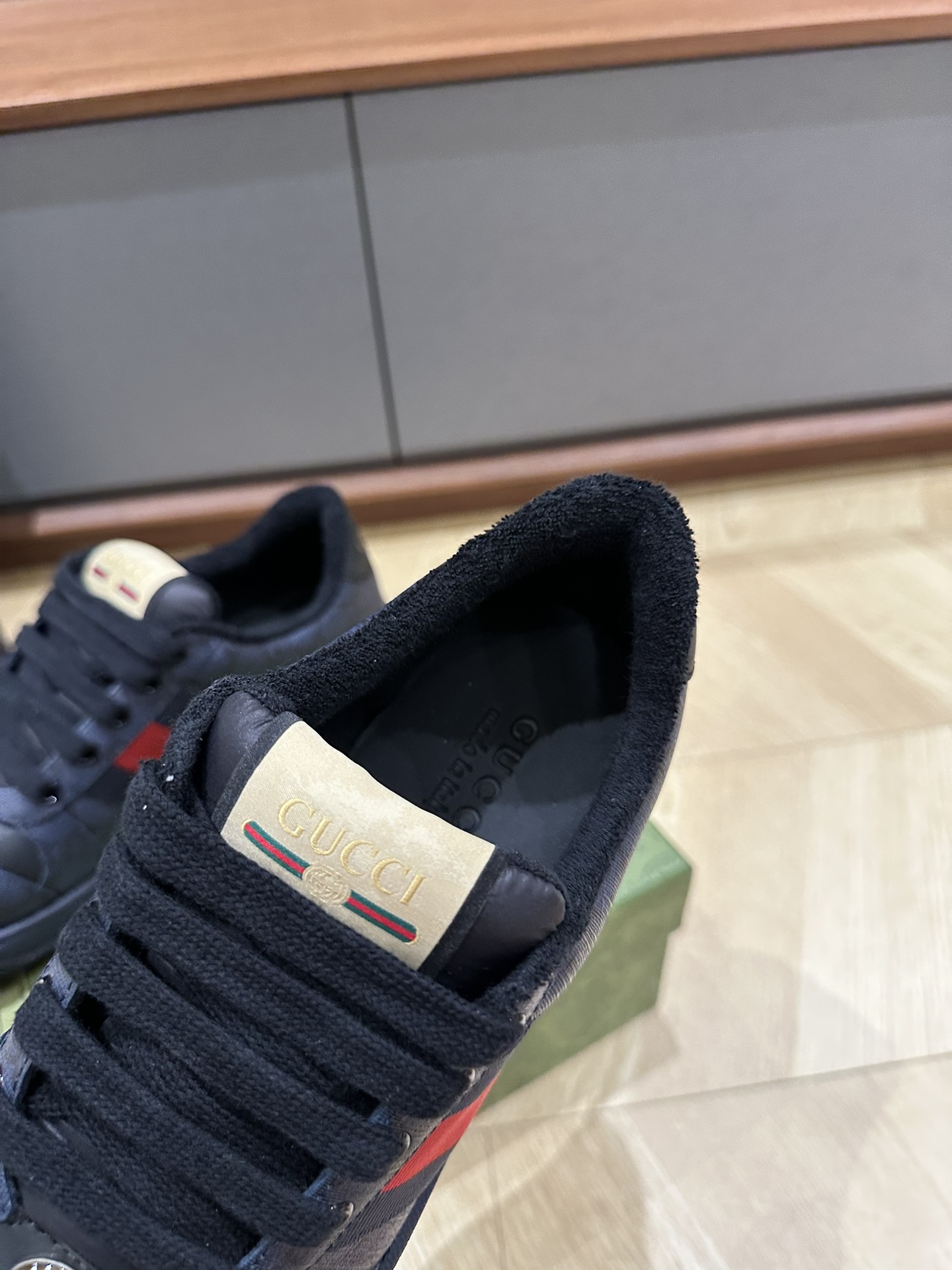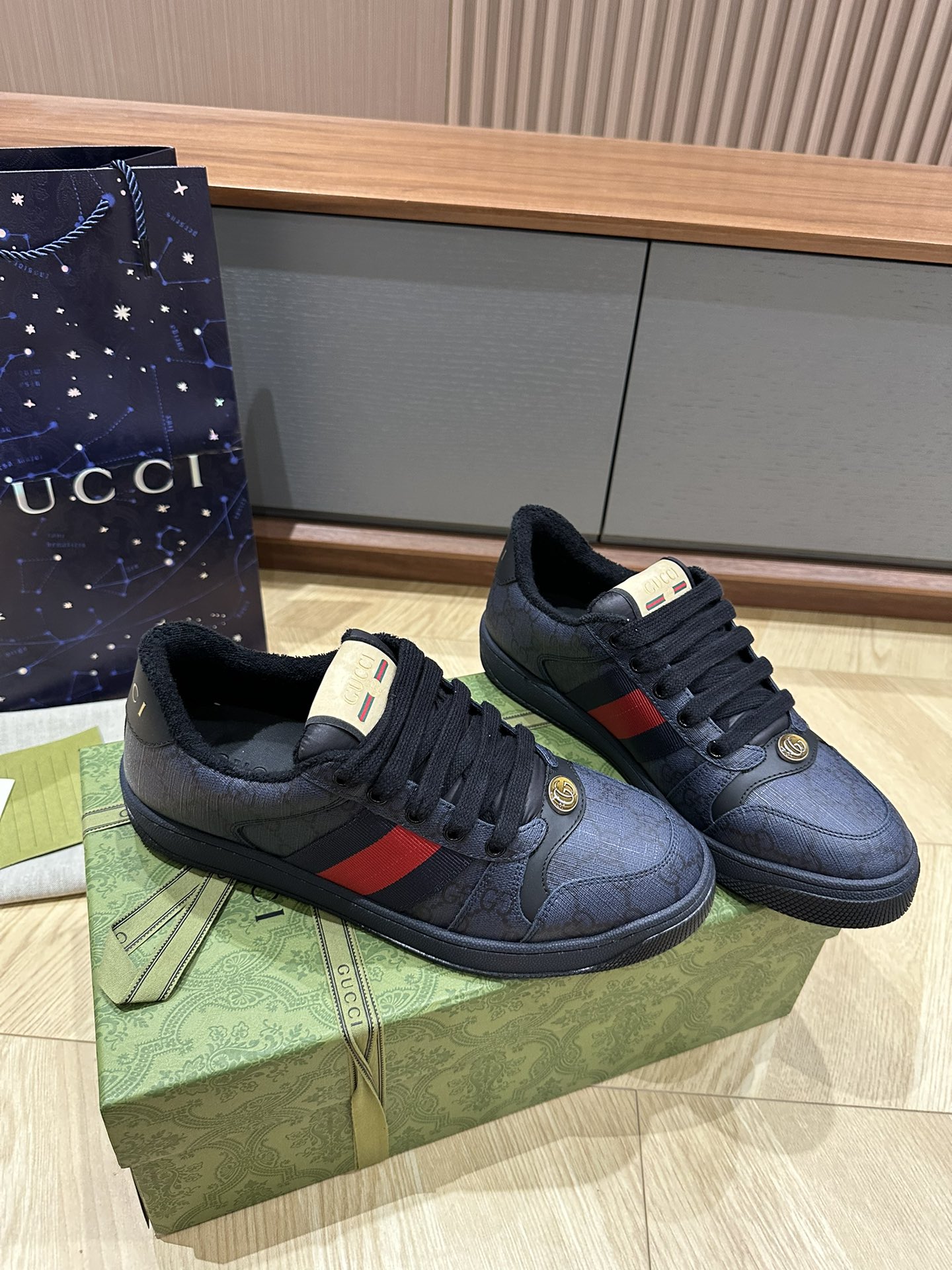 这款鞋子是AAAAA 1:1 质量 (非常棒). 使用了和原版一模一样的材料. 商标部分也保持了和古奇/Gucci一样. 图片拍摄是实物鞋子拍摄, 您所收到的实物保证和我们图片一模一样.