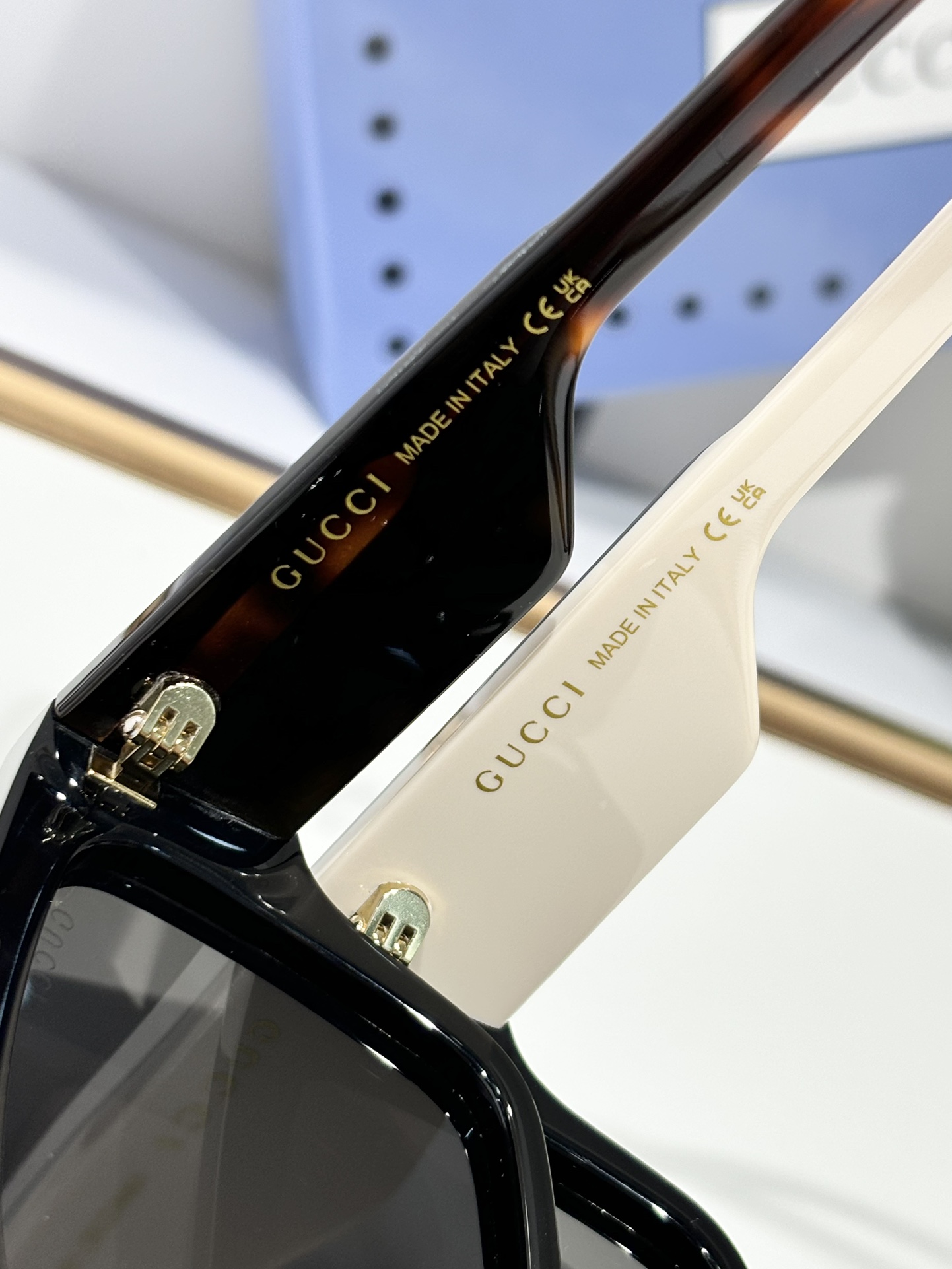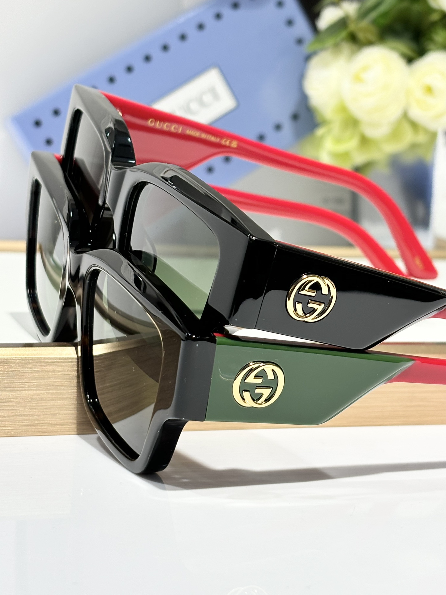 这款太阳眼镜是AAAAA 1:1 质量 (非常棒). 使用了和原版一模一样的材料. 商标部分也保持了和古奇/Gucci一样. 图片拍摄是实物太阳眼镜拍摄, 您所收到的实物保证和我们图片一模一样.
