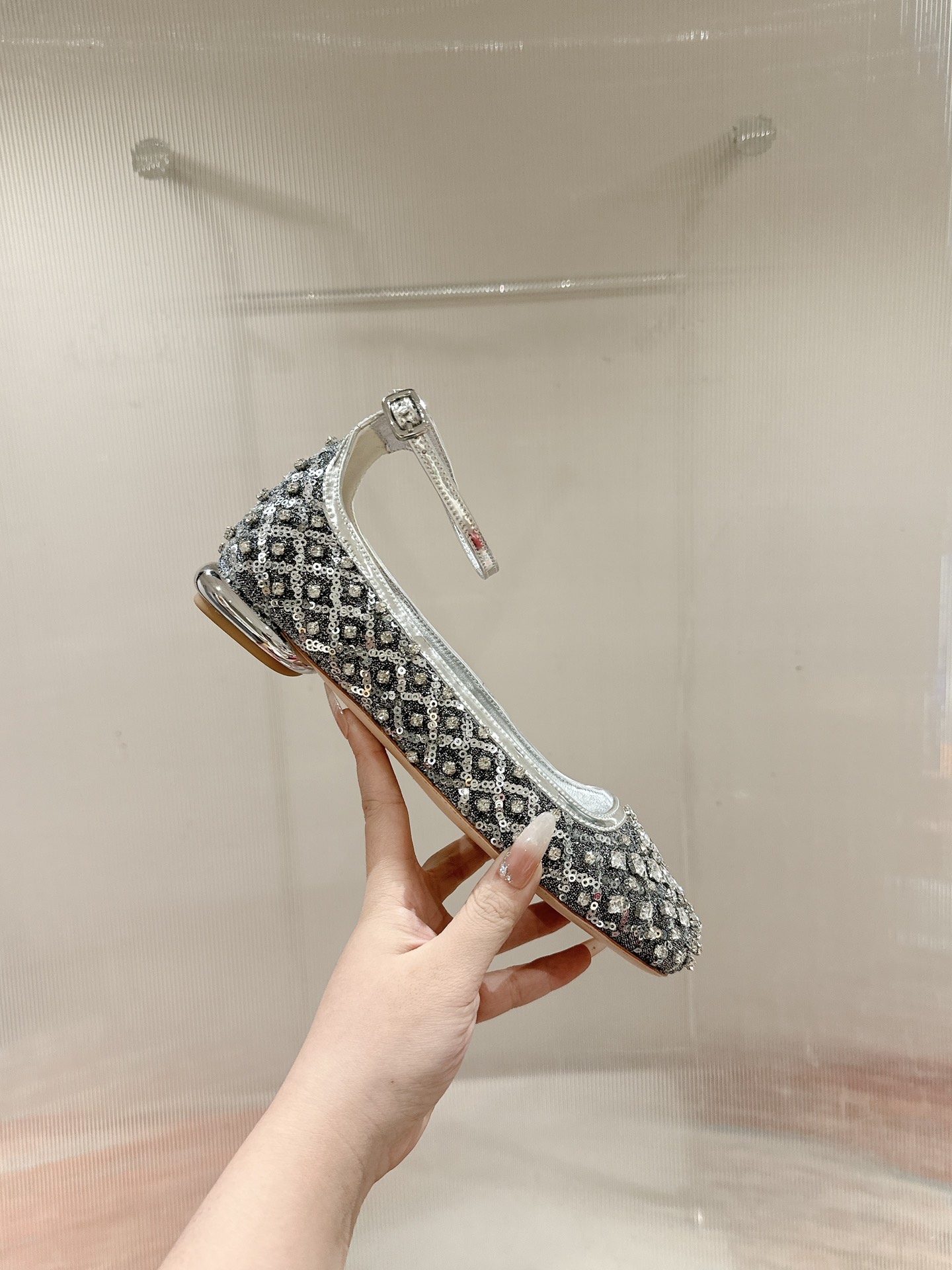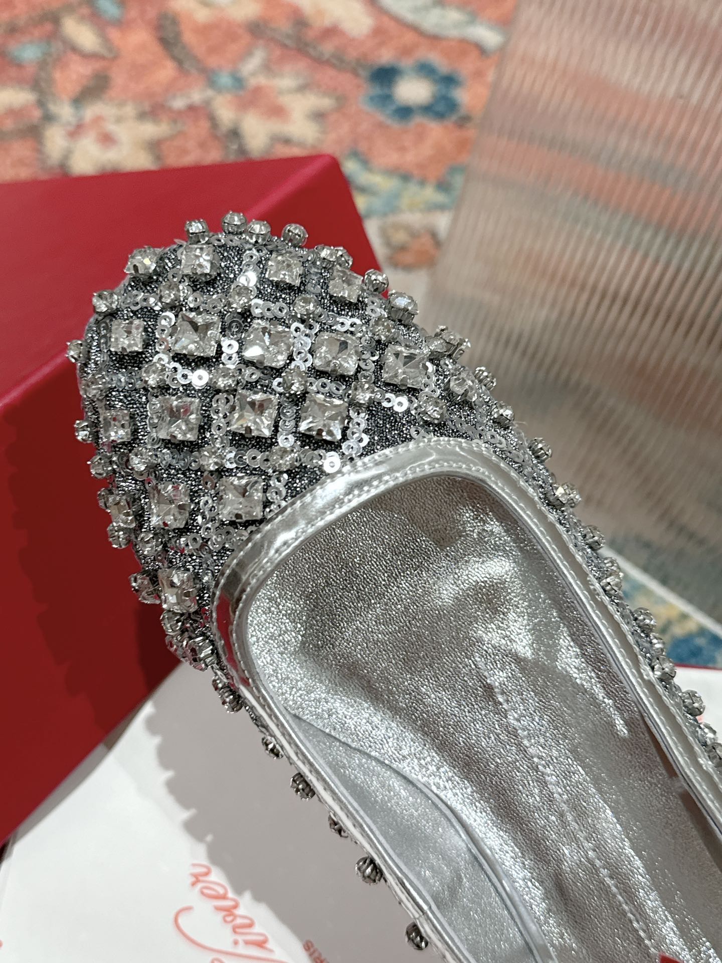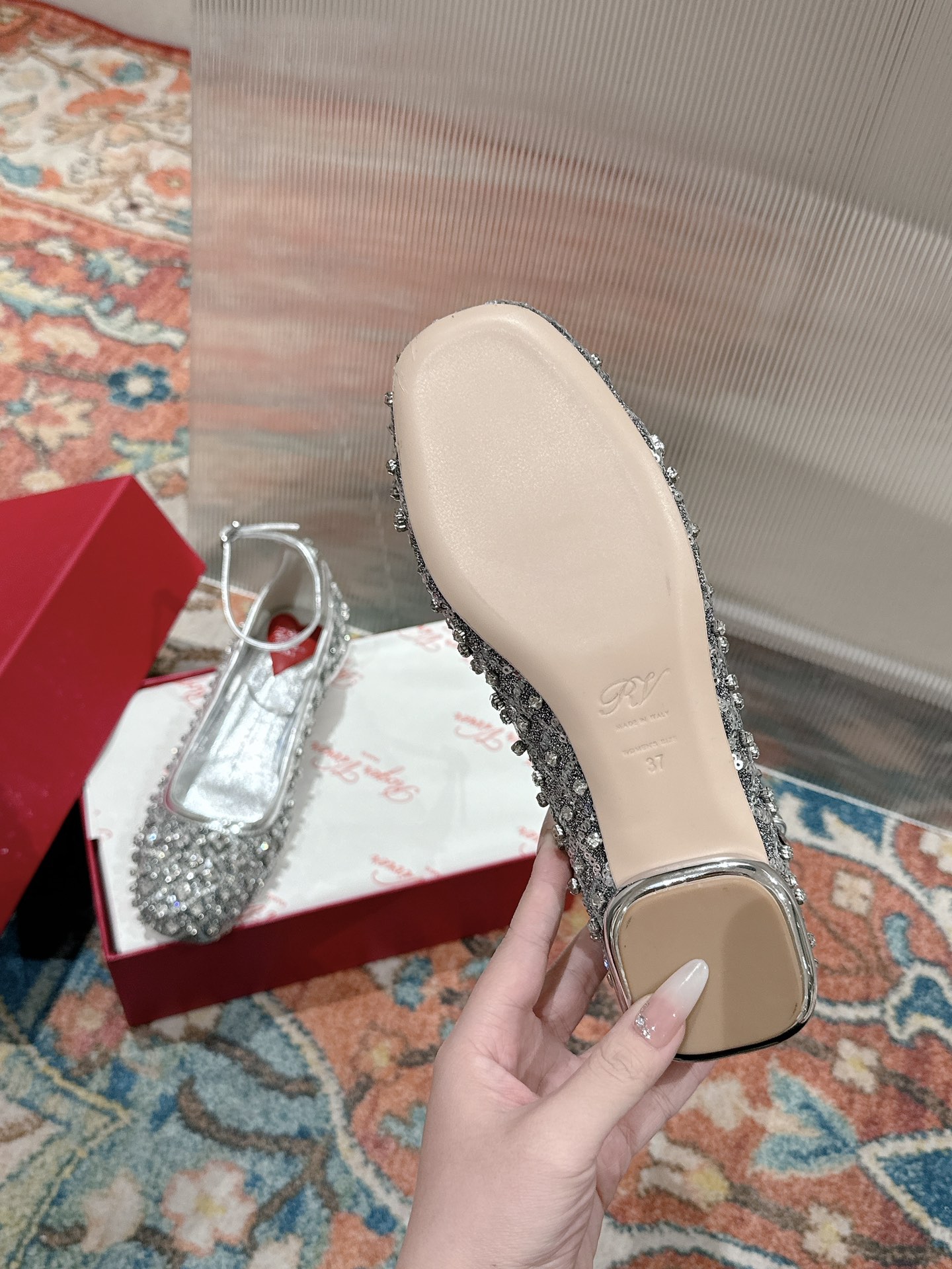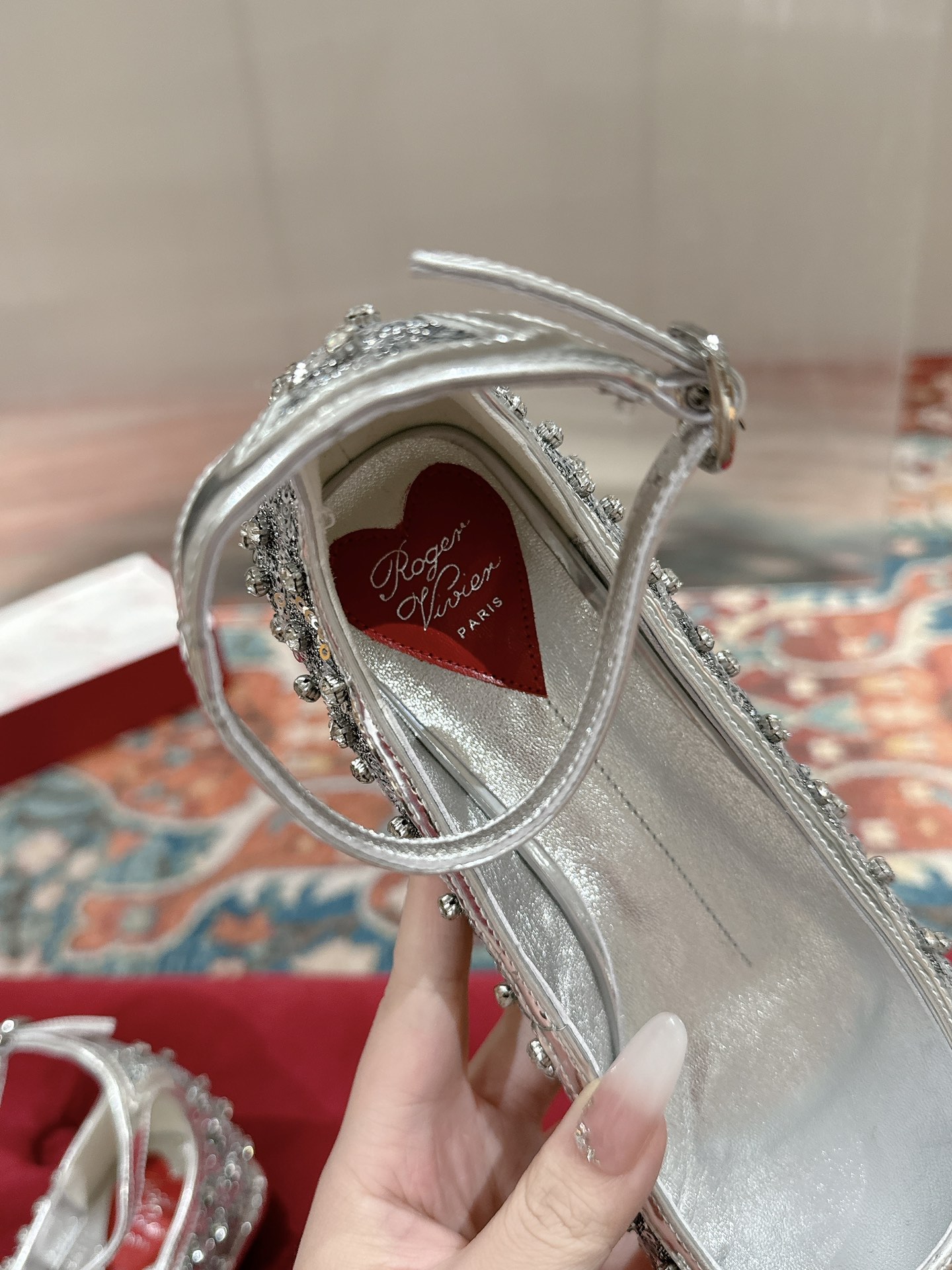 这款鞋子是AAAAA 1:1 质量 (非常棒). 使用了和原版一模一样的材料. 商标部分也保持了和罗杰维维耶/Roger Vivier一样. 图片拍摄是实物鞋子拍摄, 您所收到的实物保证和我们图片一模一样.